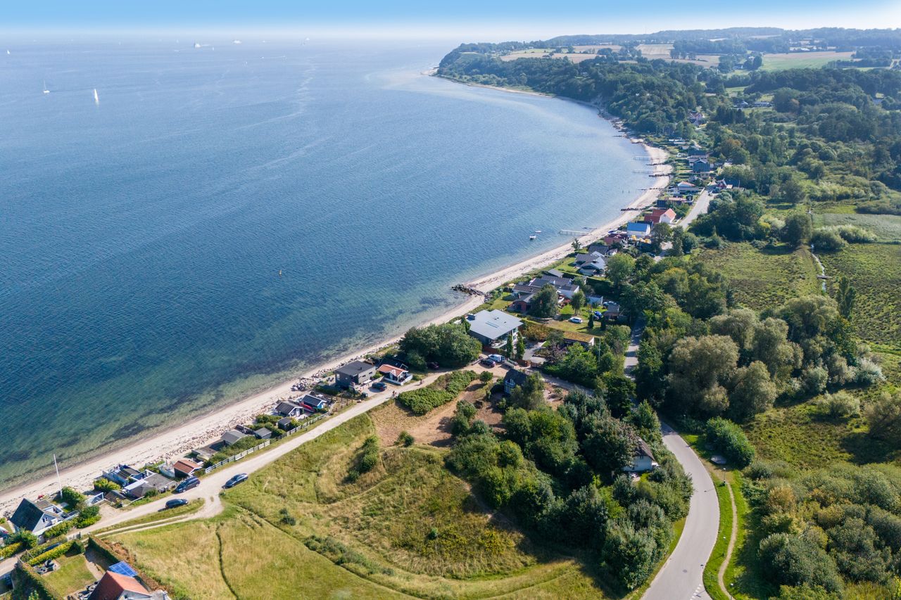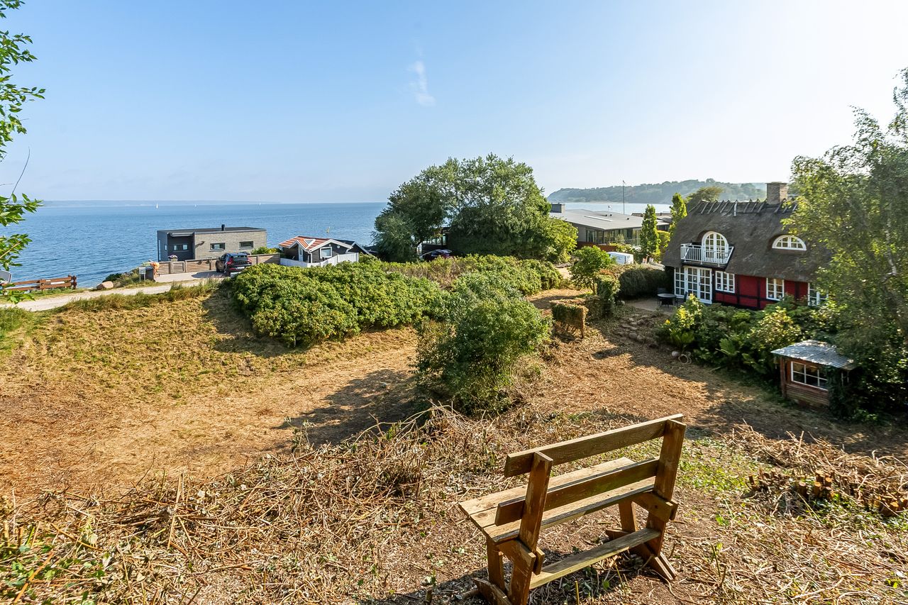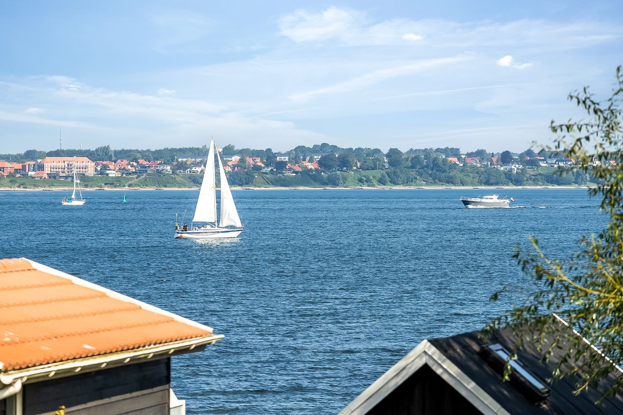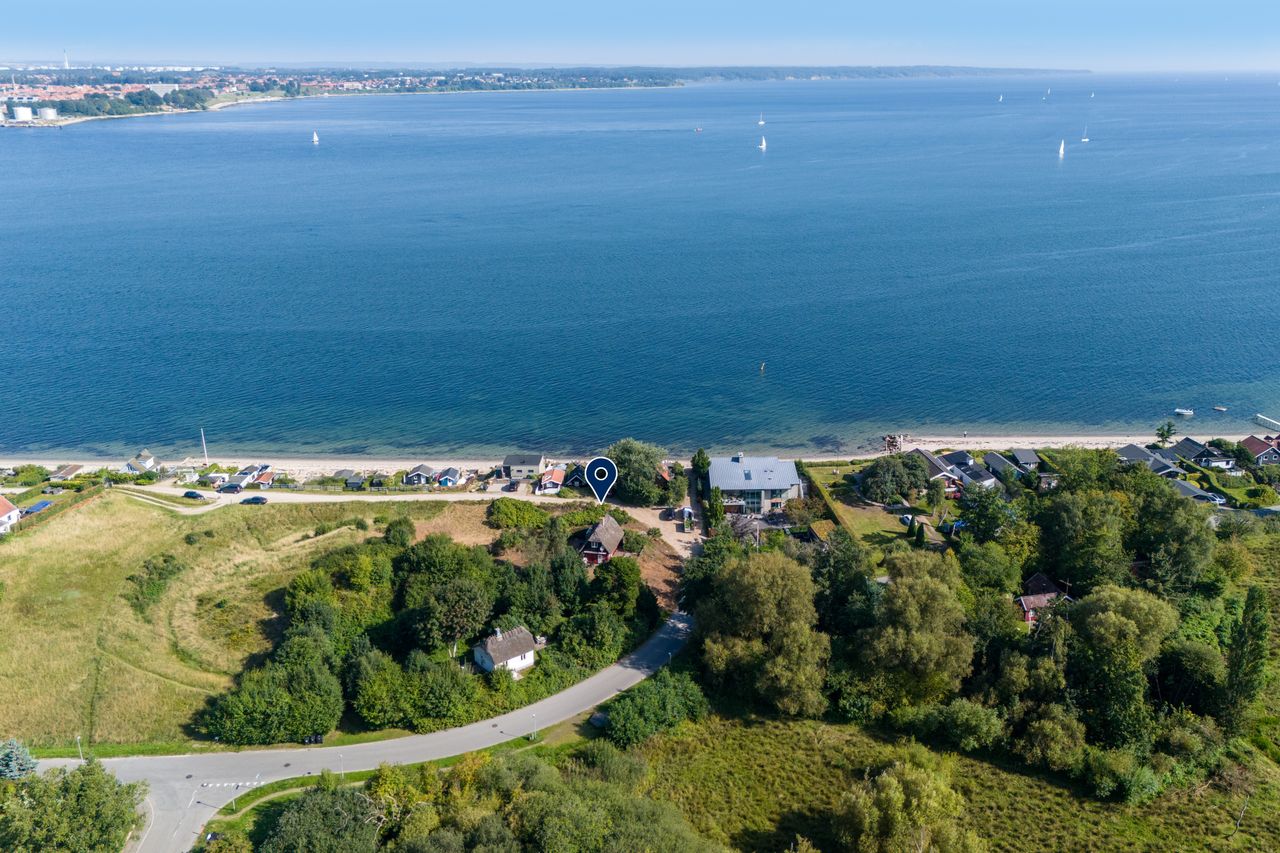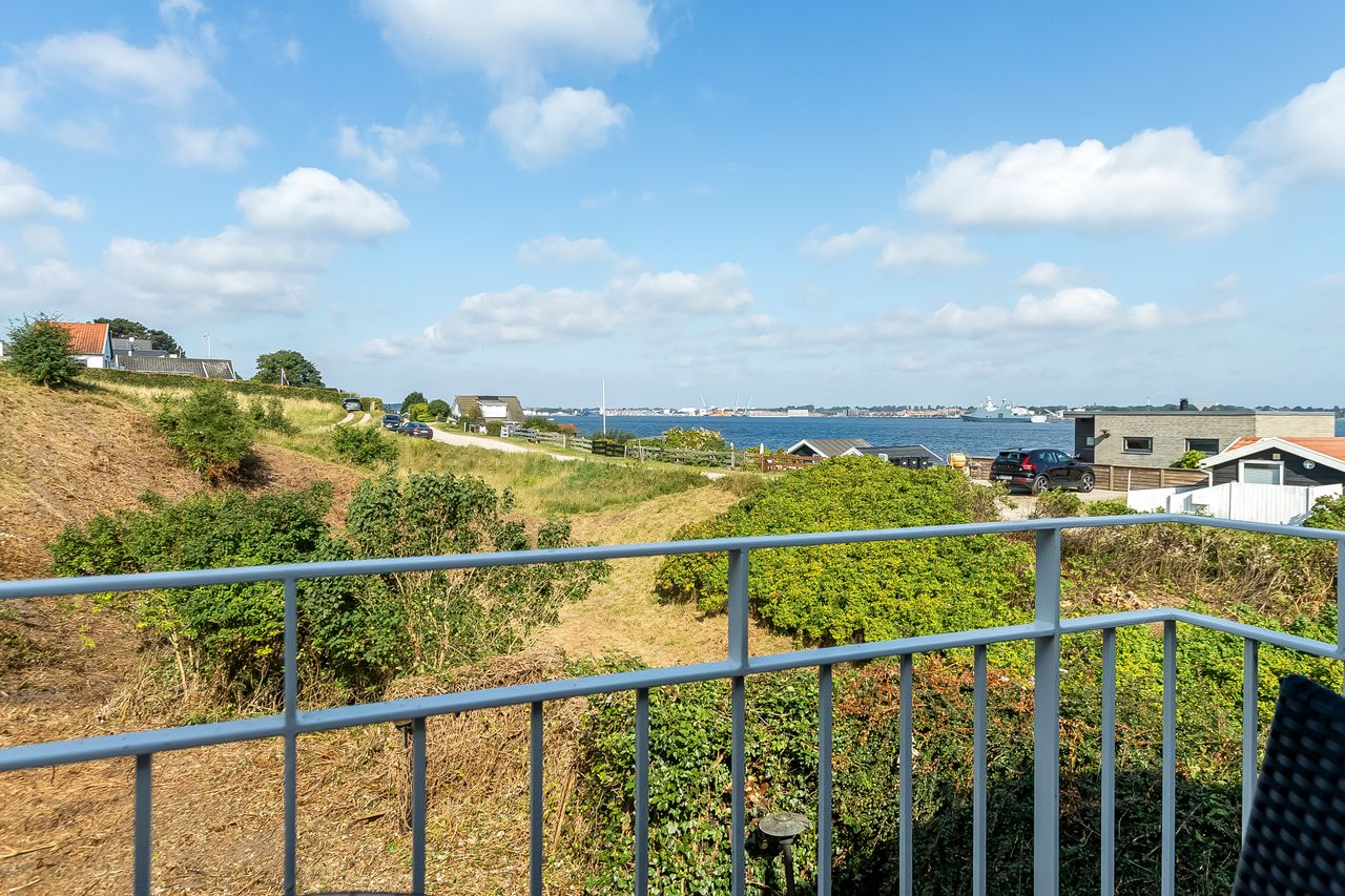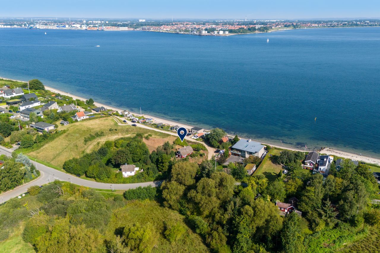 Beliggenheden taler for sig selv: Sommerhuset ligger i den nordlige del af Strib med en fantastisk udsigt over vandet.
