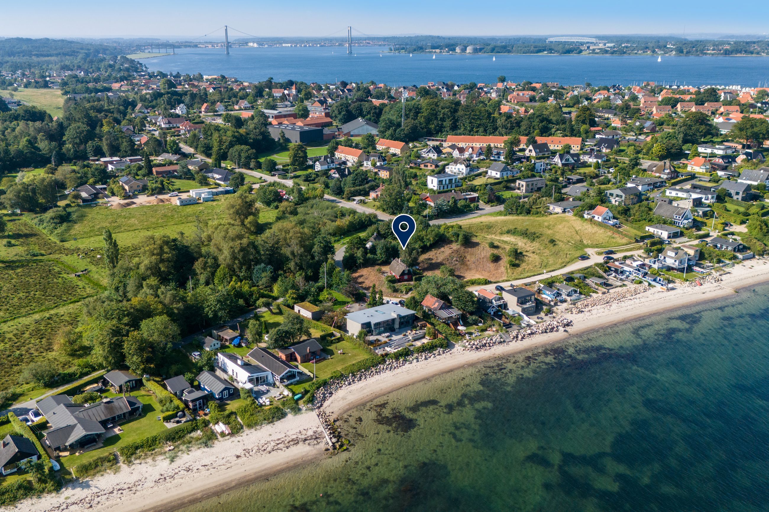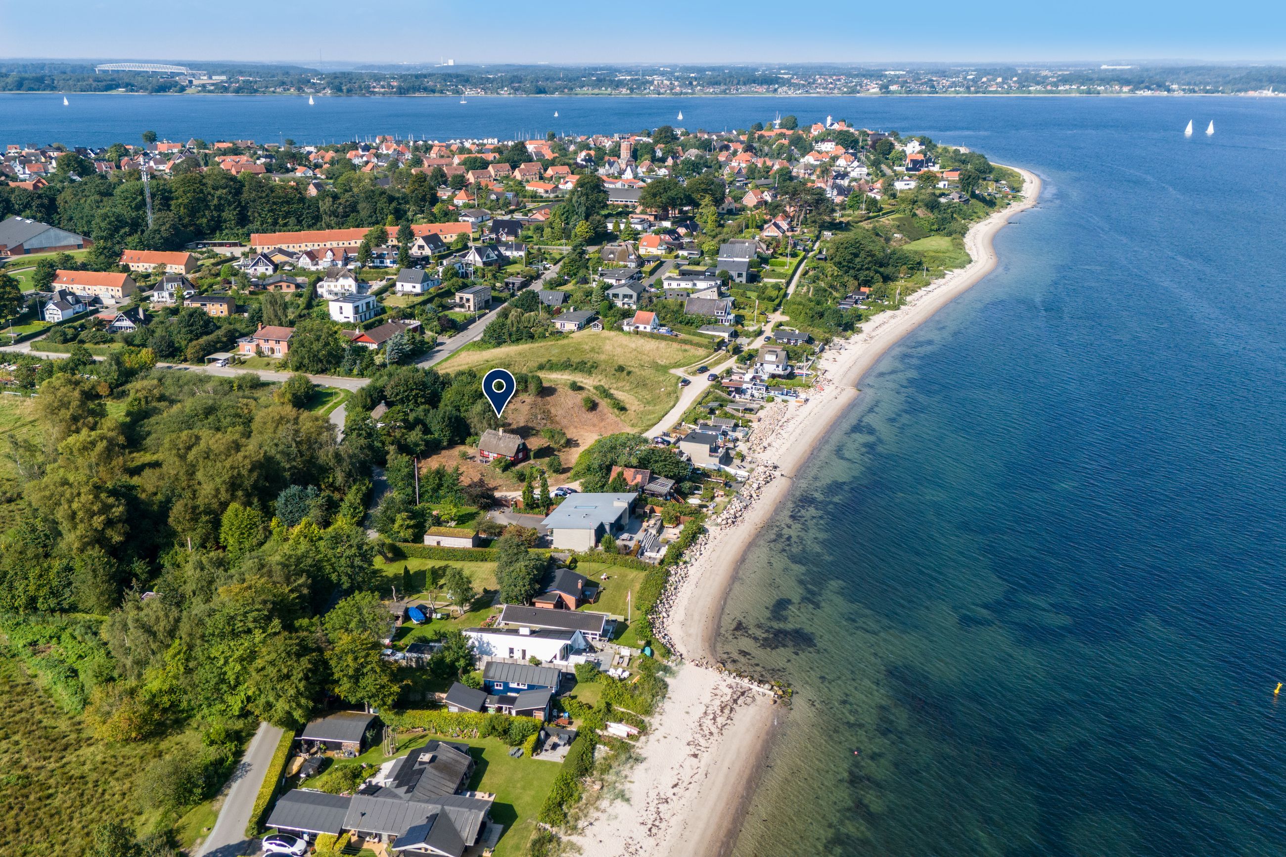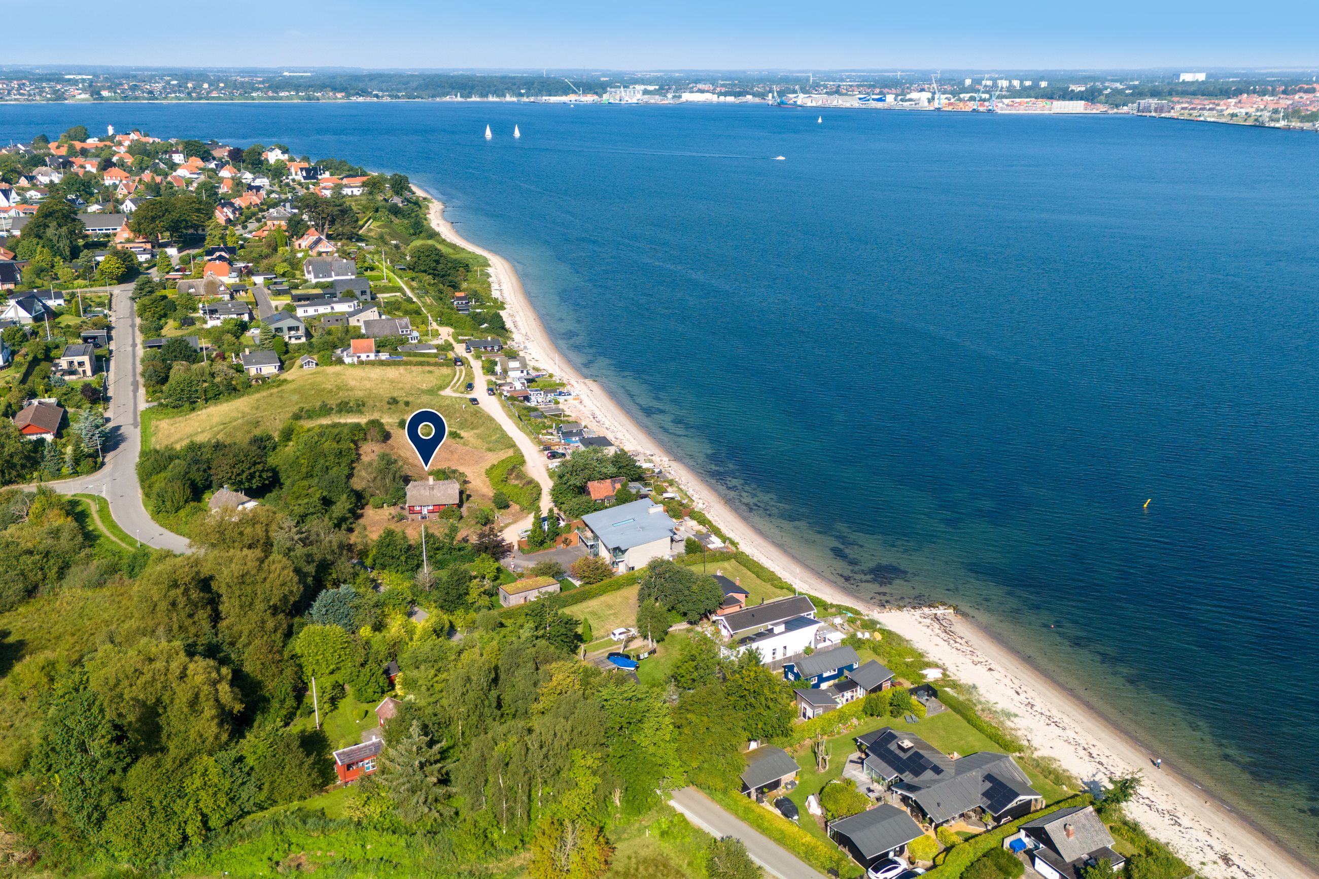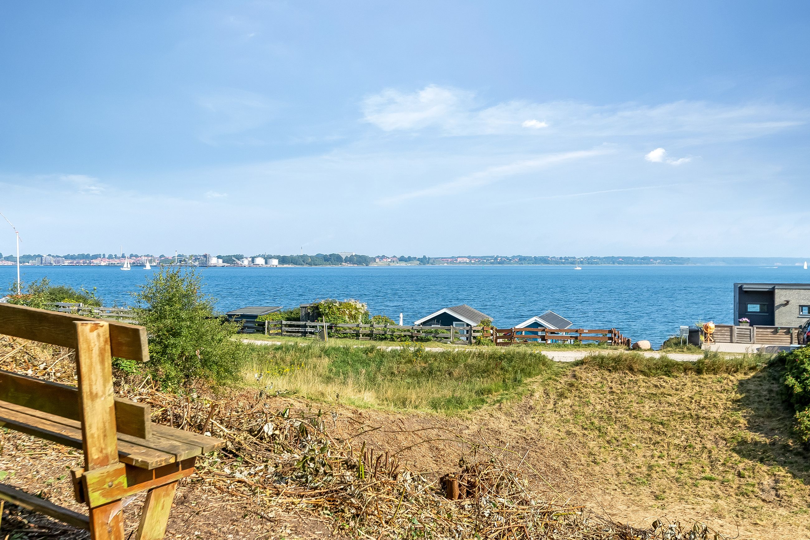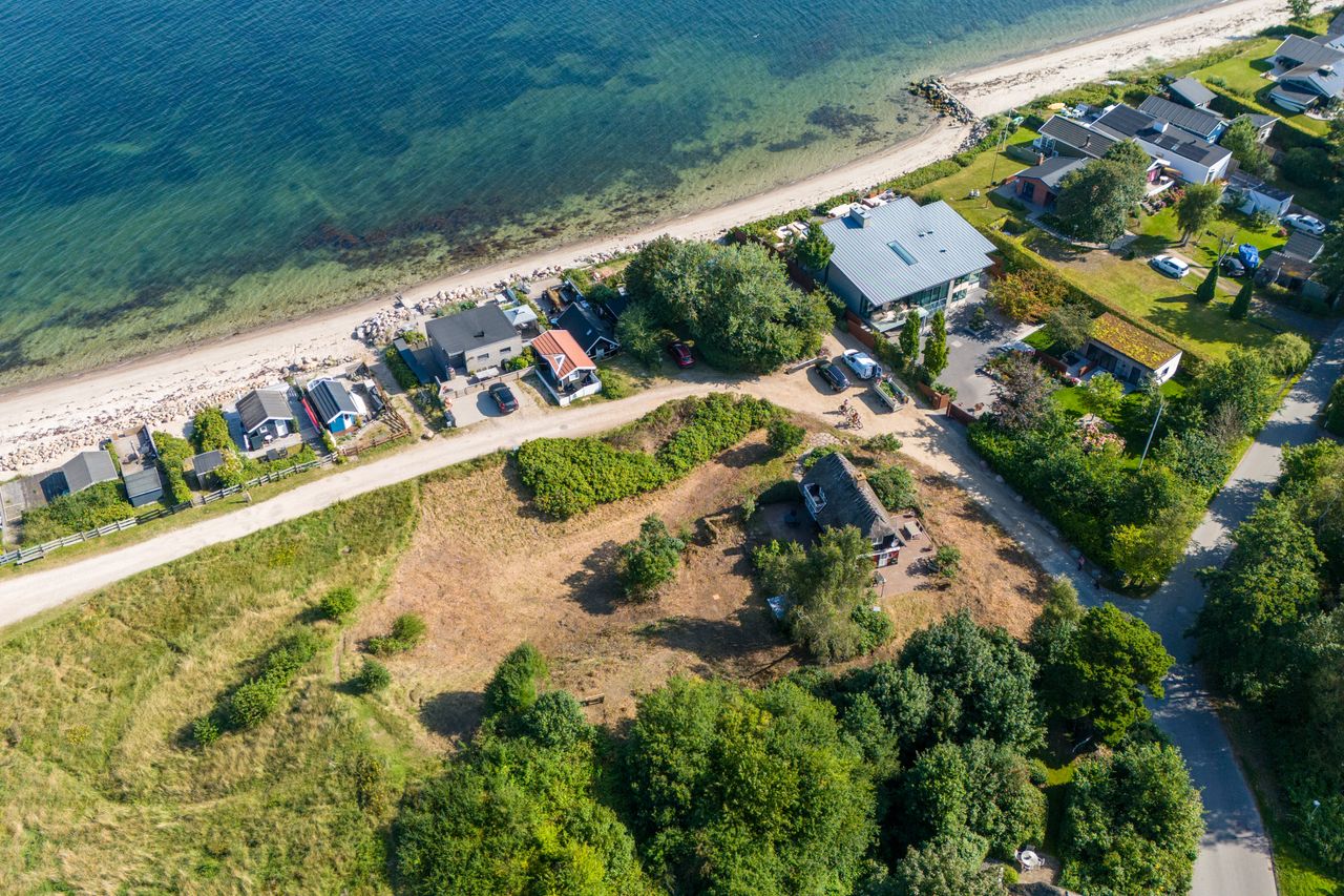 Beliggenheden taler for sig selv: Sommerhuset ligger i den nordlige del af Strib med en fantastisk udsigt over vandet.
