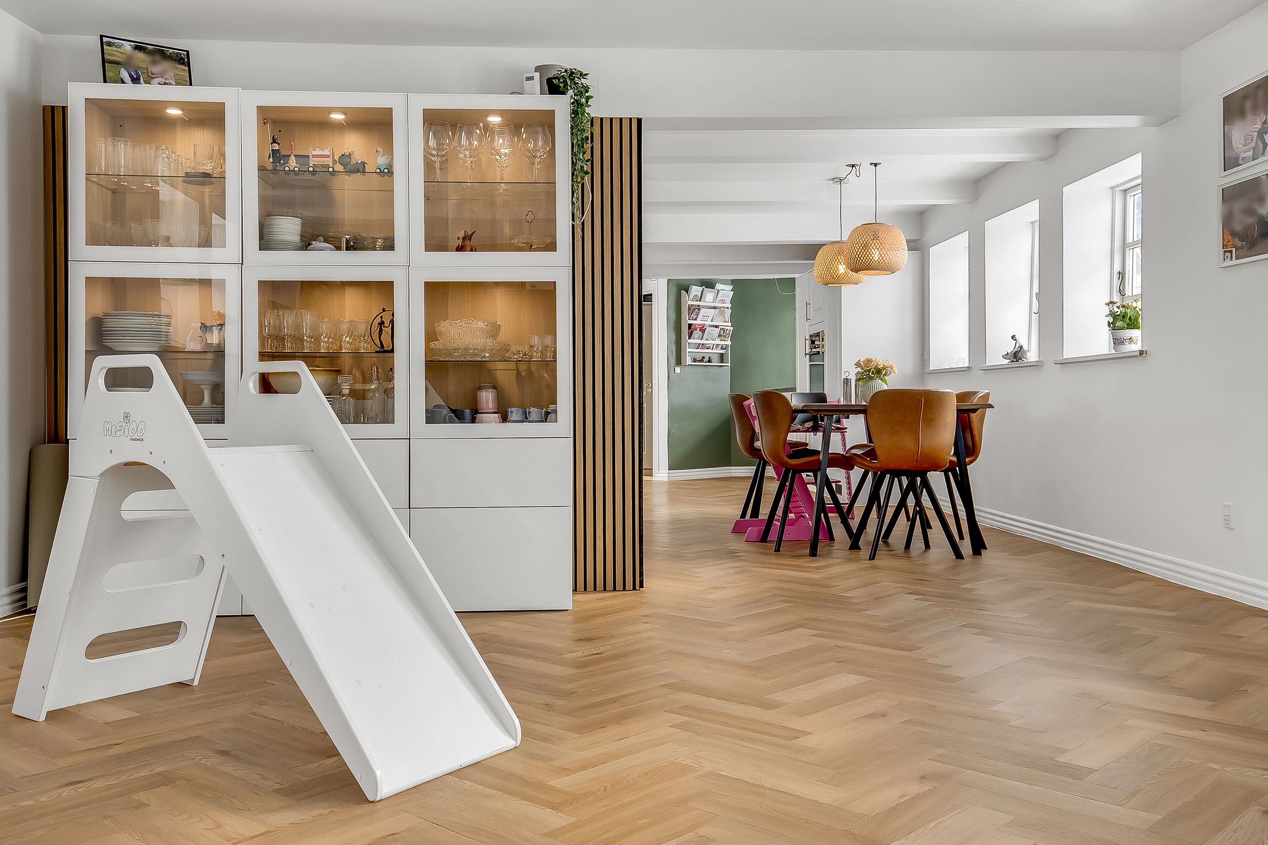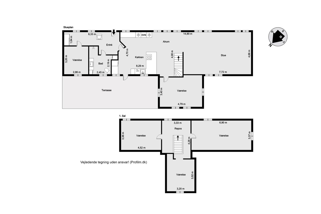 1. salen er indrettet med repos, hvorfra der er adgang til 3 gode værelser.