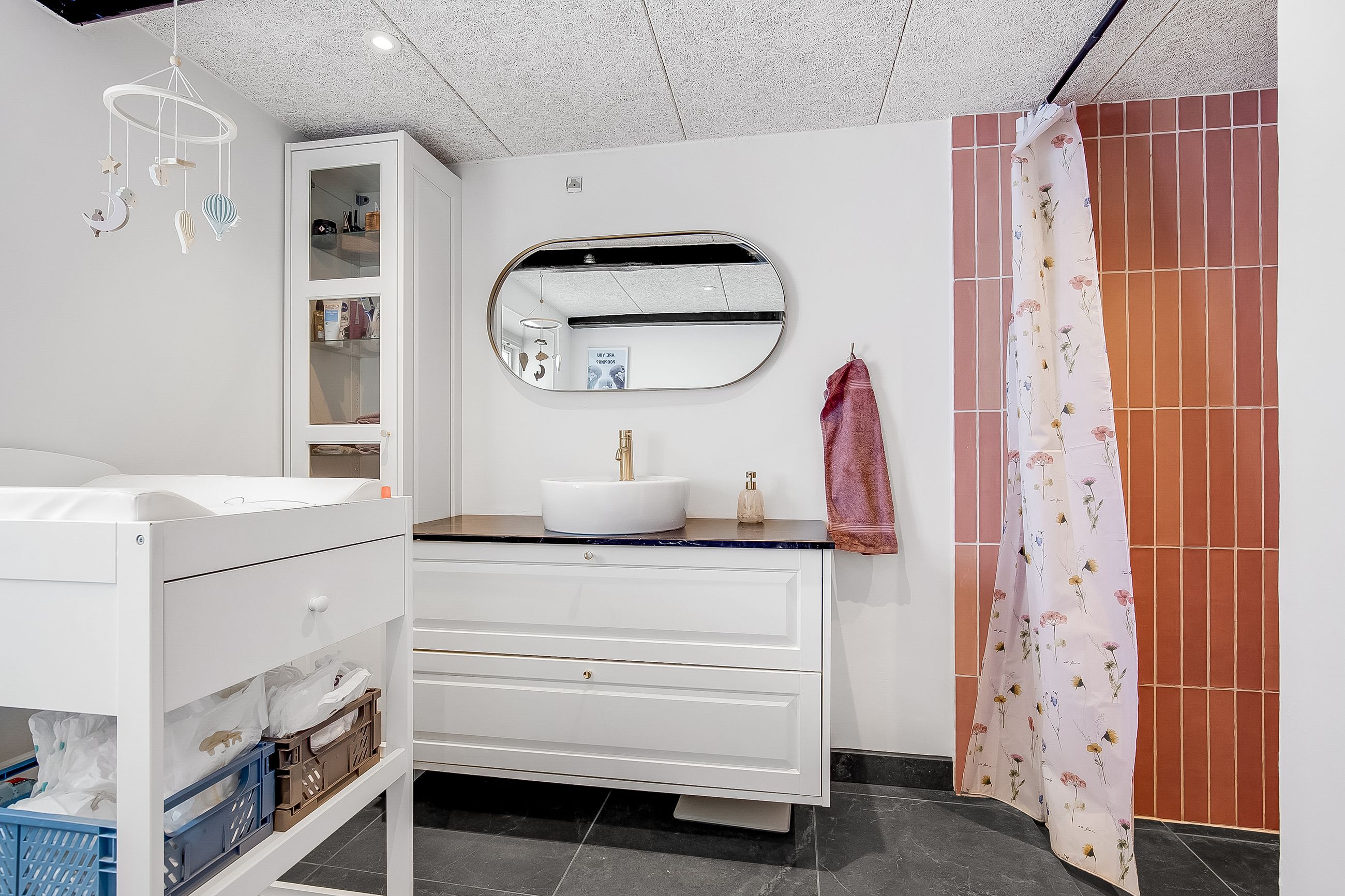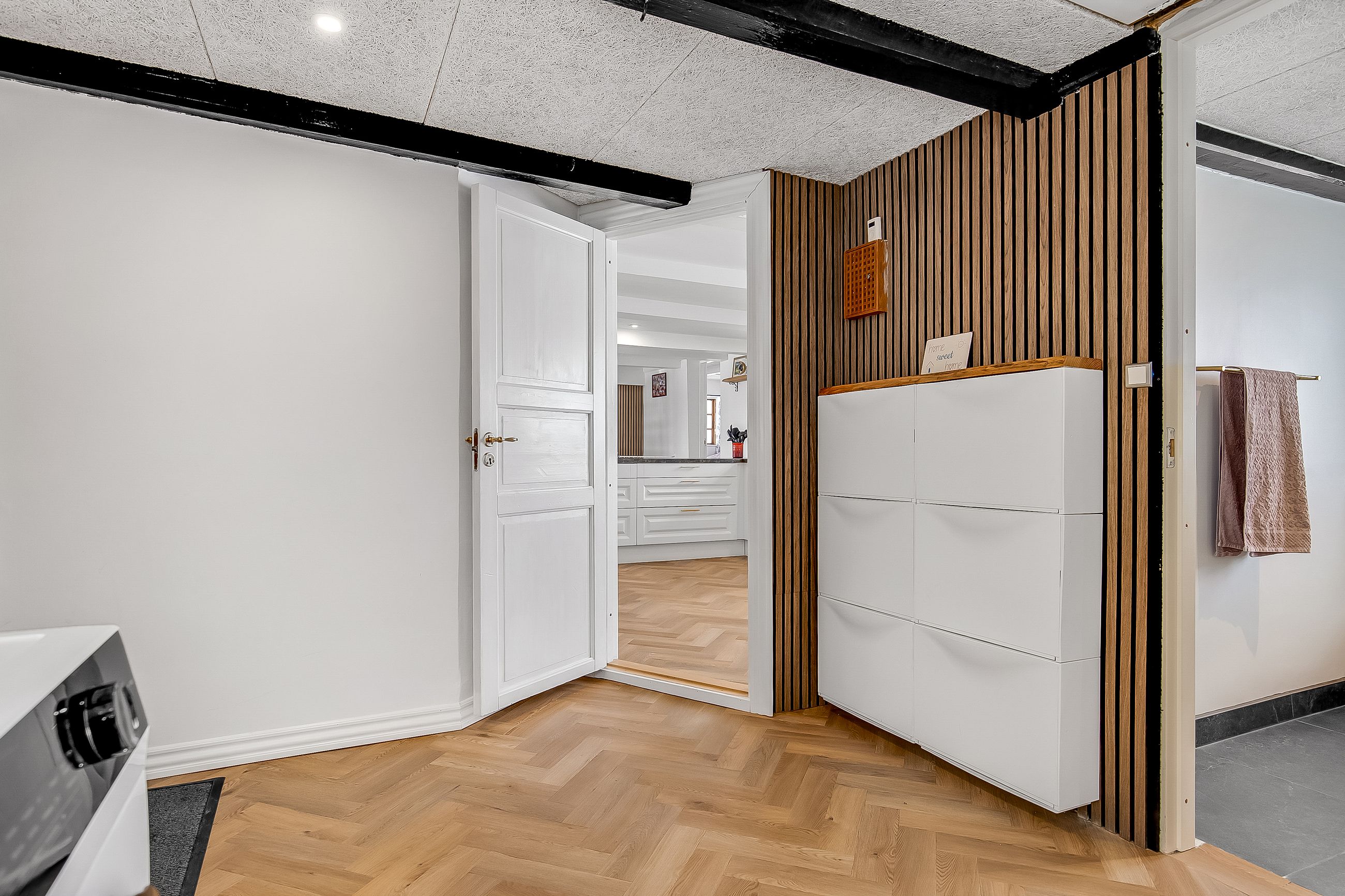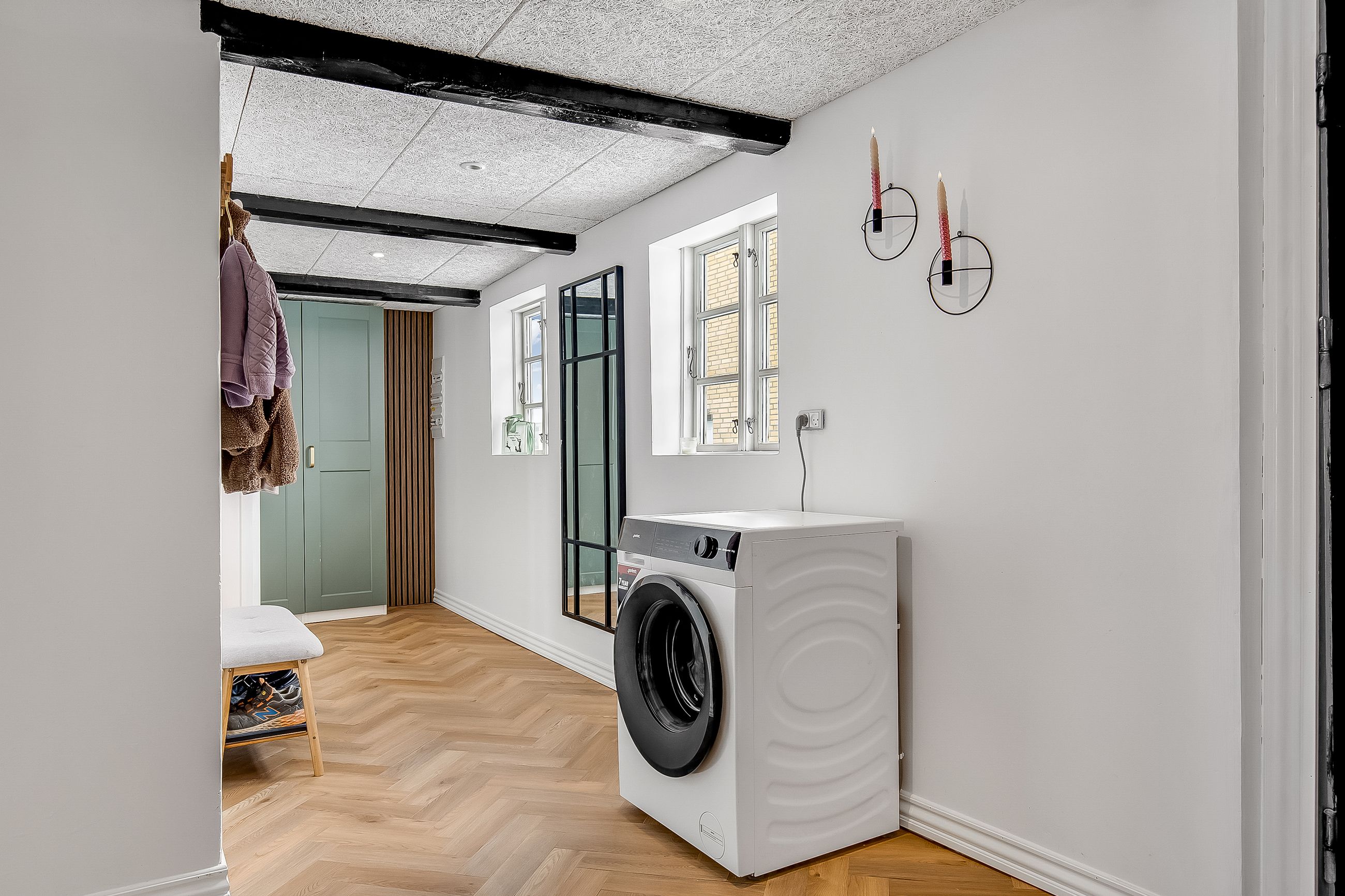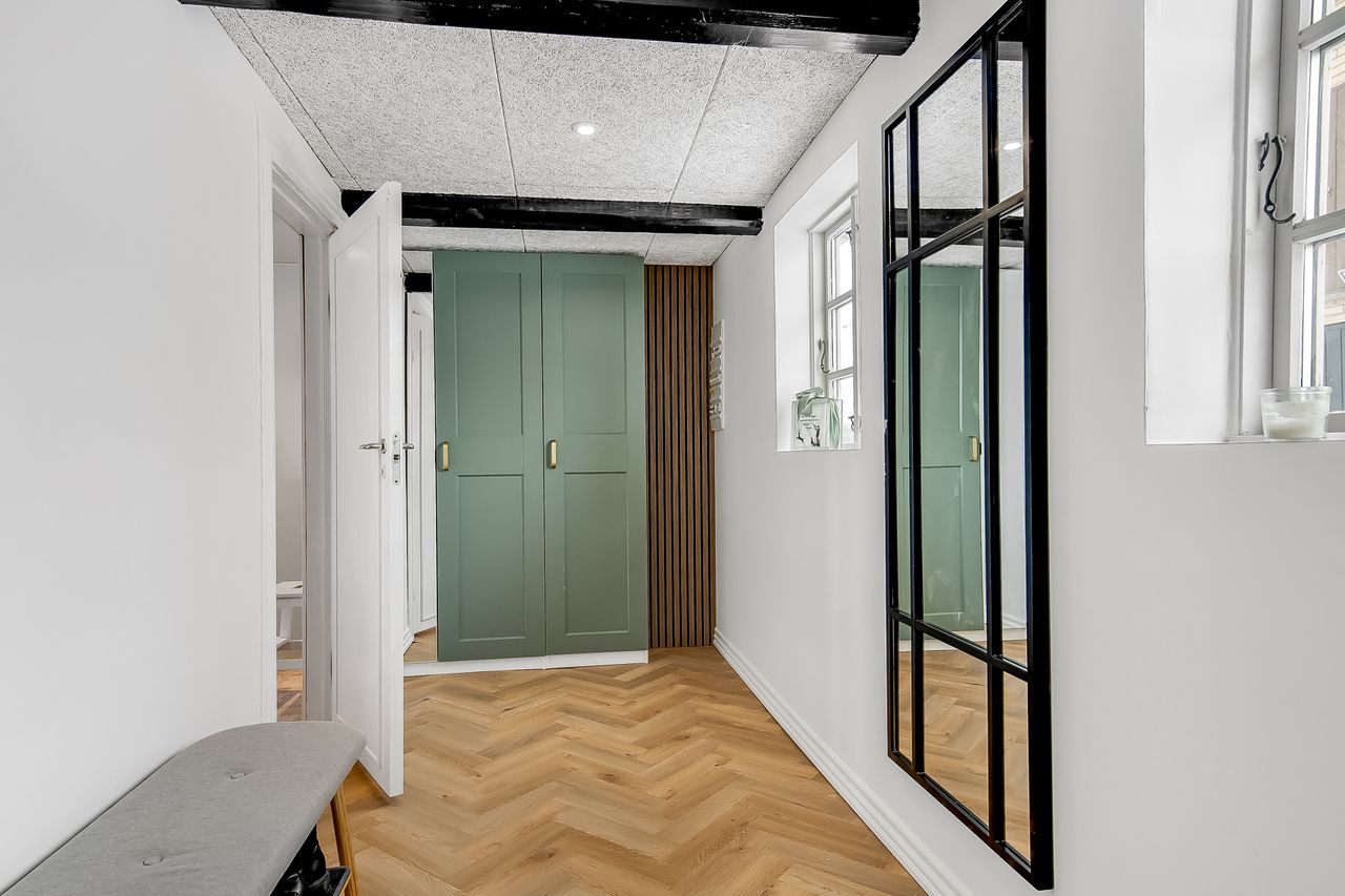 Gulvvarme i entré, køkken, alrum, stue, soveværelse & badeværelse.