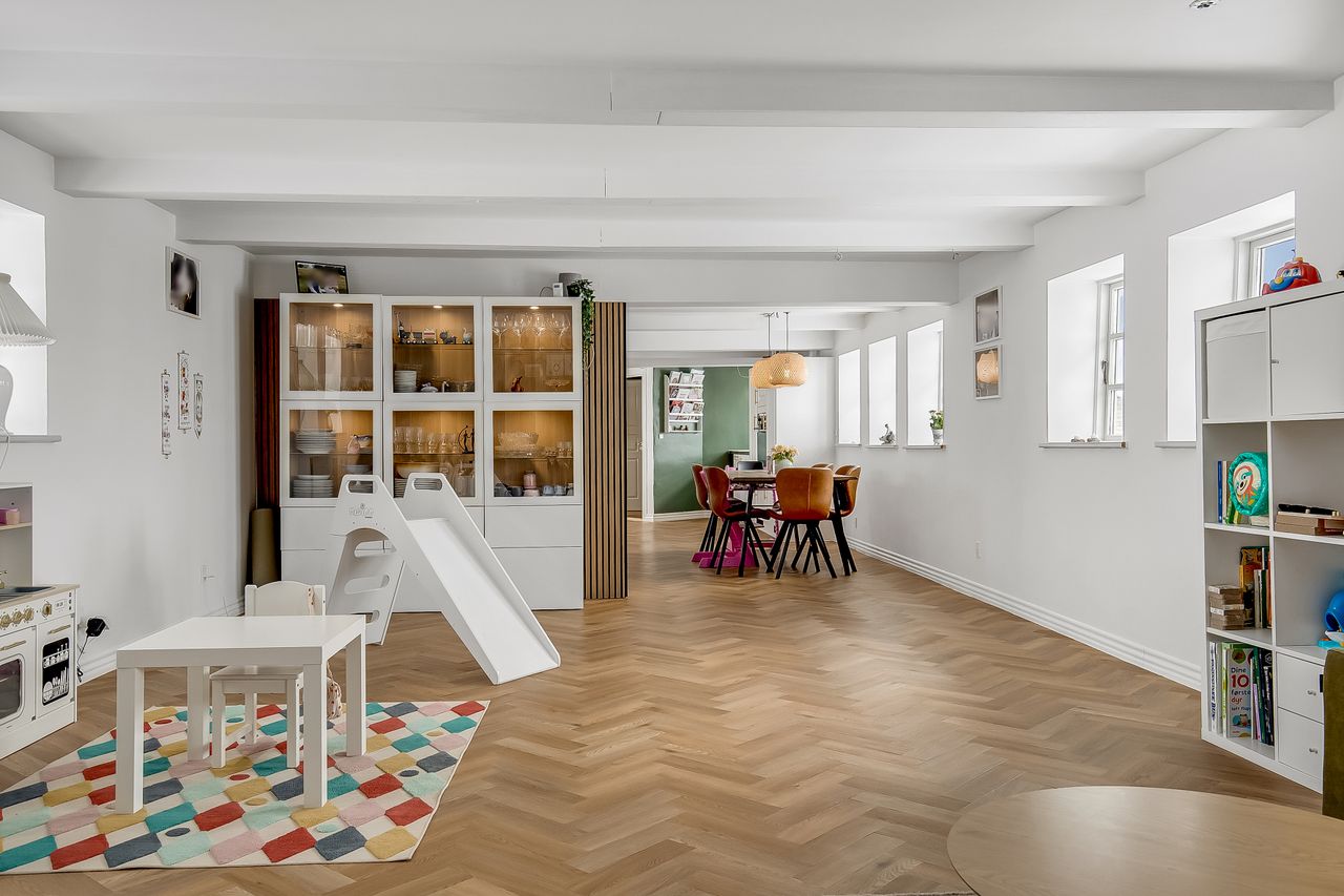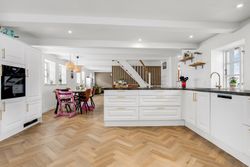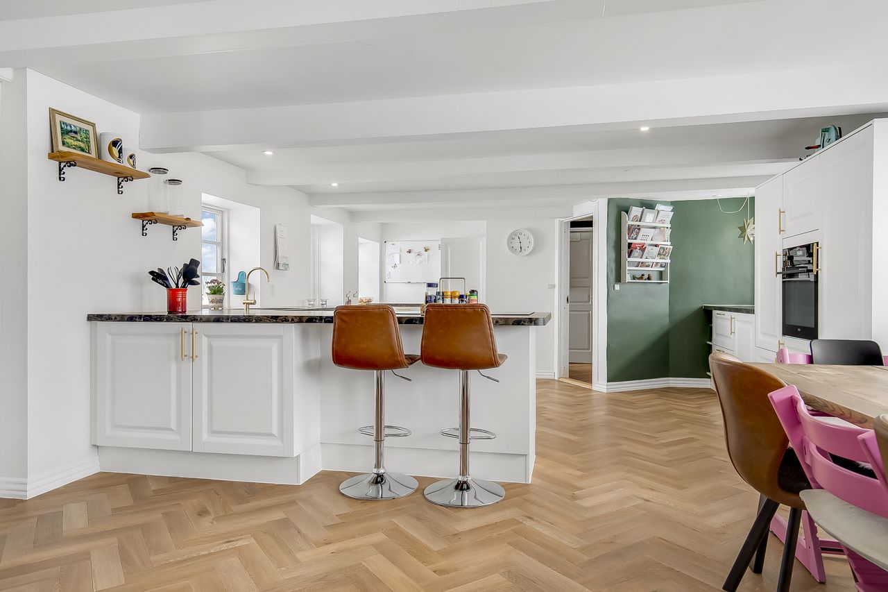 Endvidere lyst og indbydende køkken i åben forbindelse med alrum & stue. Adgang til stort soveværelse.