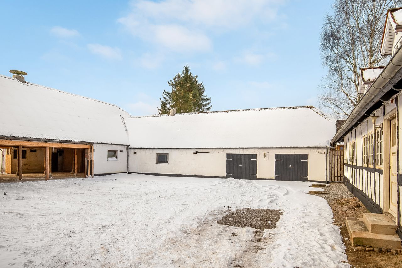 Til ejendommen hører i alt 889m2 udlænger, som fordeler sig på bl.a. maskinhal, gammel staldbygninger & god opbevaringsplads.
