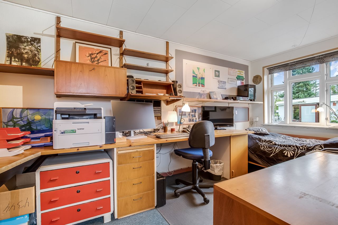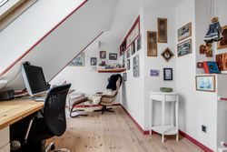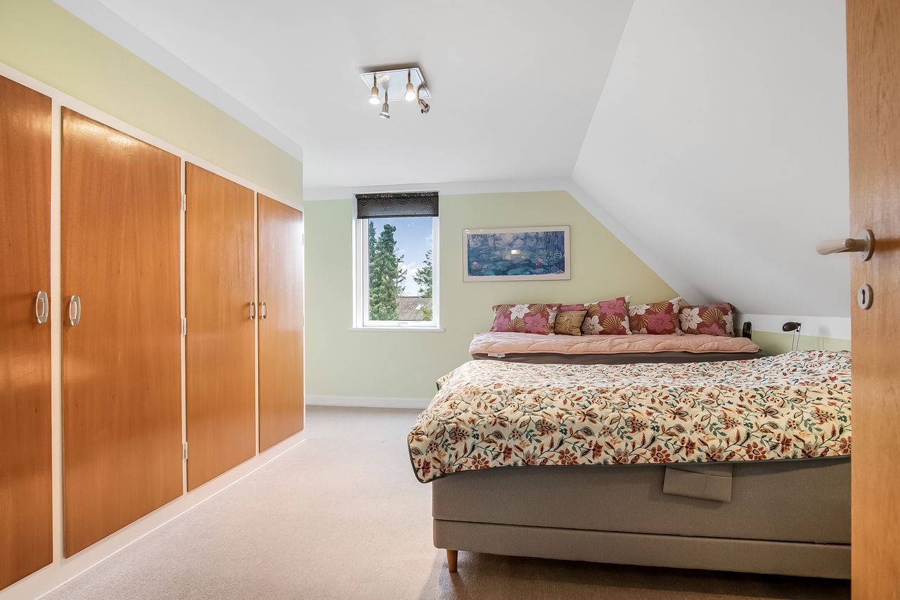 1. salen er indrettet med repos, hvorfra der er adgang til værelse med hems samt udgang til altan. Endvidere stort soveværelse med indbyggede skabe & videre adgang til toilet.