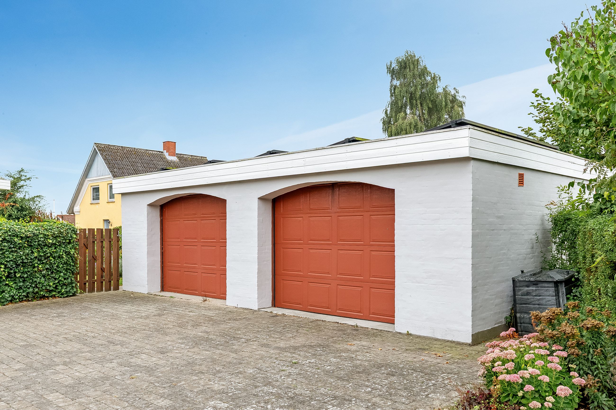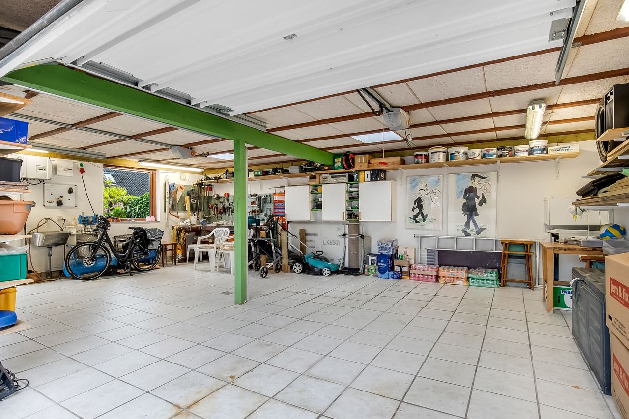 Til ejendommen hører stort, dobbelt garageanlæg med portautomatik & værksted.