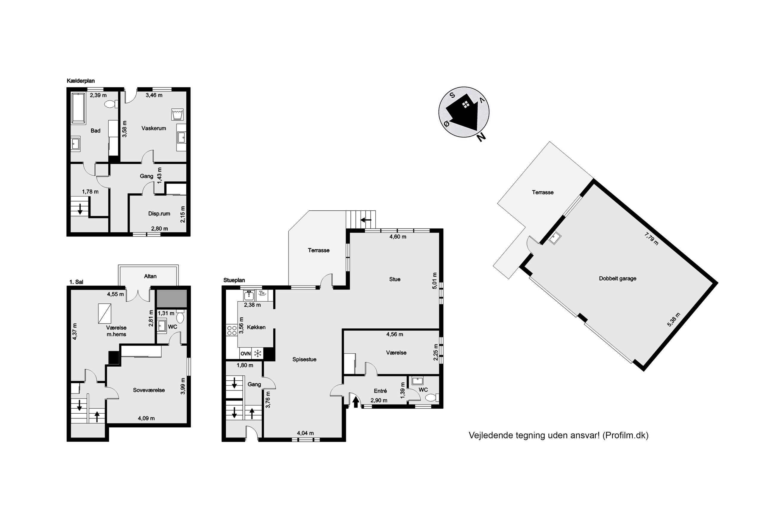 Villaens indretning i stueplan: