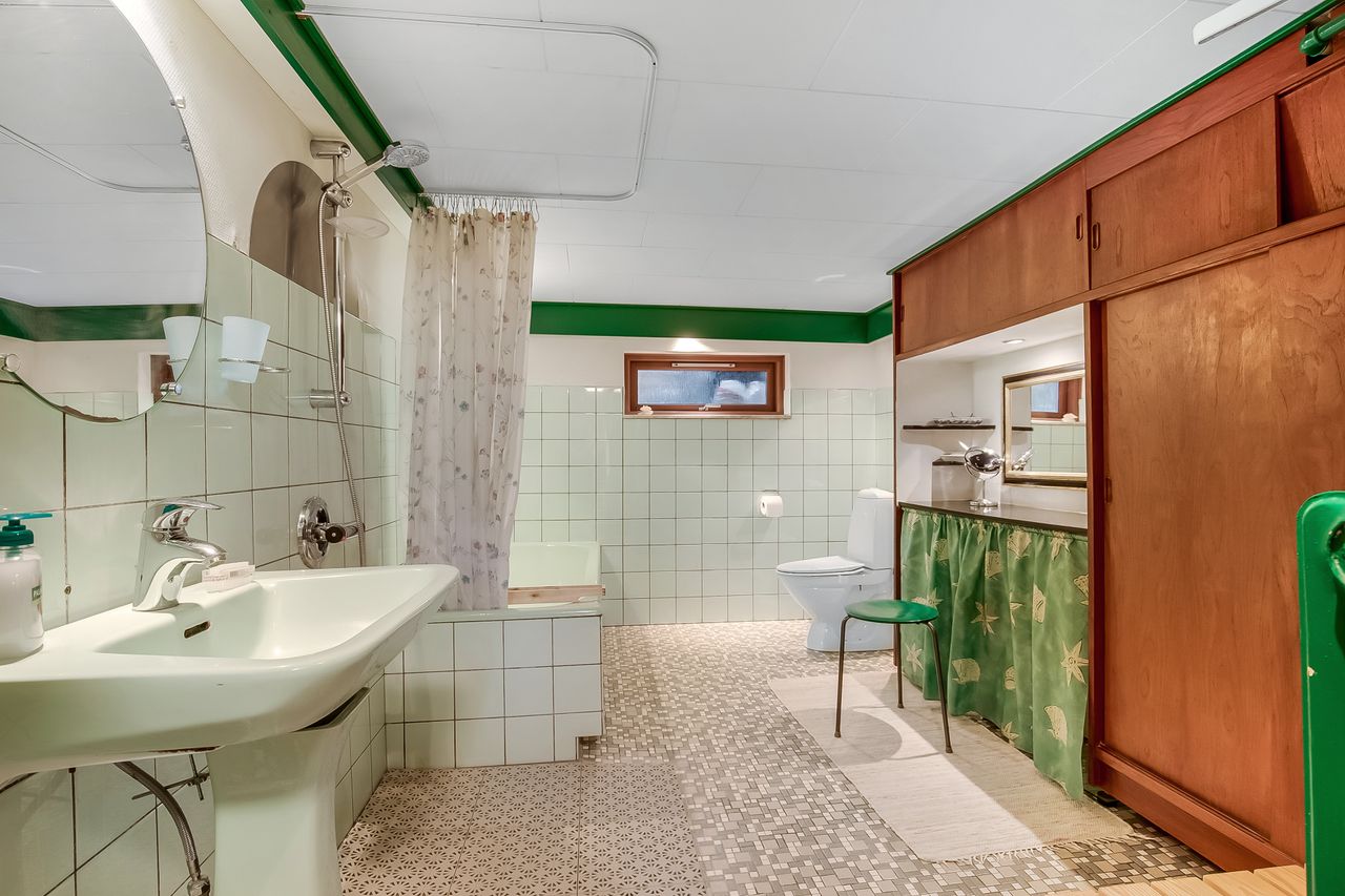 Kælderen byder på repos, hvorfra der er adgang til stort badeværelse, disp. rum samt rummeligt bryggers med direkte udgang.