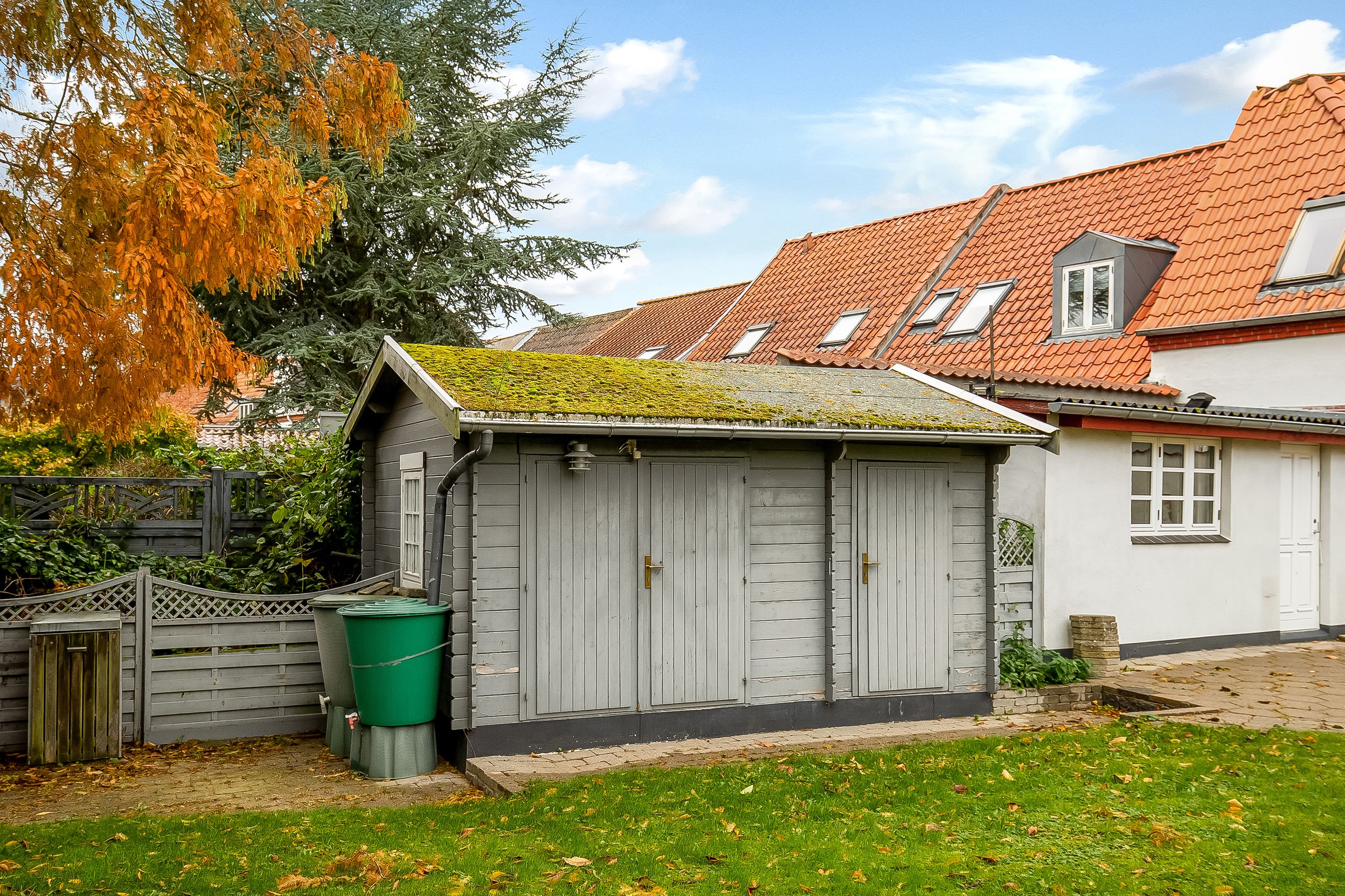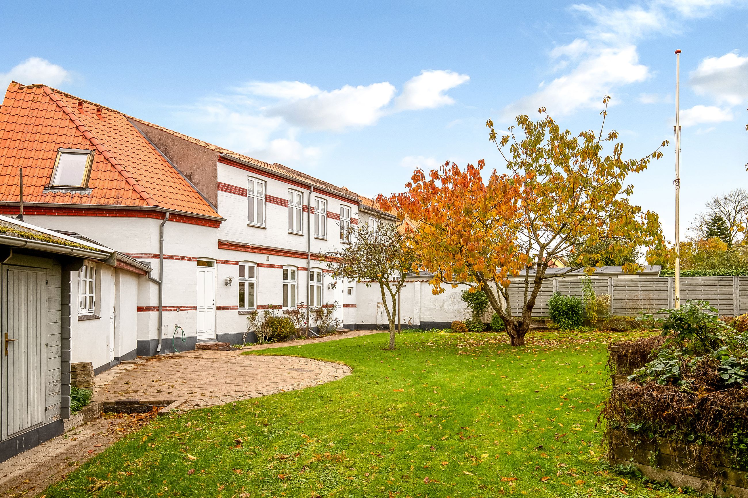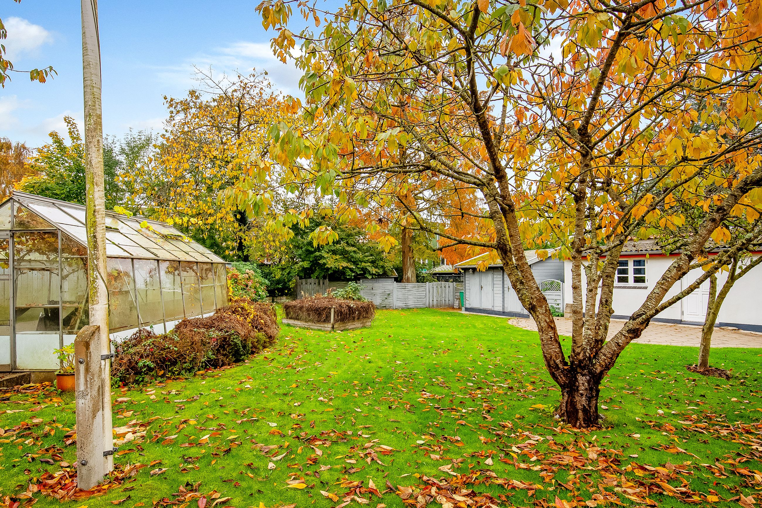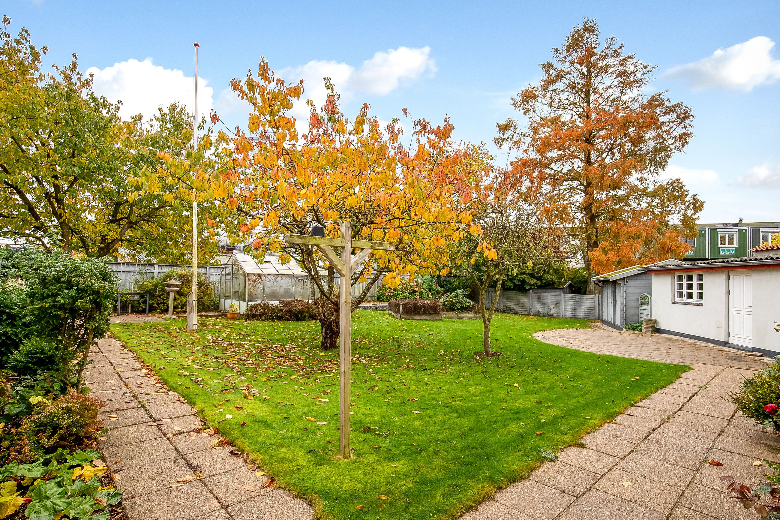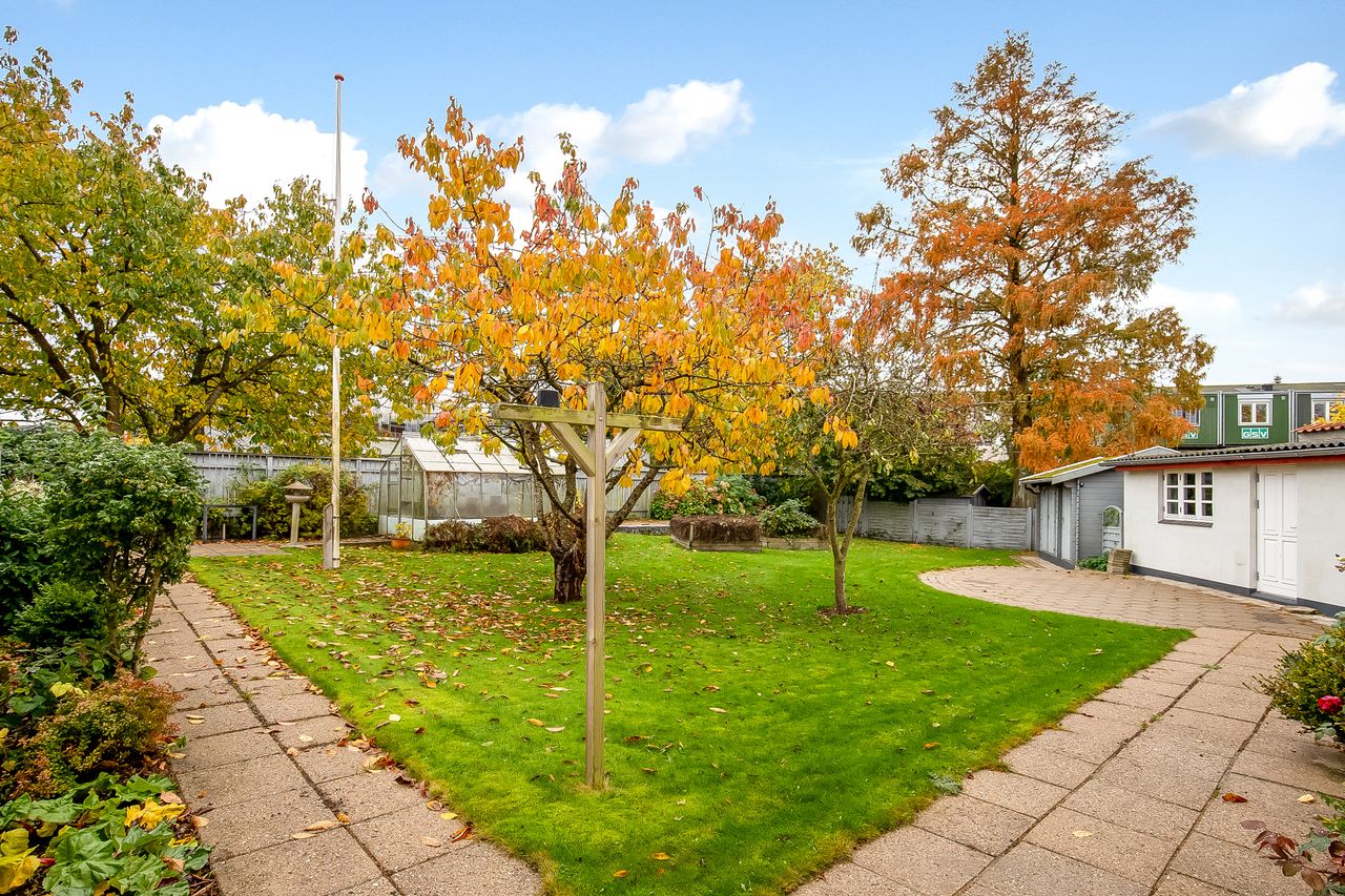 Her kommer ejendommen virkelig til sin ret - skøn prydhave med smukke træer & buske samt et flere gode fliseterrasser. Fælles brugsret af havemiljø & terrasser mellem de 2 boligenheder.