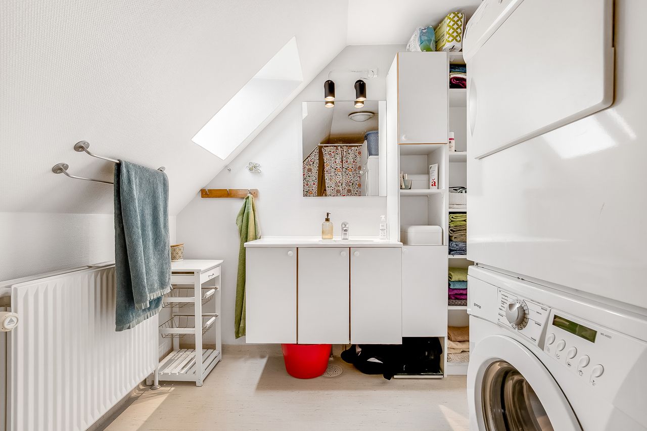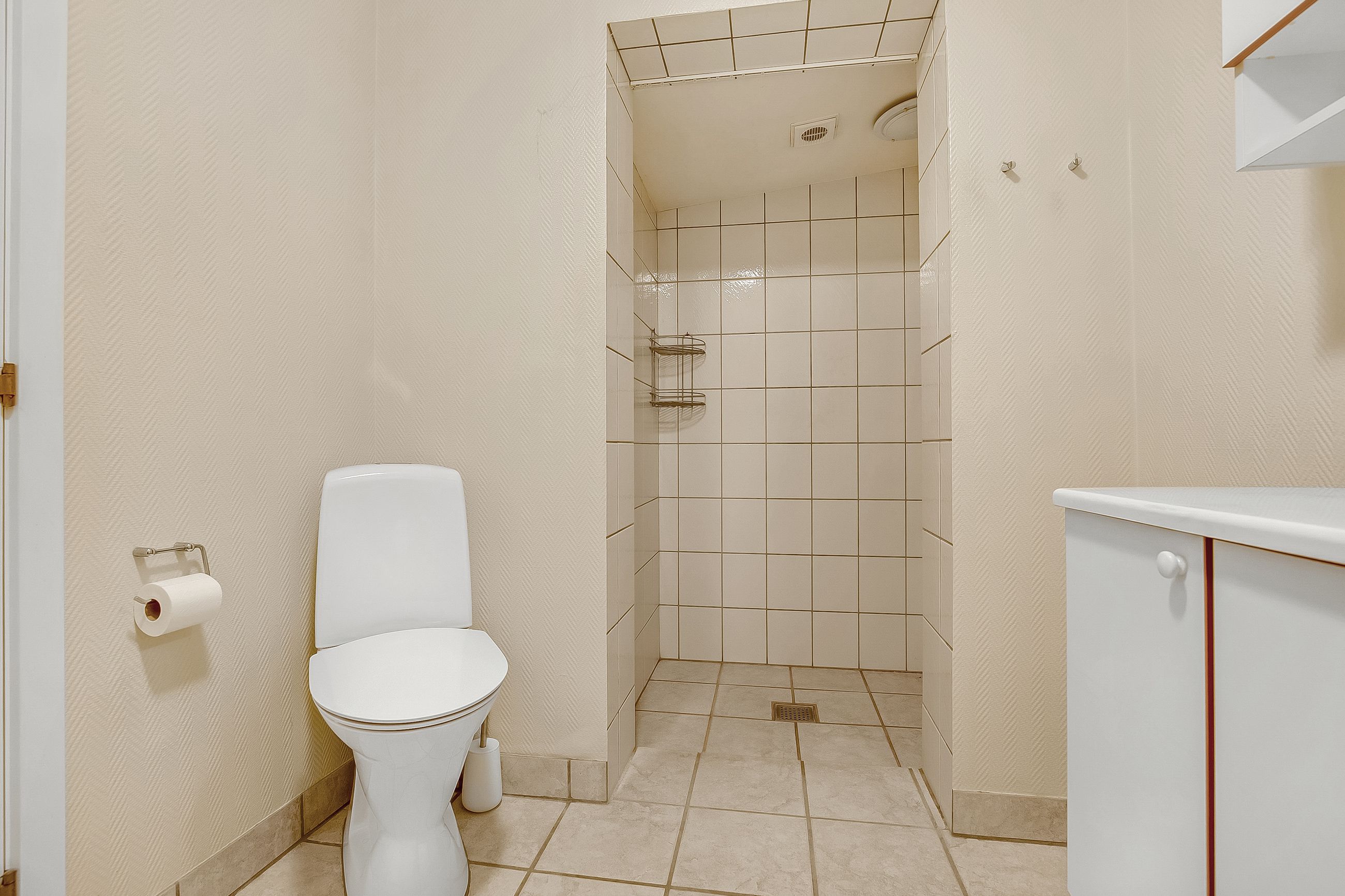 Endvidere stort badeværelse med god bruseniche samt yderligere et stort værelse.