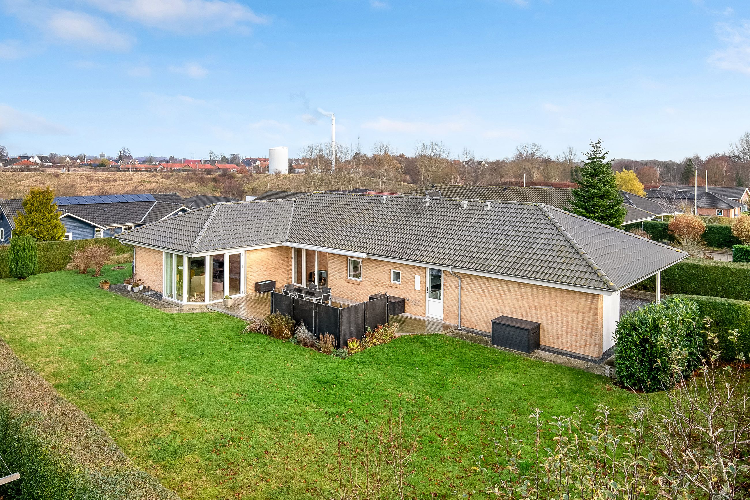I alt får du 163m2 bolig samt 30m2 carport og udhus. Dertil en