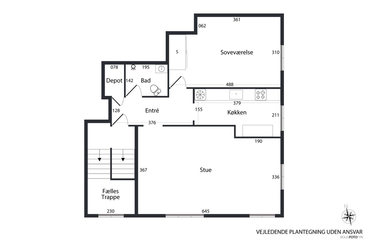 Lejligheden er velindrettet og består af entré, stue, værelse, køkken, badeværelse samt et depotrum. Planløsningen gør boligen velegnet både til singlen, parret - og som delelejlighed. Da nuværende ejer flyttede ind i 2016, blev væsentlige dele af lejligheden moderniseret med nye gulve, nyt køkken, udskiftning af alt el samt nye lofter. I 2018 blev alle vinduer desuden udskiftet til termoruder.