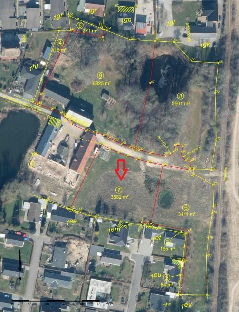 Grunden er en del af et nedlagt landbrug, der er under udstykning til i alt fem matrikler.