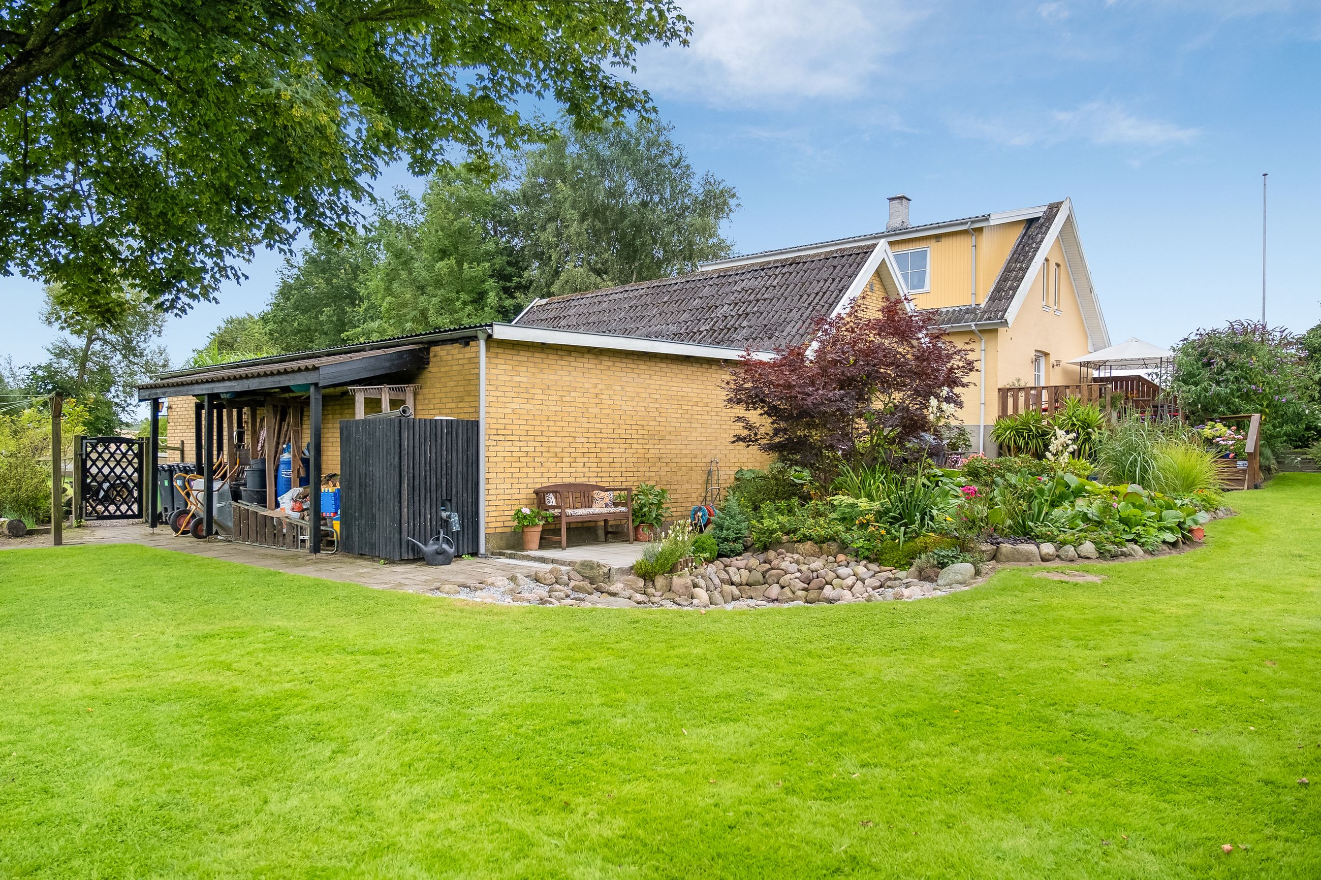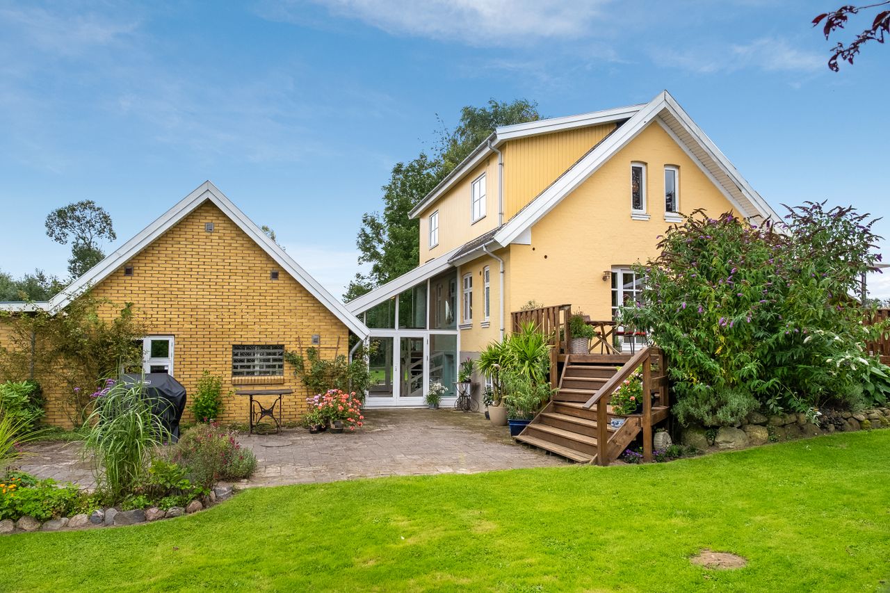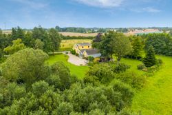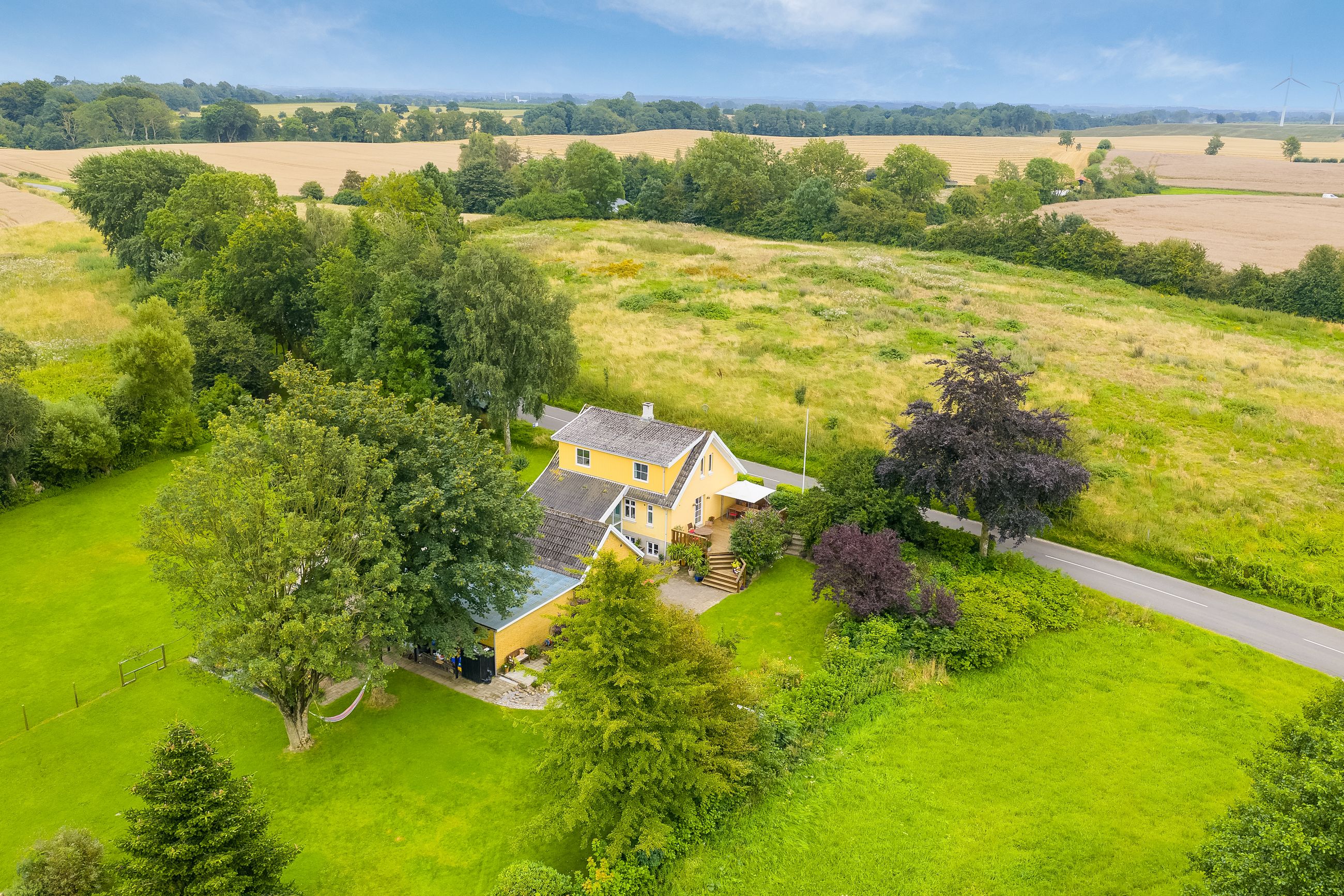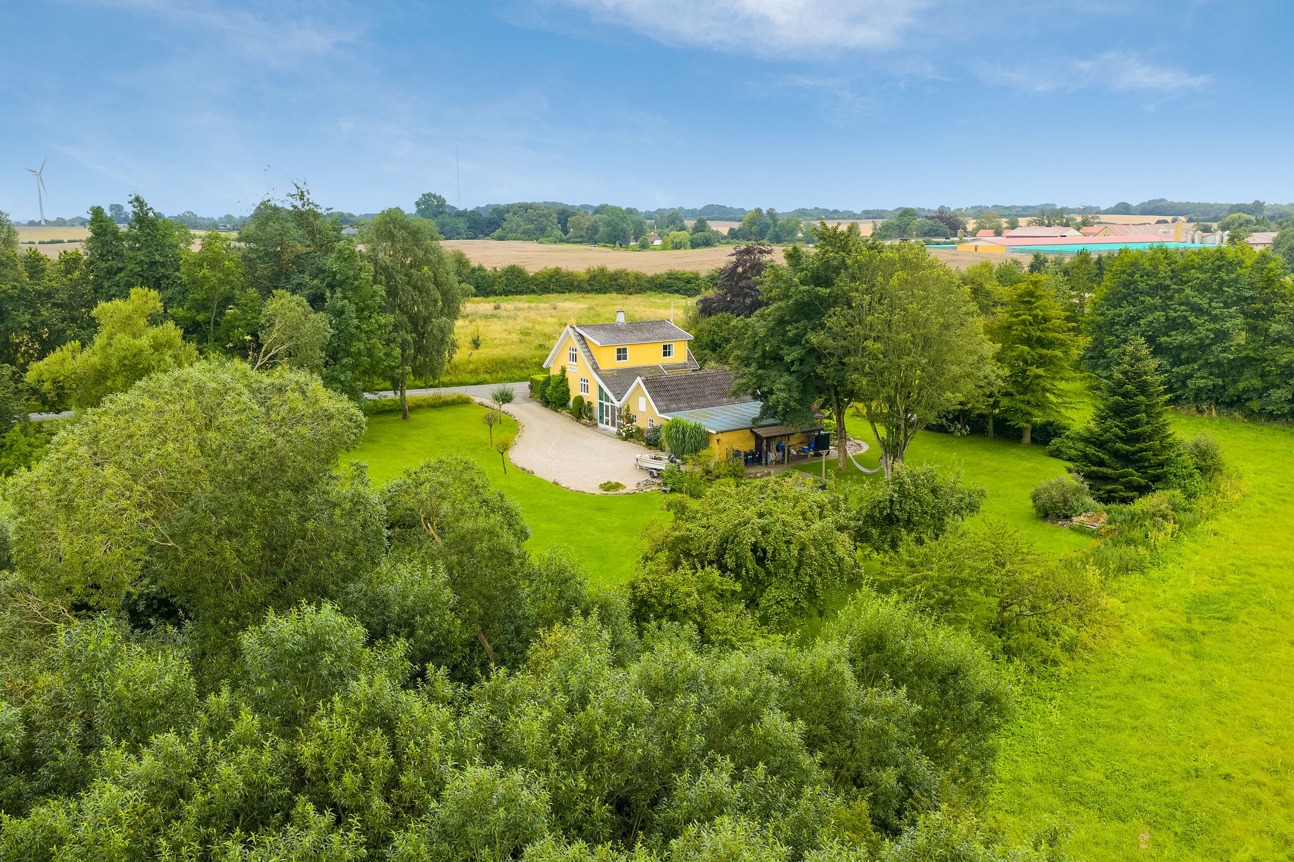 Helt uforstyrret iblandt høje træer og smukke marker så langt øjet rækker, finder du denne perle af en bolig på 133 boligkvadratmeter, samt en separat afdeling med 2 store disponible rum og toilet, som tidligere har været brugt til teenageafdeling. Her får du masser af plads at boltre dig på, privatliv og ro, samtidig med at du har mindre end 4 kilometer til både skole, børnehus og indkøbsmuligheder. Du får så at sige en helt unik mulighed for at bo centralt i landlige omgivelser.
