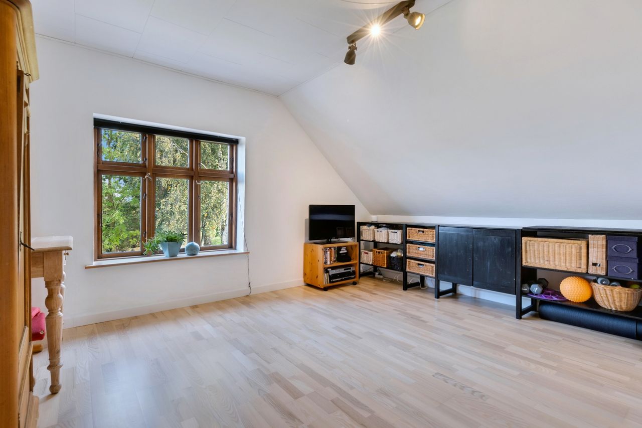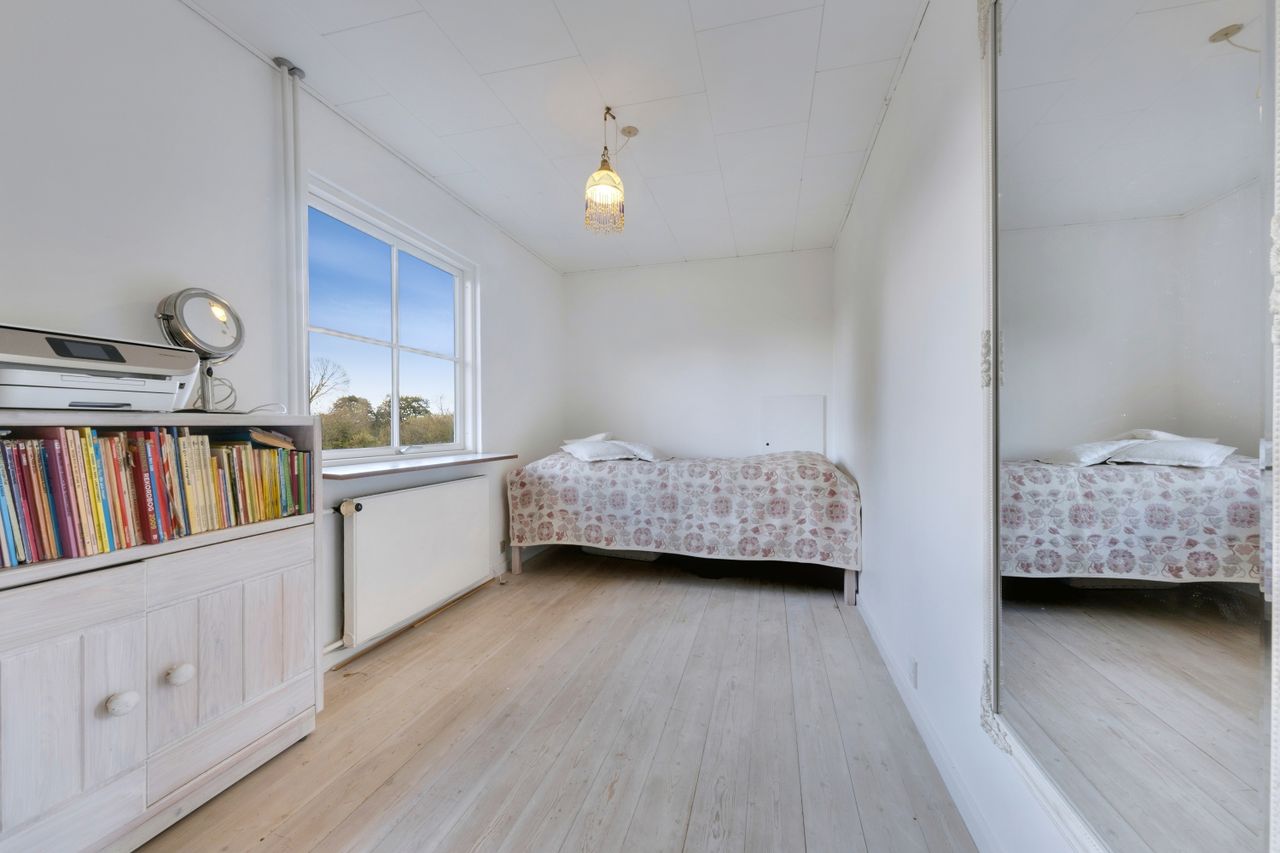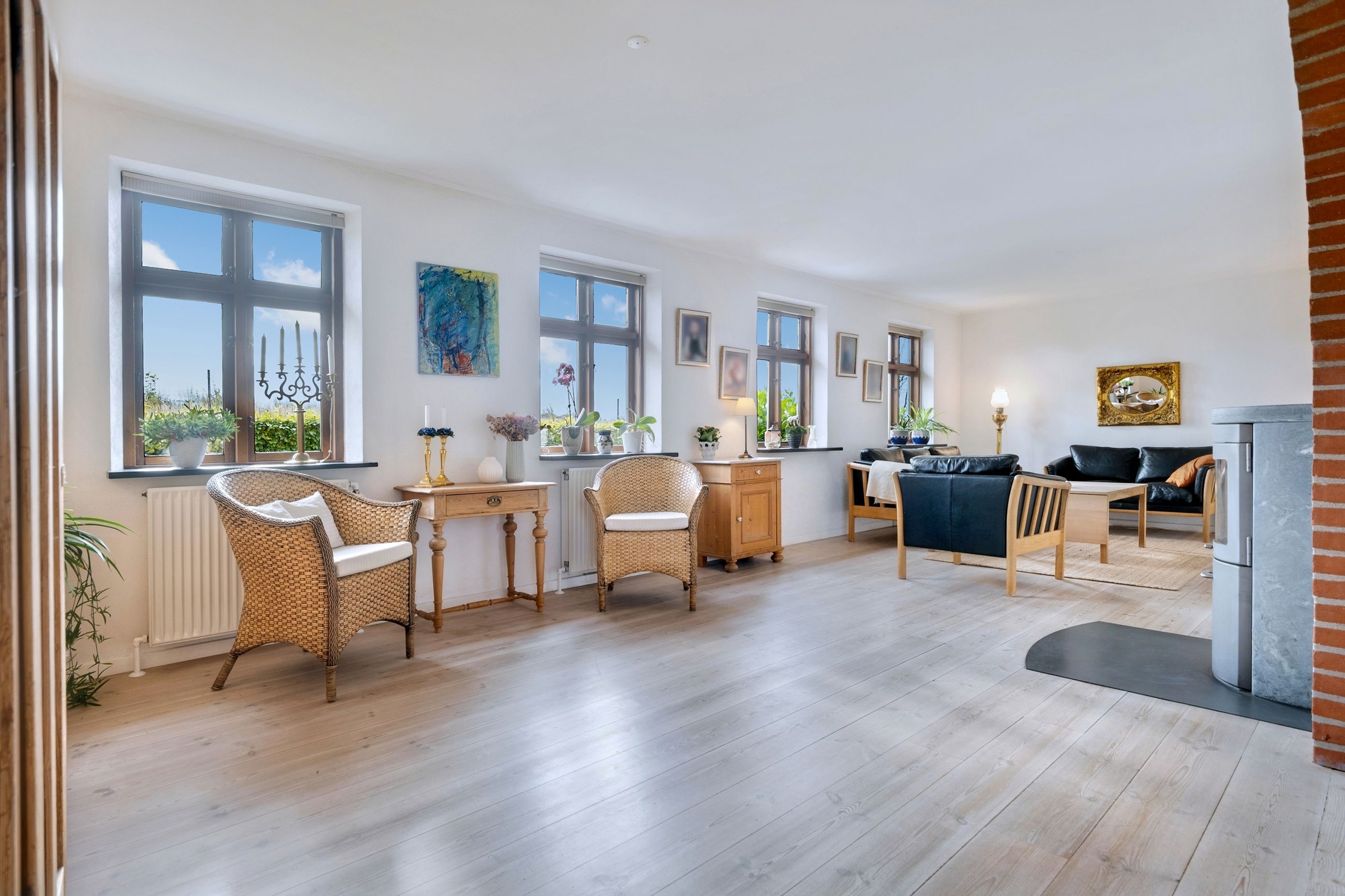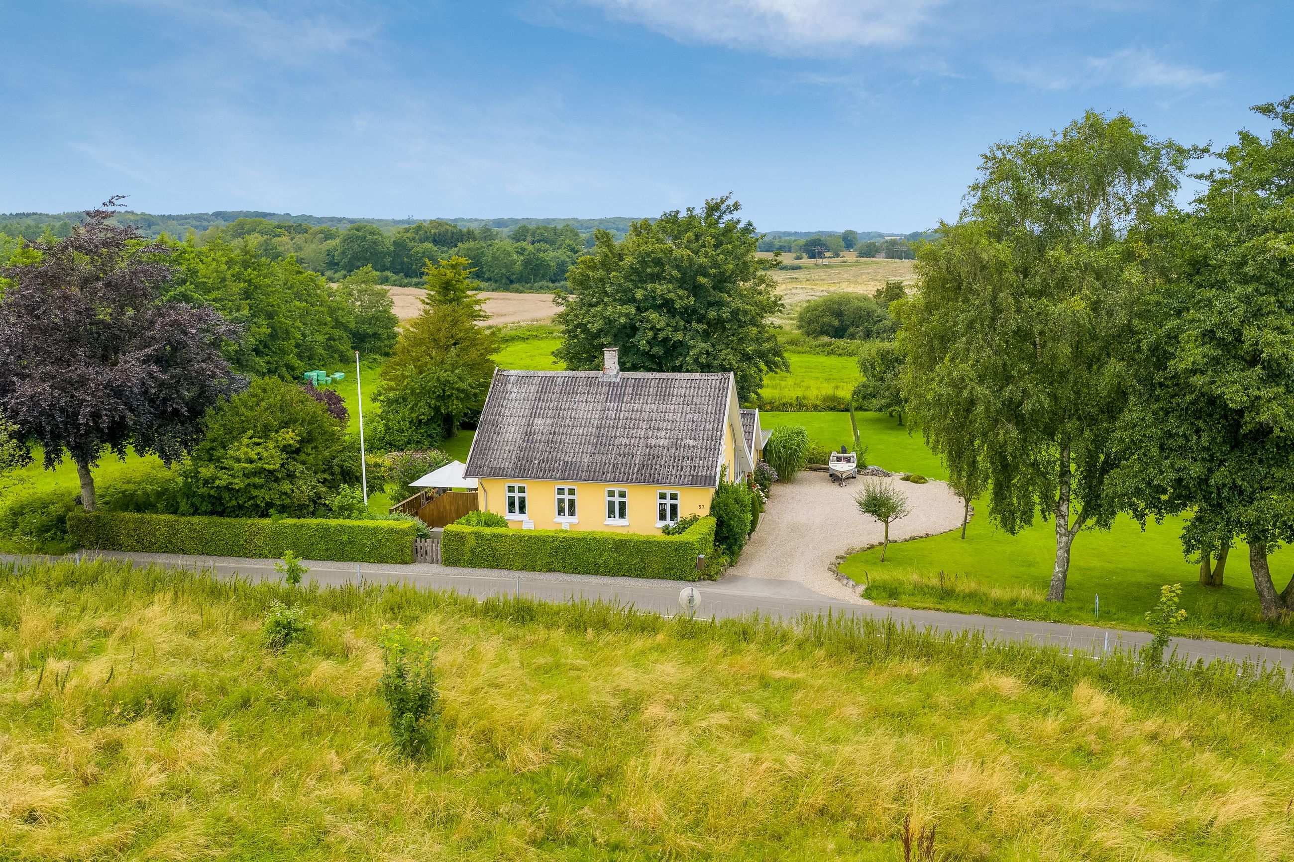 Helt uforstyrret iblandt høje træer og smukke marker så langt øjet rækker, finder du denne perle af en bolig på 133 boligkvadratmeter, samt en separat afdeling med 2 store disponible rum og toilet, som tidligere har været brugt til teenageafdeling. Her får du masser af plads at boltre dig på, privatliv og ro, samtidig med at du har mindre end 4 kilometer til både skole, børnehus og indkøbsmuligheder. Du får så at sige en helt unik mulighed for at bo centralt i landlige omgivelser.