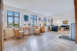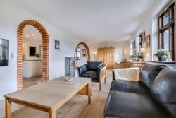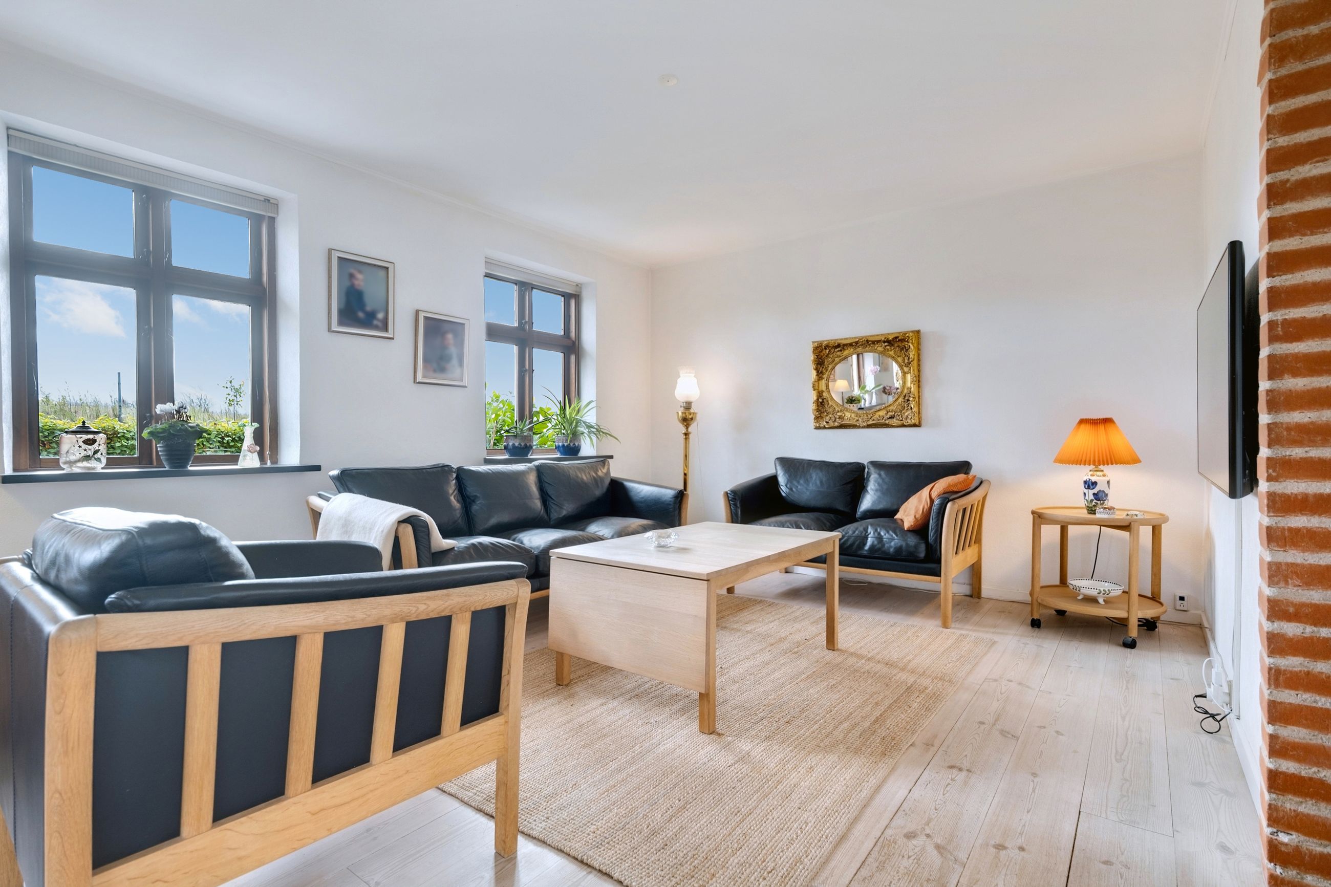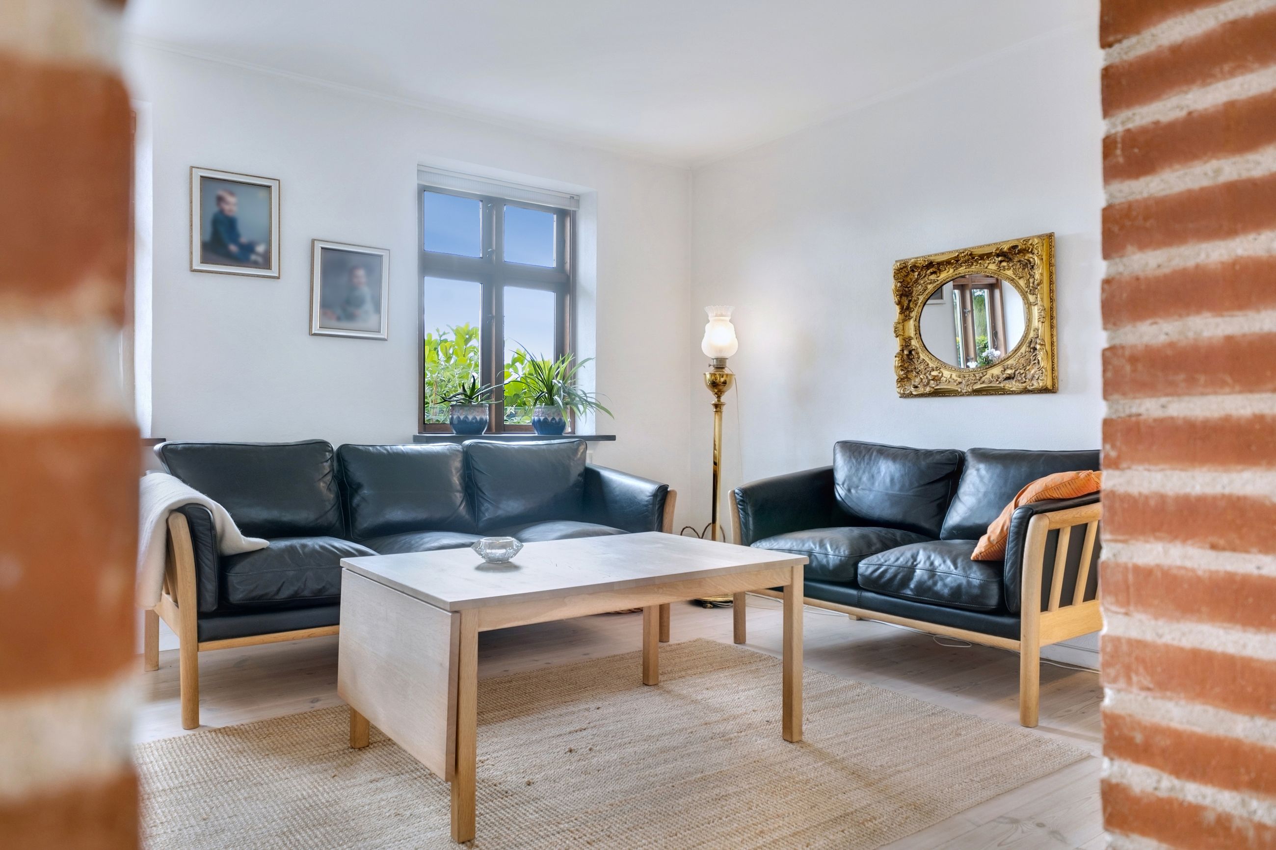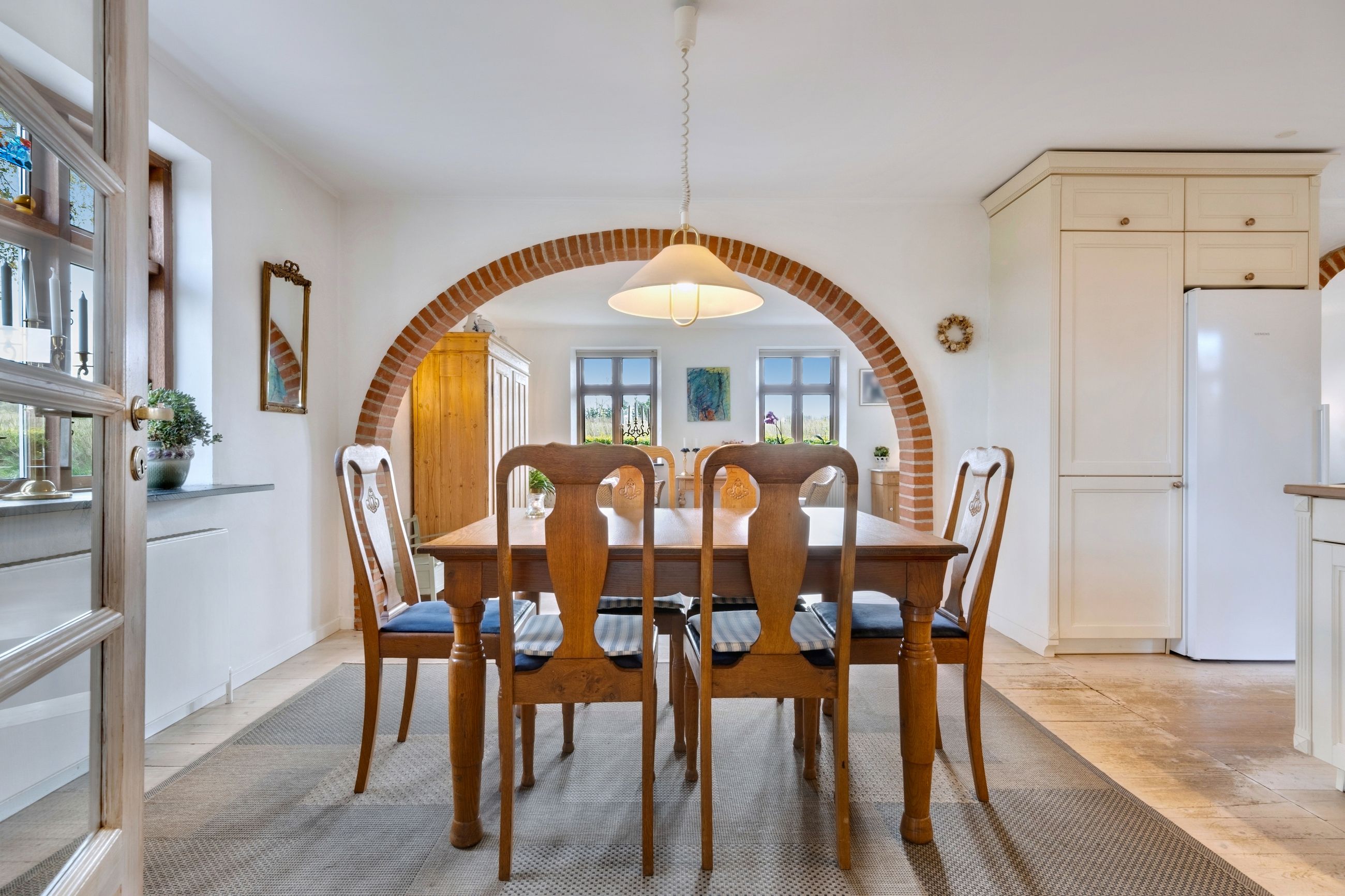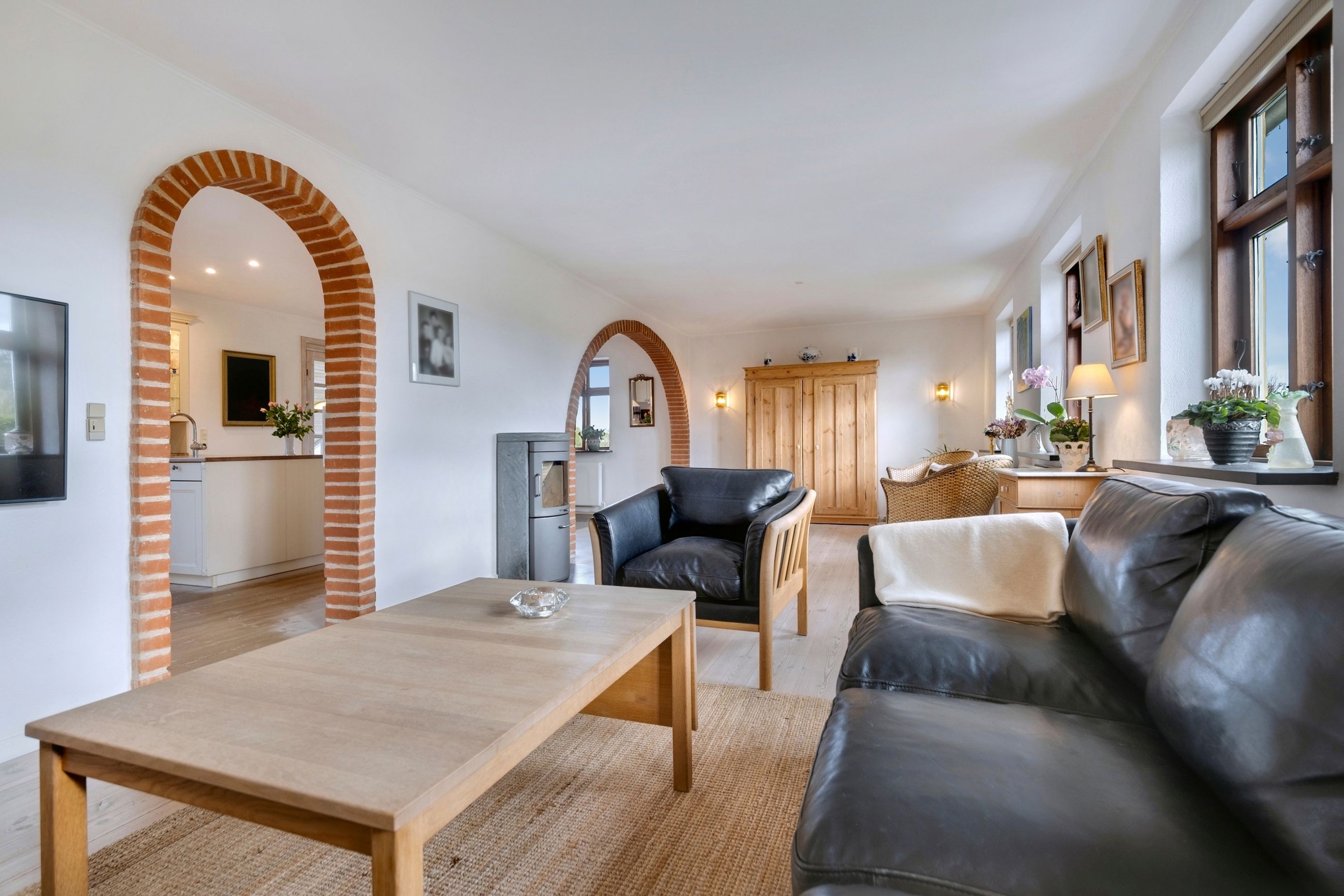 Når du træder gennem de to smukke murede buer i køkkenalrummet, kommer du ind i den rummelige stue. Her er der masser af plads til at fordybe sig i en spændende film foran TV’et eller nyde en god bog ved brændeovnen, som spreder en varm atmosfære. Stuen er det perfekte fristed, hvor du kan søge ro, men samtidig kan samtalen flyde frit takket være den åbne og indbydende planløsning.