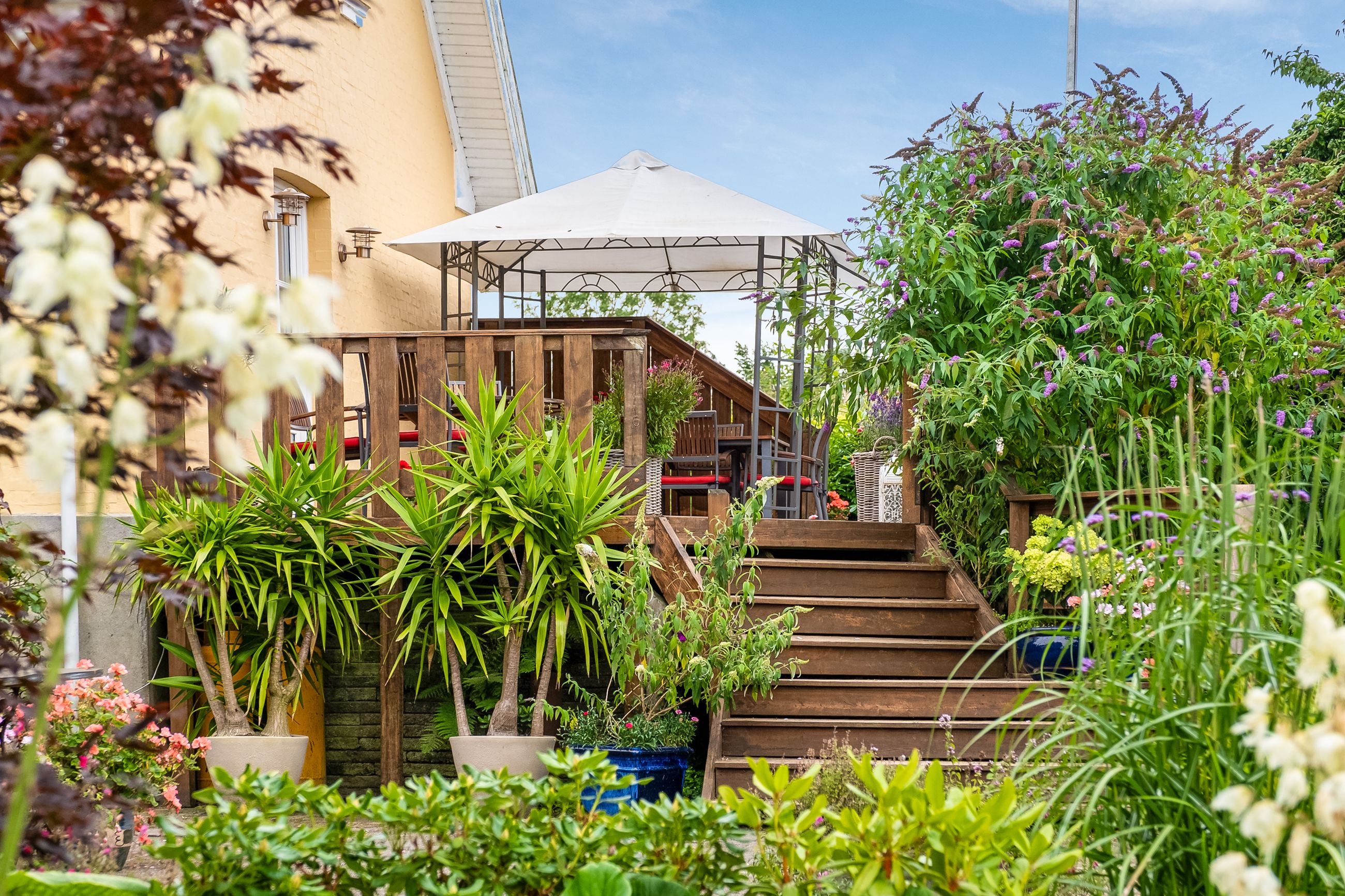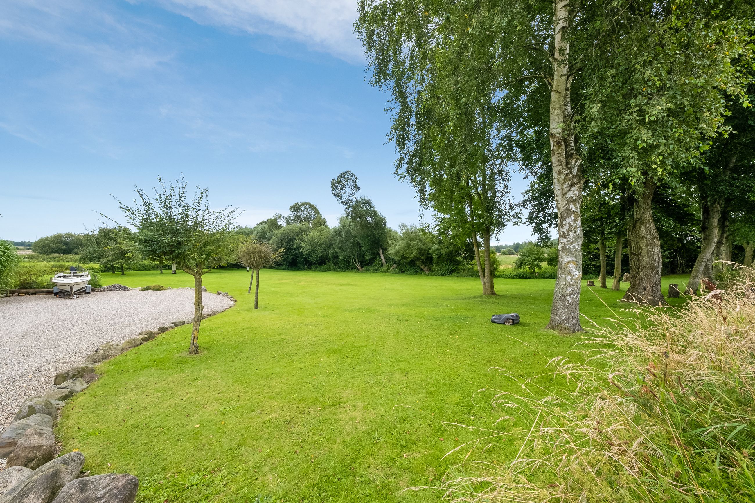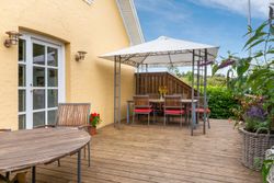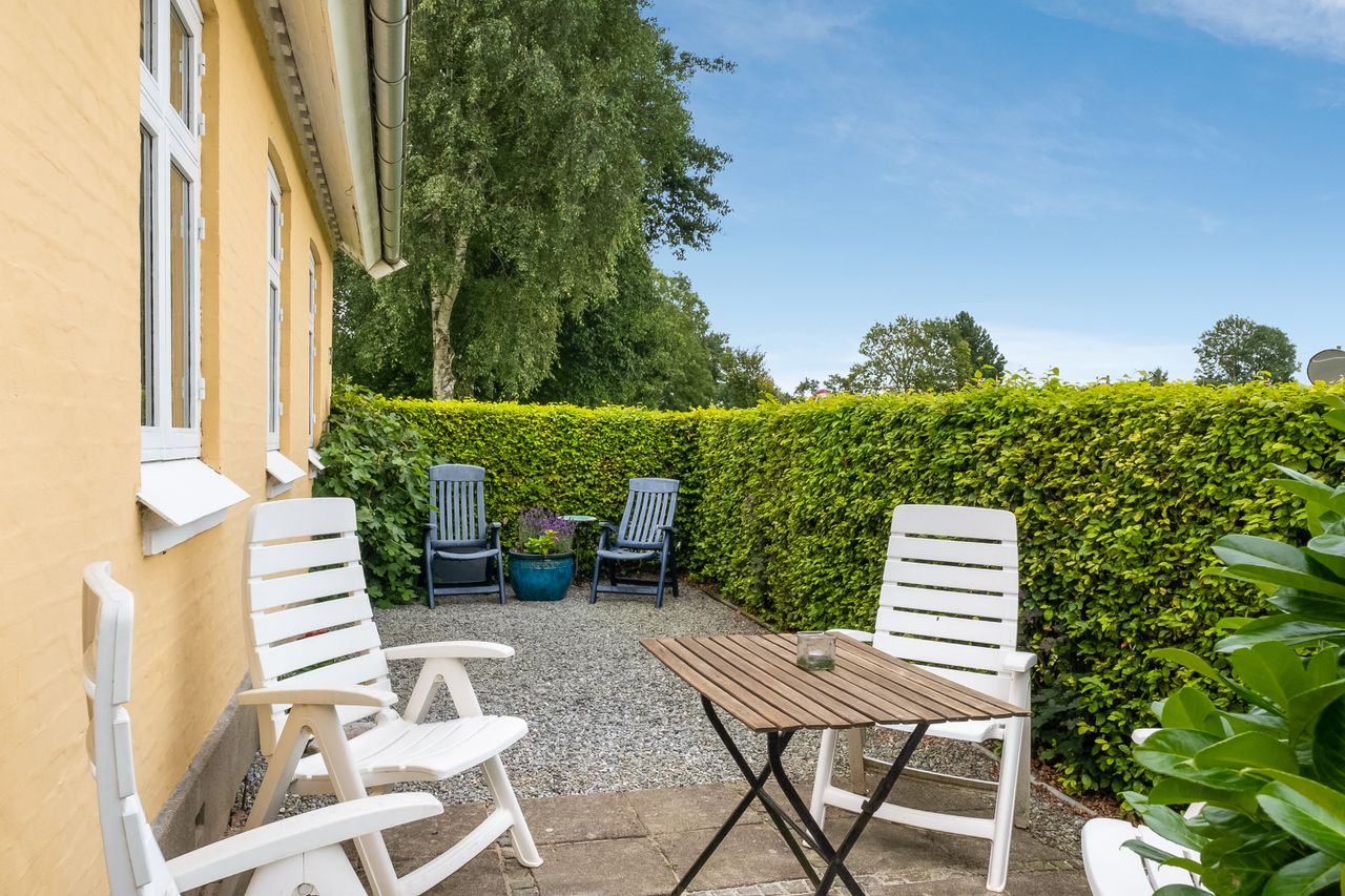 Tilbage i stueetagen kan du nu træde ud på den store træterrasse, der tilbyder et helt fantastisk fristed med masser af plads til hygge i solen med venner og familie. Herfra kan du fortsætte ned i den store have, der kan tage børnene på eventyr langs den lille bæk eller under havens frugttræer, mens de voksne kan fordybe sig i en god bog med udsigten til fynsk natur og et rigt dyreliv.