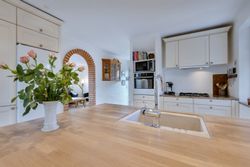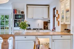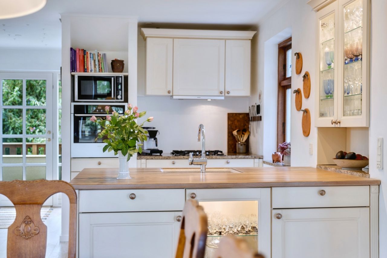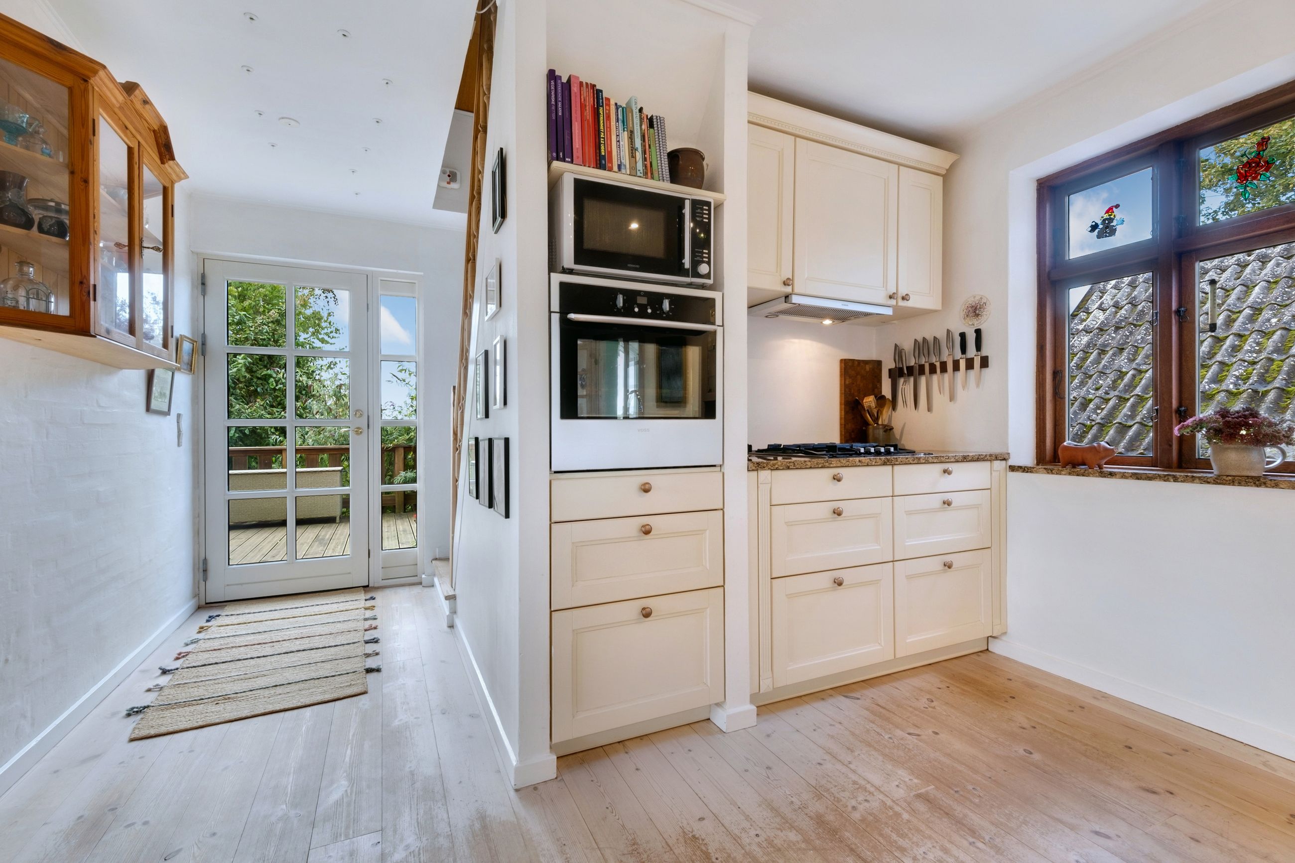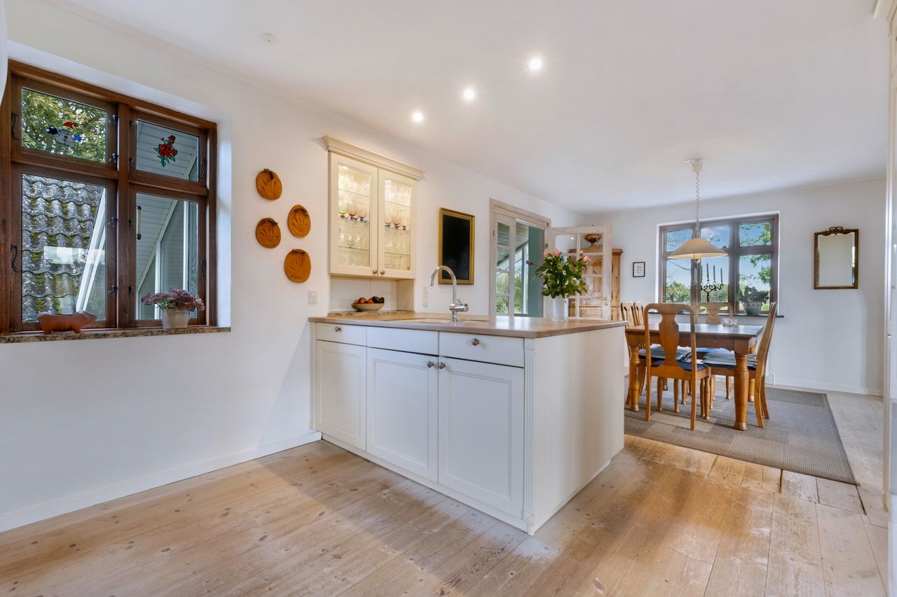 Husets leveafdeling består af et køkken-alrum, stue og toilet, samt trappeopgang til husets 1. sal. Når du træder ind i køkkenalrummet, vil du bemærke det smukke plankegulv der går igen på tværs af stueetagen. Køkkenet er indrettet i en charmerende landlig stil, der harmonerer perfekt med husets varme atmosfære. Her trives samvær og nærvær på tværs af køkken og spiseafdeling. Fra køkkenalrummet er der desuden direkte adgang til den store sydvestvendte terrasse.