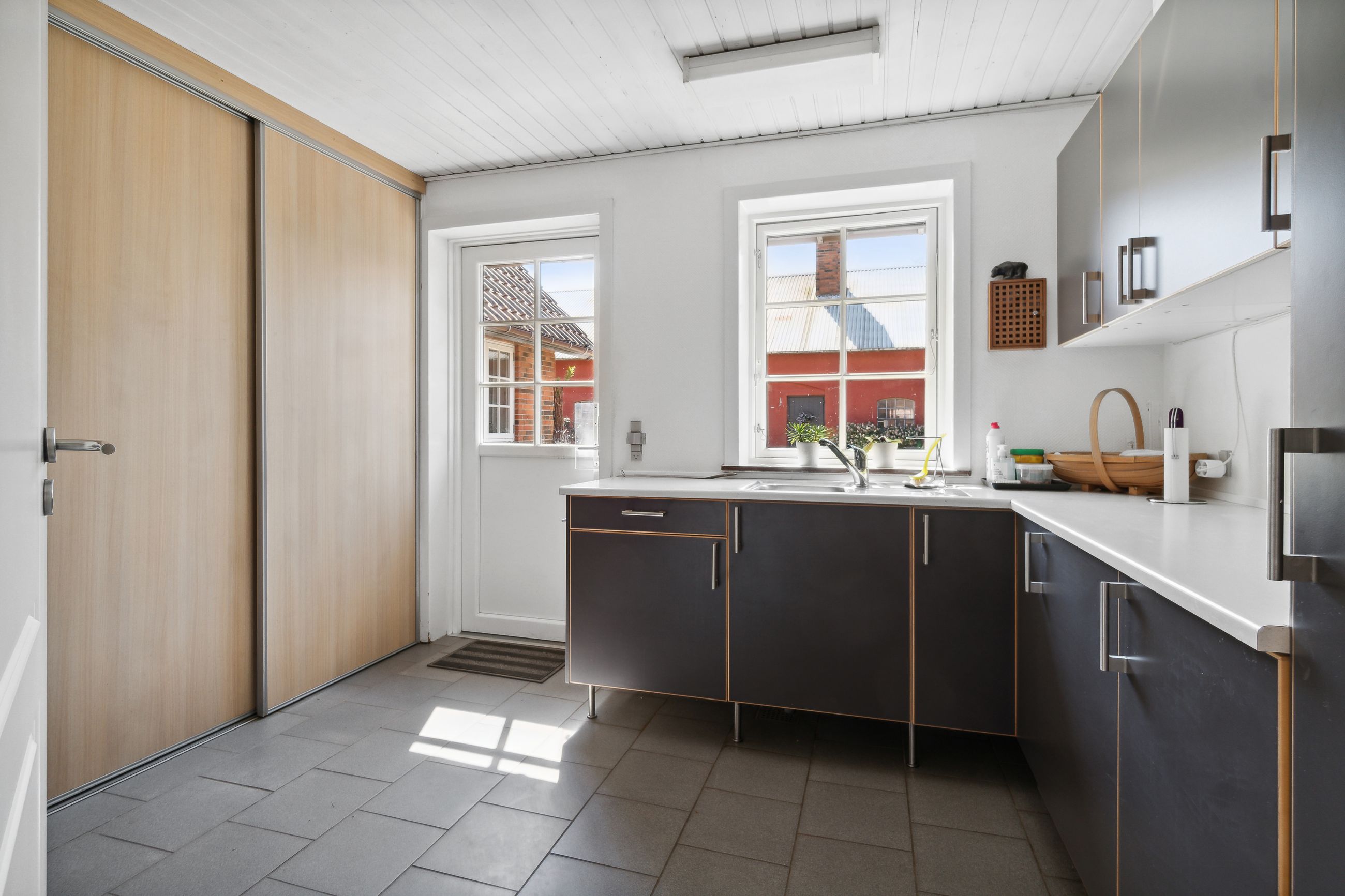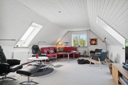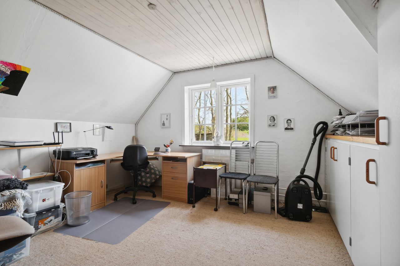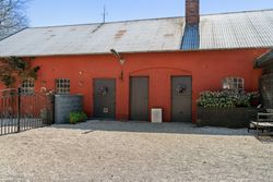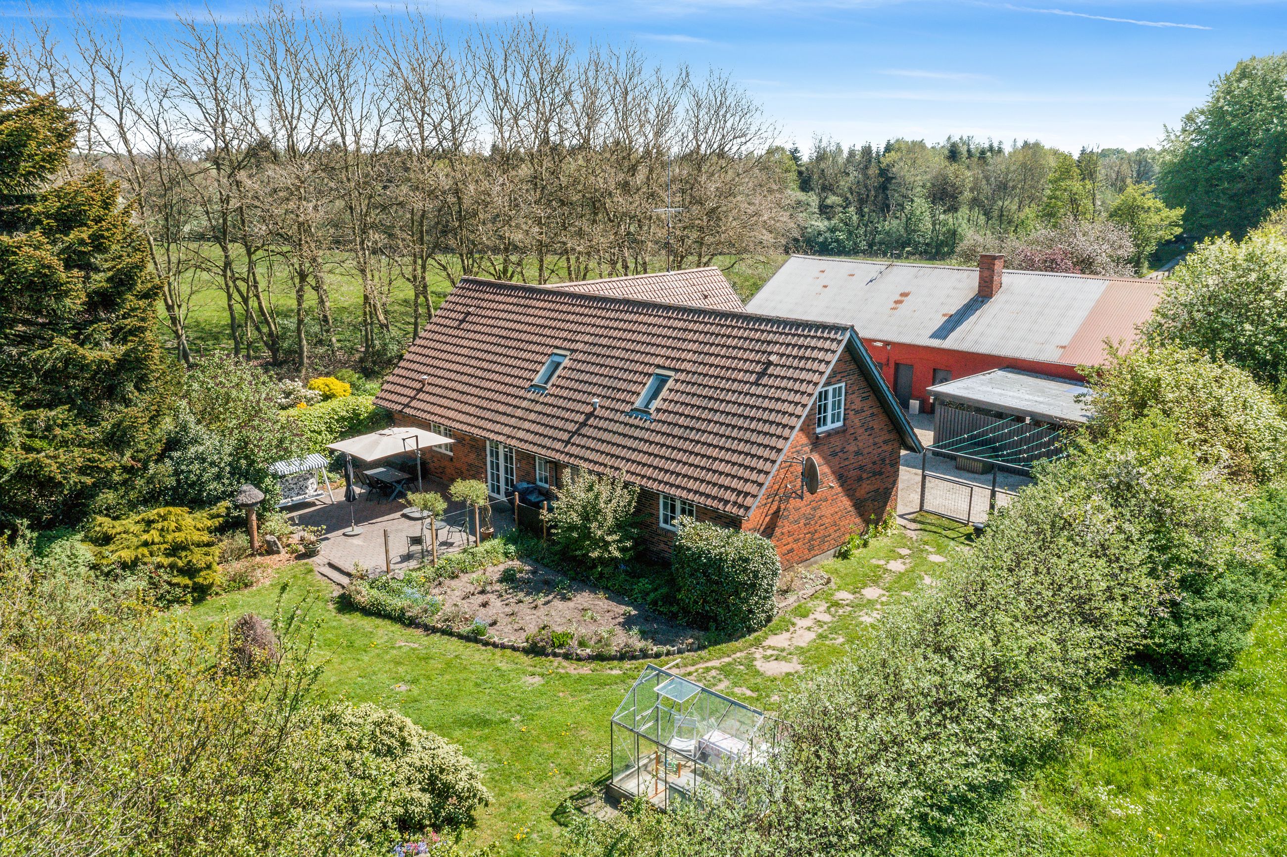 Ønsker I et liv i naturskønne omgivelser, mulighed for eget dyrehold og et hjem med masser af plads og mulighed for bl.a. B&B, større hobbyaktiviteter m.m.? Så er denne bolig, kun 20 minutters kørsel fra Odense, et oplagt valg. Når I ankommer, mødes I af et charmerende rødt murstenshus med sprossede vinduer, omgivet af marker og natur så langt øjet rækker. Her får I ikke bare et hus, men også 3,7 hektar jord med egen skov, fold og en stald til dyrene. Skoven er sågar indhegnet, så I trygt kan lade børn eller hunde løbe frit omkring. Og med Holmehave Bæk i baghaven er her utallige muligheder for ture med familien - eller en rolig stund på egen hånd. Husets entré byder på en indbygget garderobe og rødlige klinker, som passer til husets landlige stil. Entréen kan endda fungere som en separat afdeling, ideel til kontor eller gæsteværelse, da I her finder et værelse og et flot, renoveret badeværelse holdt i sorte og hvide nuancer. Fra entréen træder I ind i stuen med varme, flotte trægulve og store vinduer, som sikrer et godt lysindfald. Gennem en åbning kan I fortsætte ind i den store spisestue, og videre ud af en dobbeltdør, så I nu står på den hyggelige stenterrassen, der ligger som en solrig hule mellem træer og buske. I haven fuldendes landidyllen med gamle træer, et drivhus, en flagstang og masser af ugenerthed. Fra spisestuen kan I bevæge jer ind i det store, lyse vinkelkøkken fra Aubo, der er holdt i et tidløst design. Her er masser af opbevaringsplads og en god rummelighed så I nemt kan sætte et spisebord uden at det føles trangt. I spisestuen finder I også trappen til førstesalen, som byder på fire rum med hyggelige skråvægge; to store stuer og to værelser, som gør det til den ideelle teenage- eller forældreafdeling. I husets anden længe finder I en fordelingsgang med indgang til to store værelser og et stort badeværelse, også indrettet stilrent med masser af opbevaringsplads samt vaskemaskine og tørretumbler. Der er gulvvarme på begge badeværelser. Det sidste rum byder på et bryggers med masser af skabs- og bordplads, en håndvask og et stort indbygget skab med skydelåger. Fra bryggerset er der udgang til gårdhaven, hvor I finder en imponerende staldbygning med solceller på taget, som holder energiforbruget nede. I bygningen, som er 173 m2, er der et stort værksted og staldbåse, hvor I har mulighed for at opstalde dyr efter ønske. På ejendommen findes endvidere et 97 m2 stort maskinhus, samt hønsehus med hønsegård. I denne bolig er omgivet af natur - og alligevel er I ikke langt fra gode skoler, børneinstitutioner, foreningsliv og indkøbsmuligheder i Tommerup, der ligger kun få minutters kørsel fra huset.