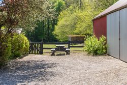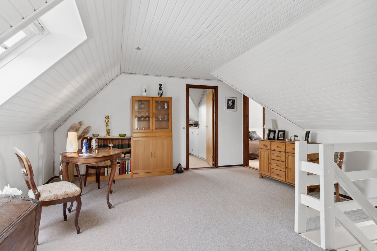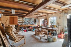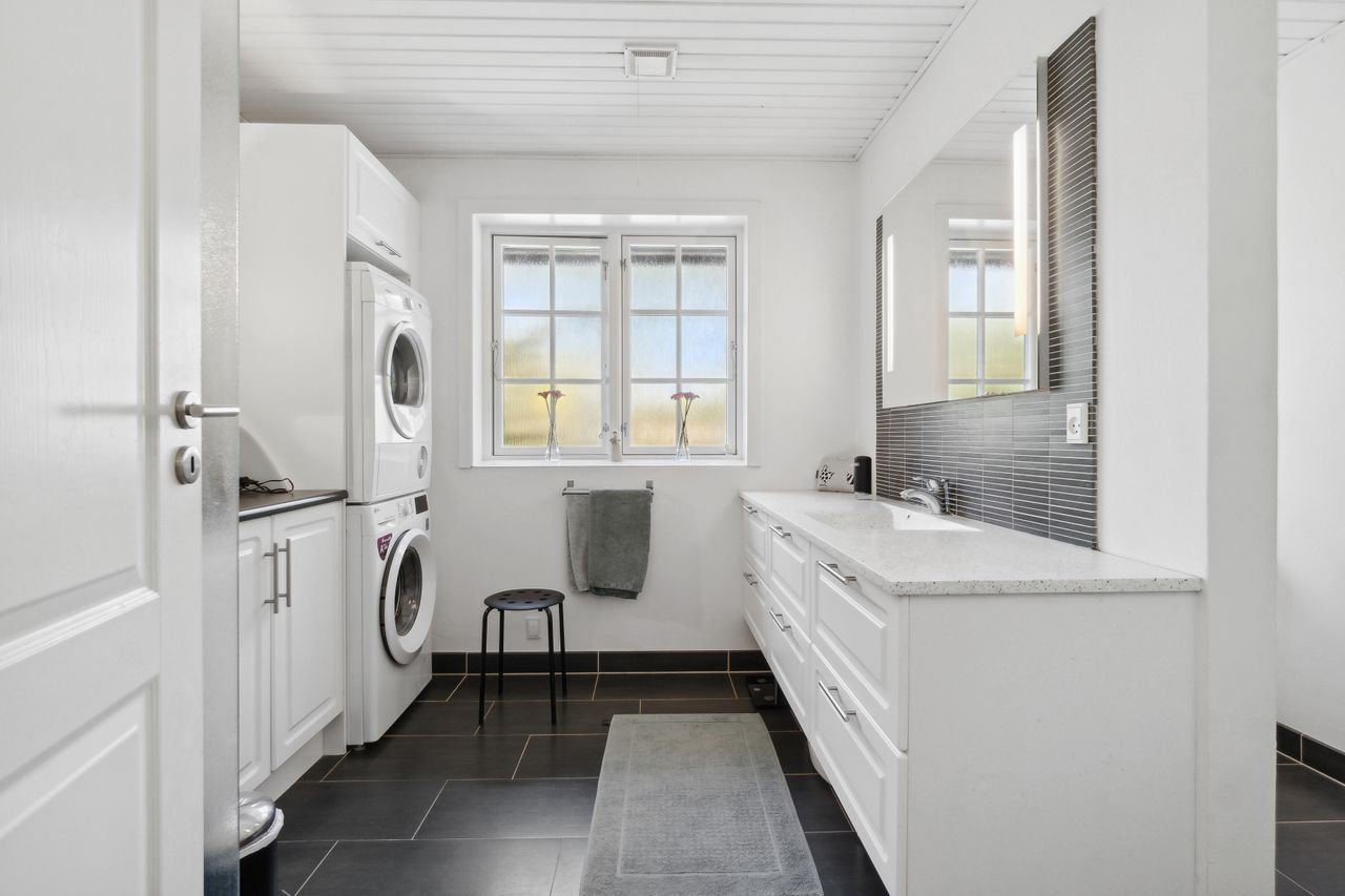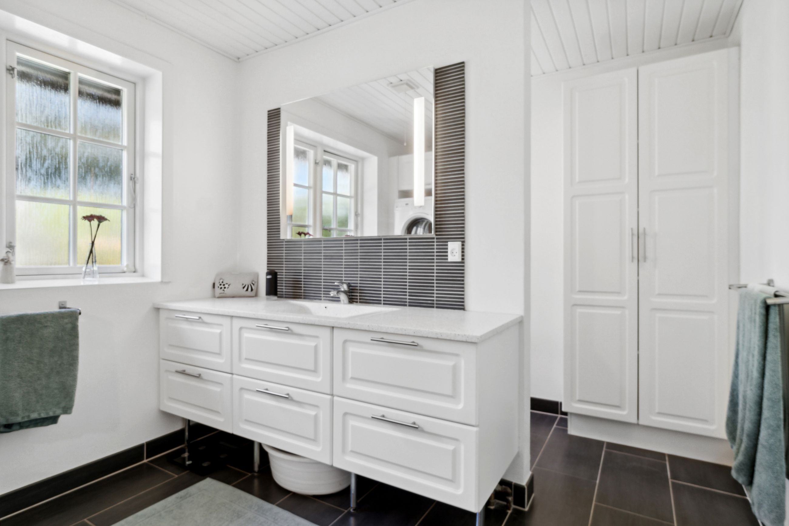 Ønsker I et liv i naturskønne omgivelser, mulighed for eget dyrehold og et hjem med masser af plads og mulighed for bl.a. B&B, større hobbyaktiviteter m.m.? Så er denne bolig, kun 20 minutters kørsel fra Odense, et oplagt valg. Når I ankommer, mødes I af et charmerende rødt murstenshus med sprossede vinduer, omgivet af marker og natur så langt øjet rækker. Her får I ikke bare et hus, men også 3,7 hektar jord med egen skov, fold og en stald til dyrene. Skoven er sågar indhegnet, så I trygt kan lade børn eller hunde løbe frit omkring. Og med Holmehave Bæk i baghaven er her utallige muligheder for ture med familien - eller en rolig stund på egen hånd. Husets entré byder på en indbygget garderobe og rødlige klinker, som passer til husets landlige stil. Entréen kan endda fungere som en separat afdeling, ideel til kontor eller gæsteværelse, da I her finder et værelse og et flot, renoveret badeværelse holdt i sorte og hvide nuancer. Fra entréen træder I ind i stuen med varme, flotte trægulve og store vinduer, som sikrer et godt lysindfald. Gennem en åbning kan I fortsætte ind i den store spisestue, og videre ud af en dobbeltdør, så I nu står på den hyggelige stenterrassen, der ligger som en solrig hule mellem træer og buske. I haven fuldendes landidyllen med gamle træer, et drivhus, en flagstang og masser af ugenerthed. Fra spisestuen kan I bevæge jer ind i det store, lyse vinkelkøkken fra Aubo, der er holdt i et tidløst design. Her er masser af opbevaringsplads og en god rummelighed så I nemt kan sætte et spisebord uden at det føles trangt. I spisestuen finder I også trappen til førstesalen, som byder på fire rum med hyggelige skråvægge; to store stuer og to værelser, som gør det til den ideelle teenage- eller forældreafdeling. I husets anden længe finder I en fordelingsgang med indgang til to store værelser og et stort badeværelse, også indrettet stilrent med masser af opbevaringsplads samt vaskemaskine og tørretumbler. Der er gulvvarme på begge badeværelser. Det sidste rum byder på et bryggers med masser af skabs- og bordplads, en håndvask og et stort indbygget skab med skydelåger. Fra bryggerset er der udgang til gårdhaven, hvor I finder en imponerende staldbygning med solceller på taget, som holder energiforbruget nede. I bygningen, som er 173 m2, er der et stort værksted og staldbåse, hvor I har mulighed for at opstalde dyr efter ønske. På ejendommen findes endvidere et 97 m2 stort maskinhus, samt hønsehus med hønsegård. I denne bolig er omgivet af natur - og alligevel er I ikke langt fra gode skoler, børneinstitutioner, foreningsliv og indkøbsmuligheder i Tommerup, der ligger kun få minutters kørsel fra huset.