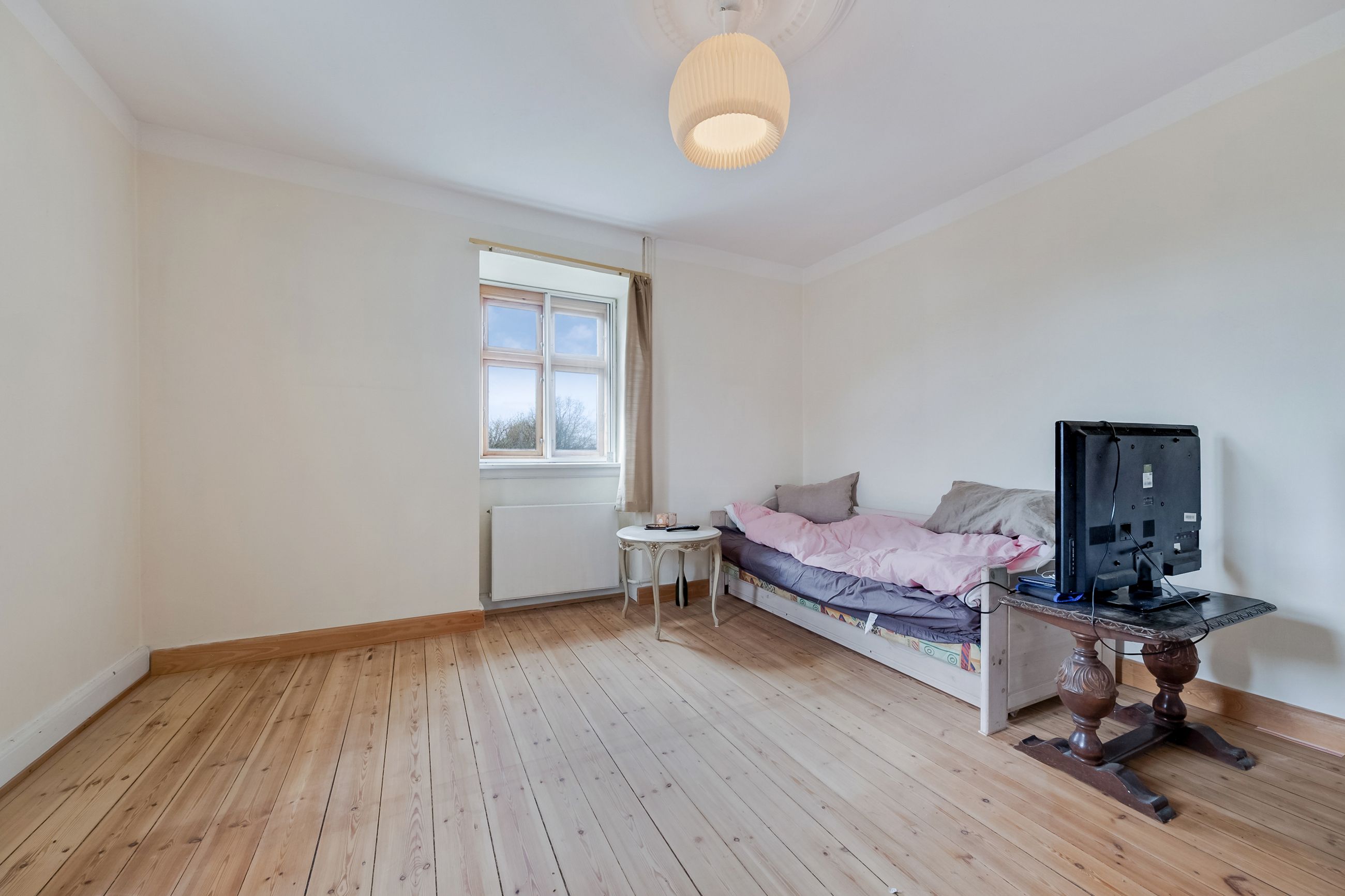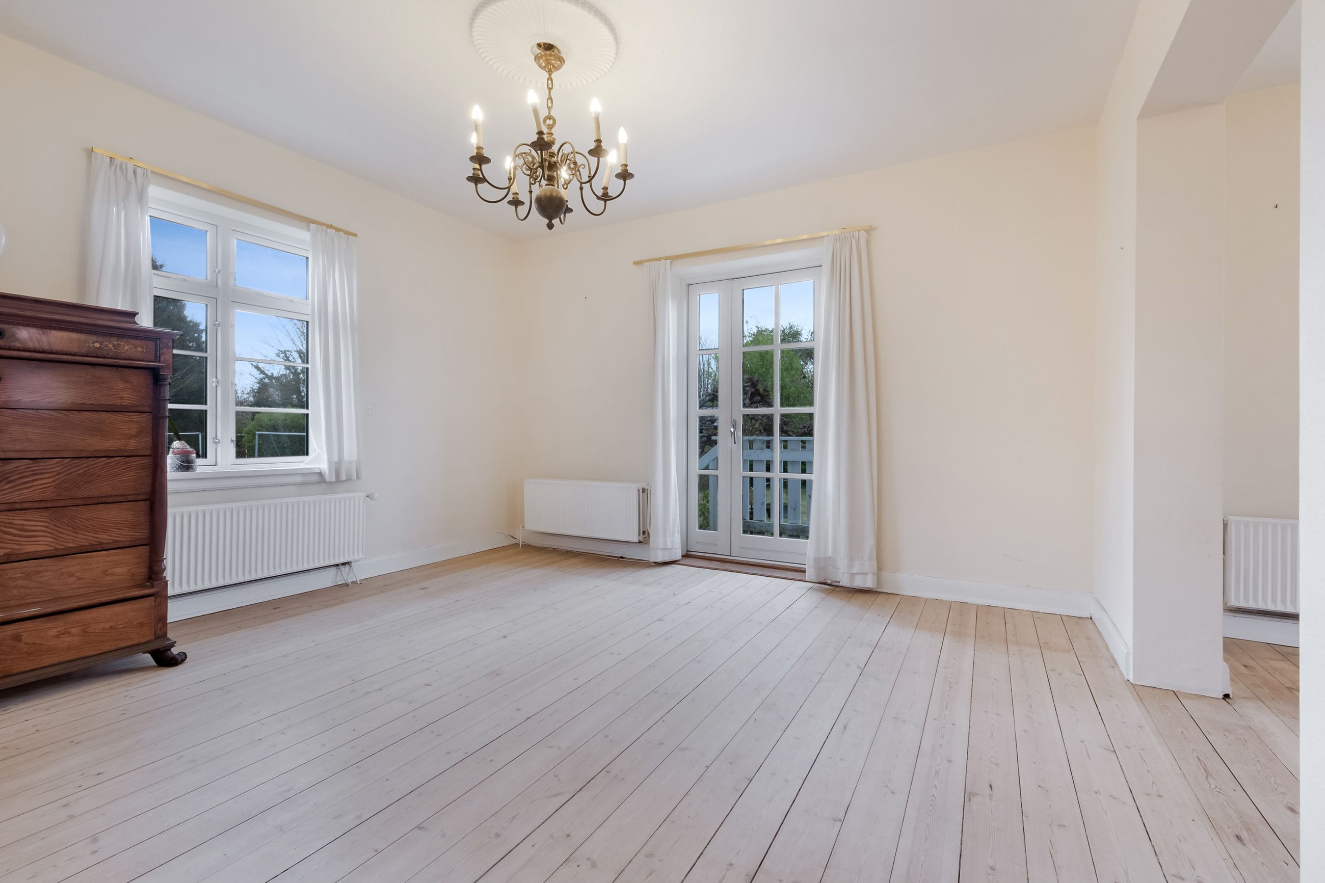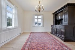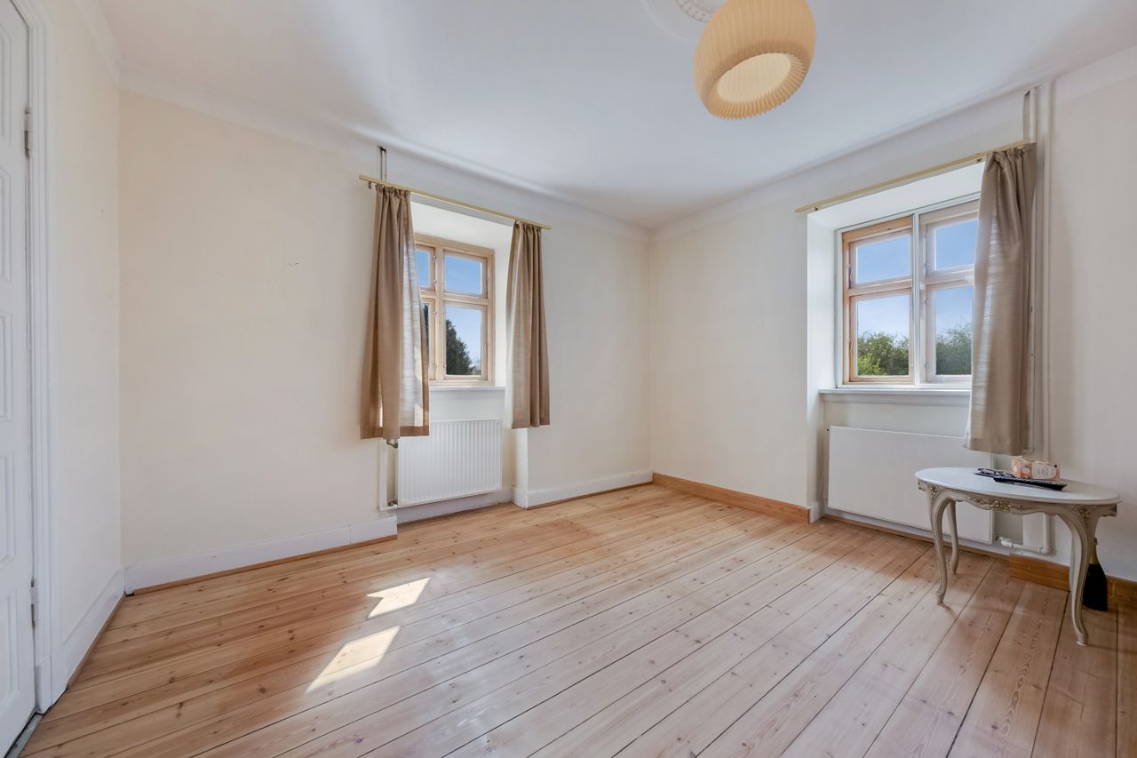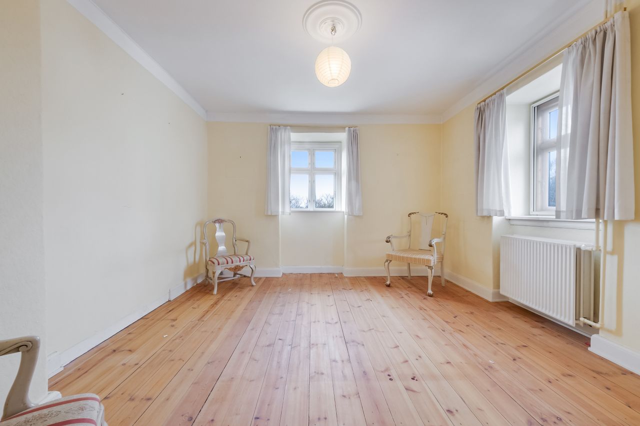 På første sal finder du tre store værelser med smukke gulve og den dejligste udsigt over området. Her er desuden endnu et gæstetoilet og et rummeligt badeværelse med badekar.