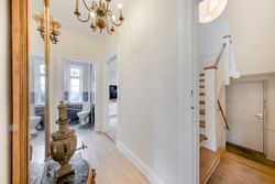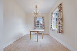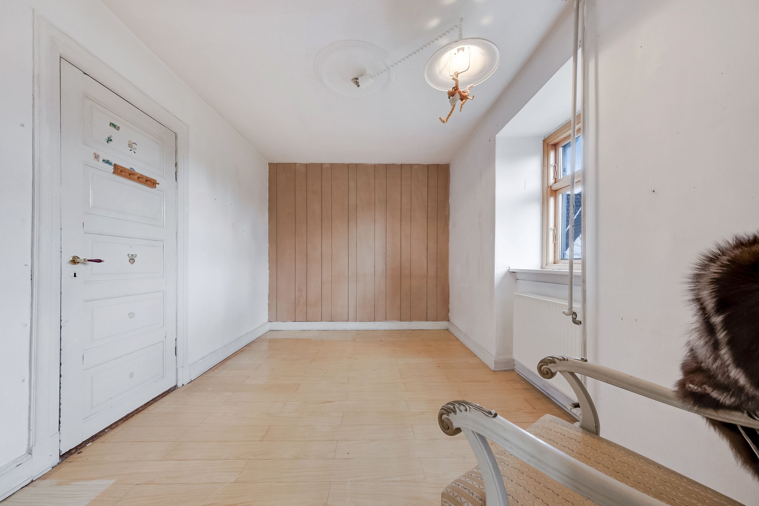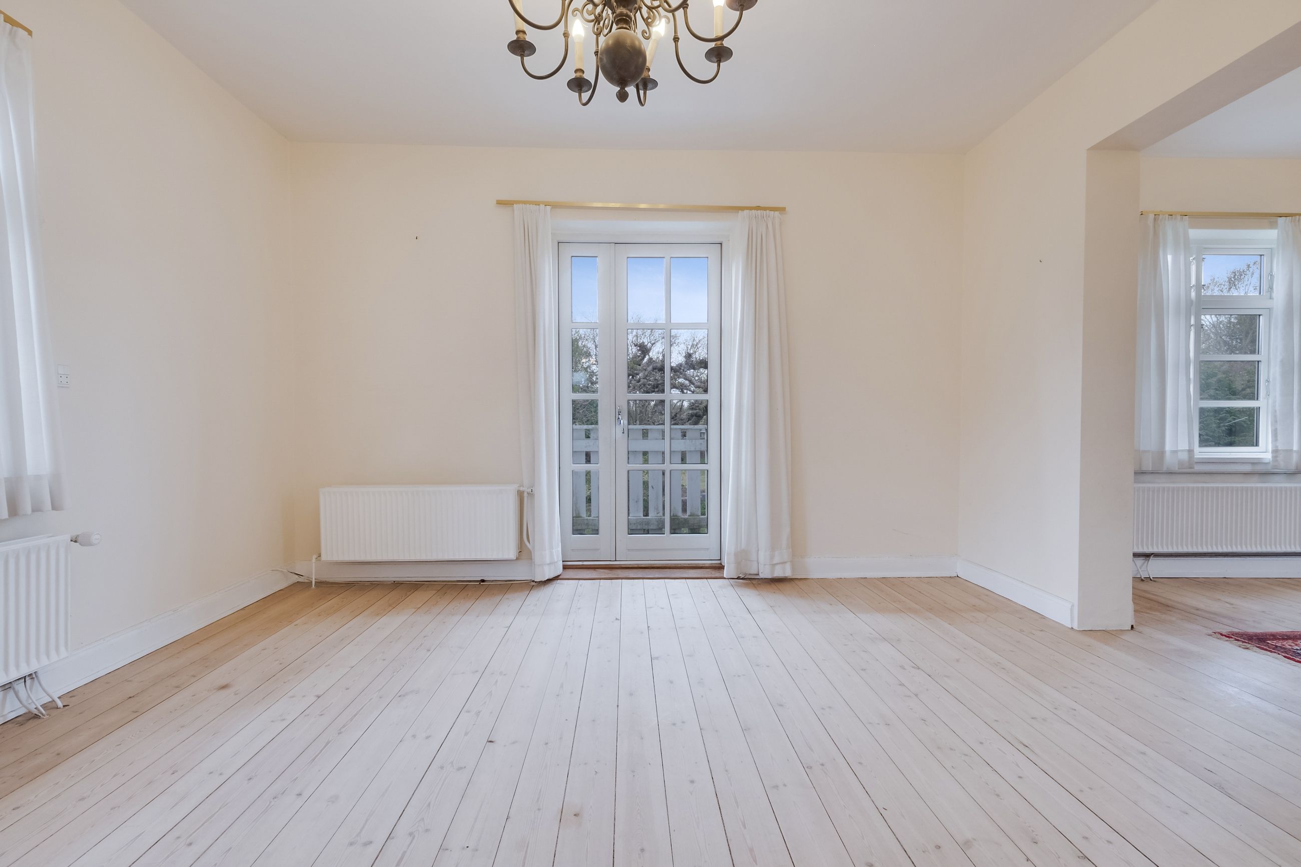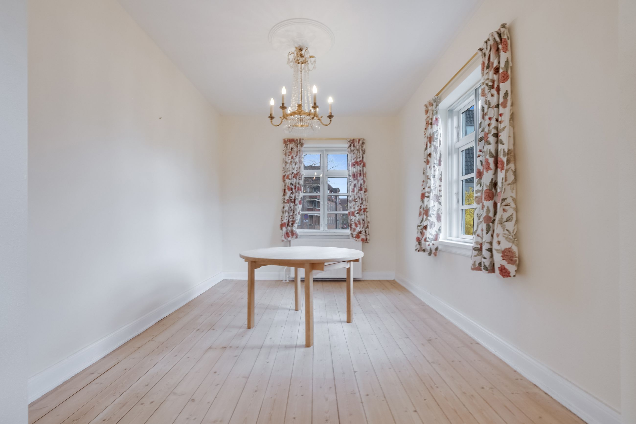 På første sal finder du tre store værelser med smukke gulve og den dejligste udsigt over området. Her er desuden endnu et gæstetoilet og et rummeligt badeværelse med badekar.