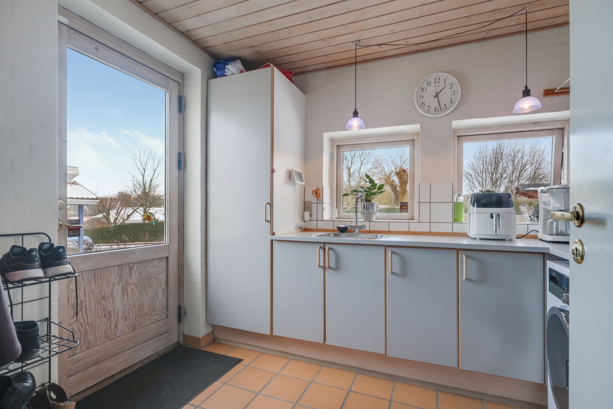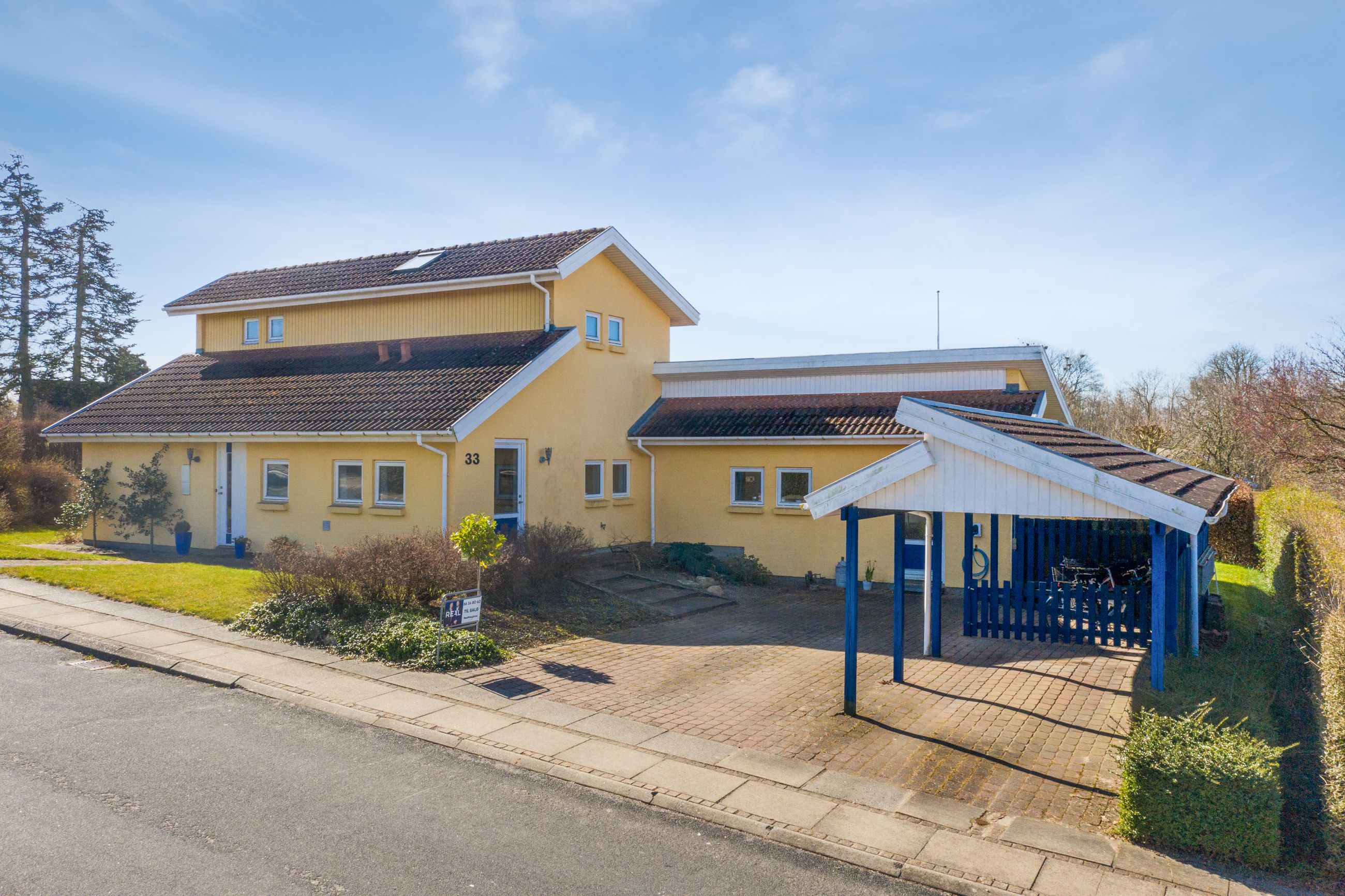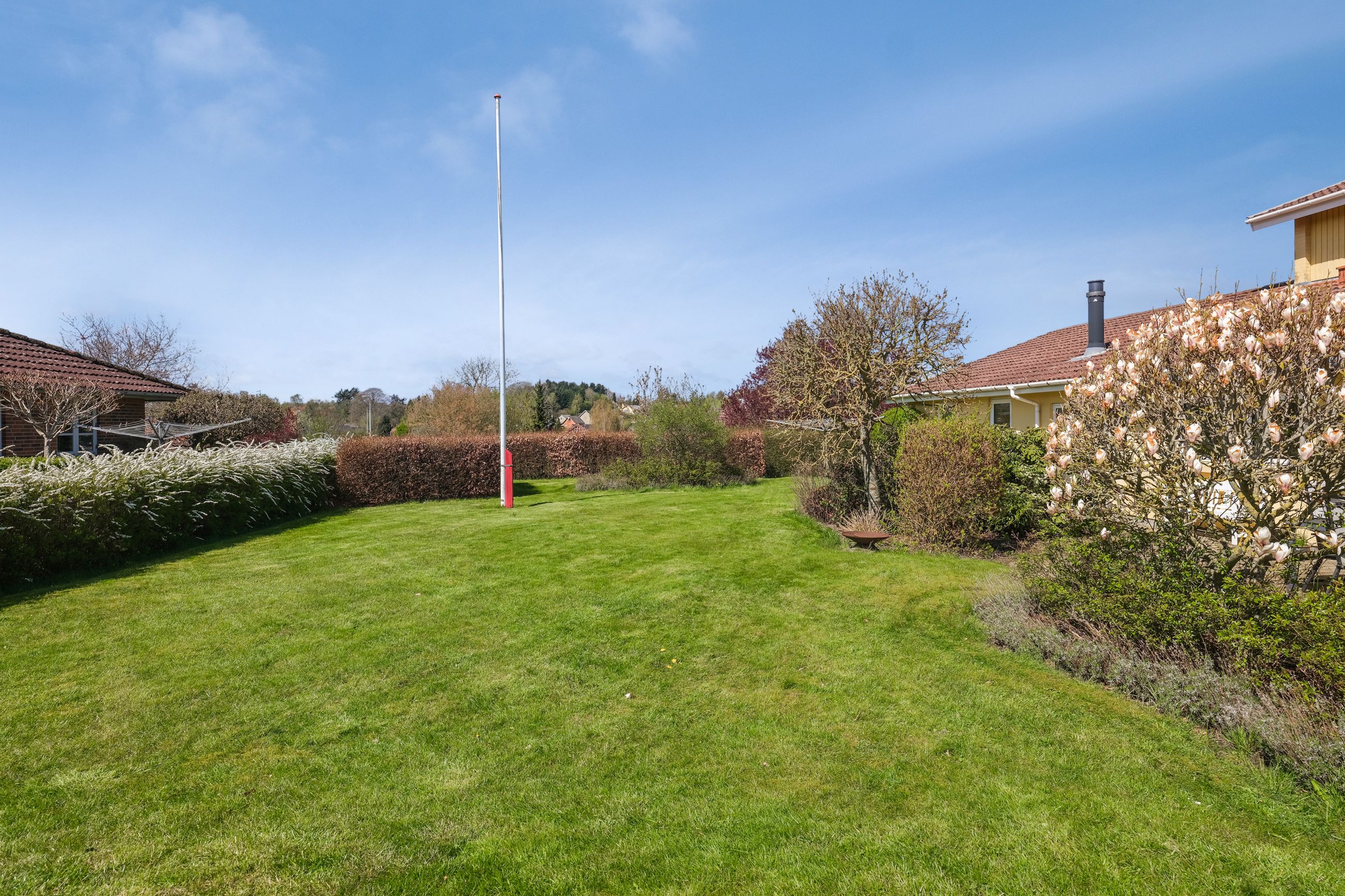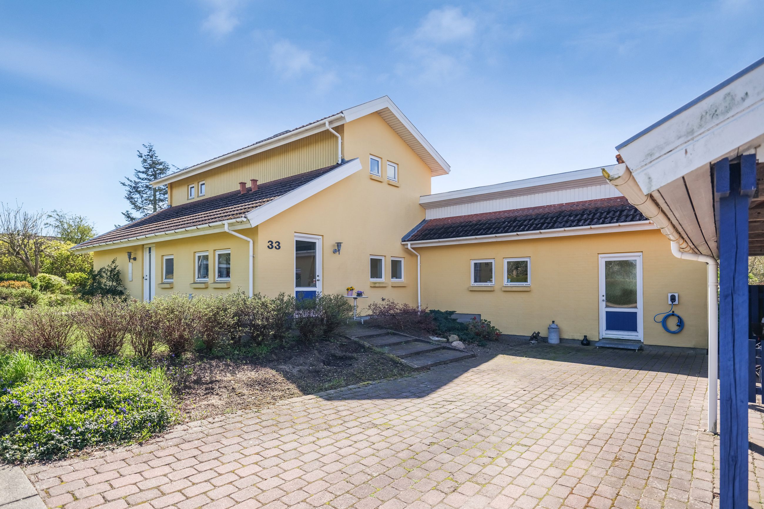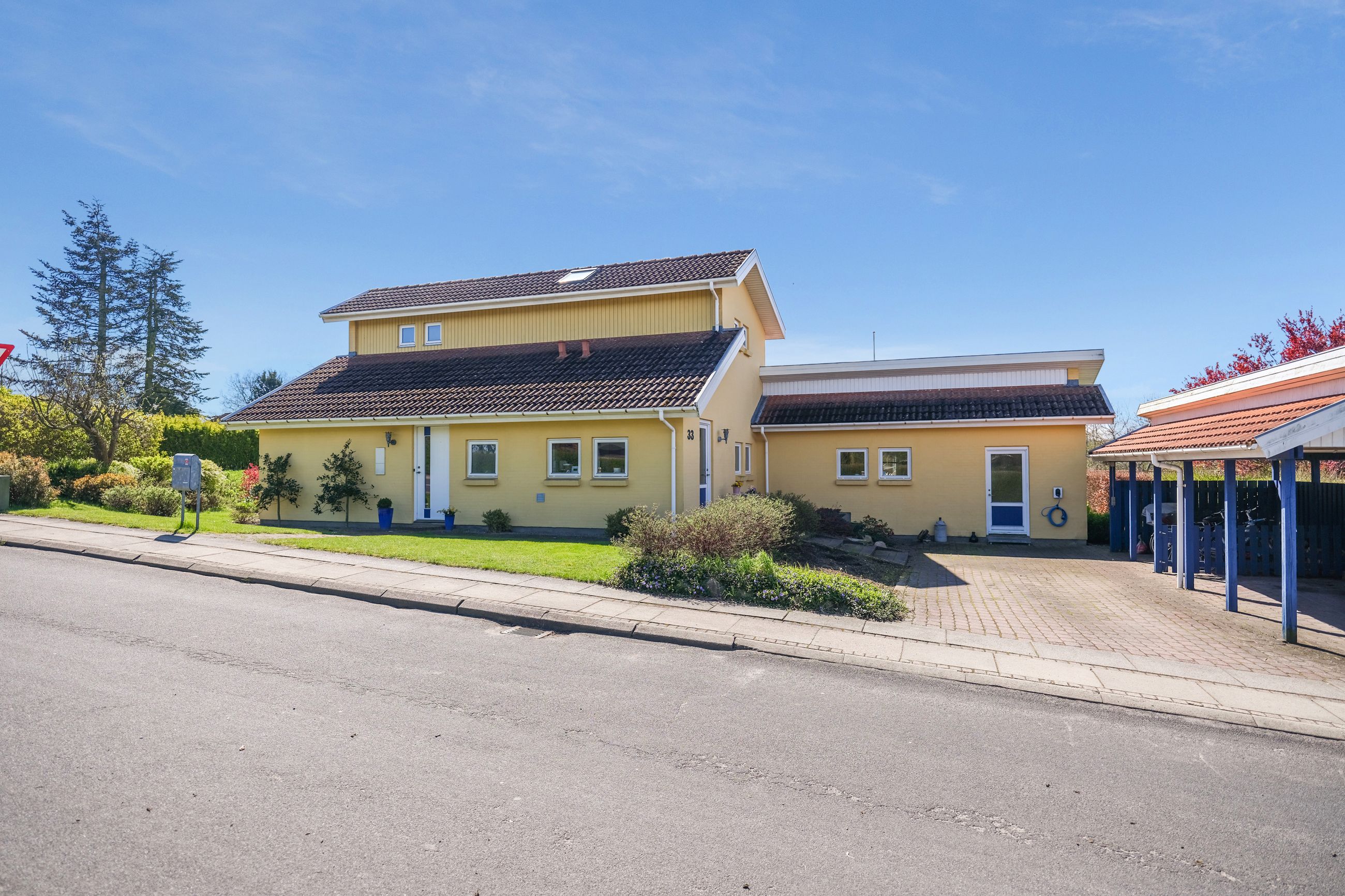 Huset er placeret på en rolig villavej, hvor det gode naboskab er i højsædet og det er helt naturligt, at man f.eks. flager på hinandens mærkedage og kan hjælpe hinanden i en travl hverdag.