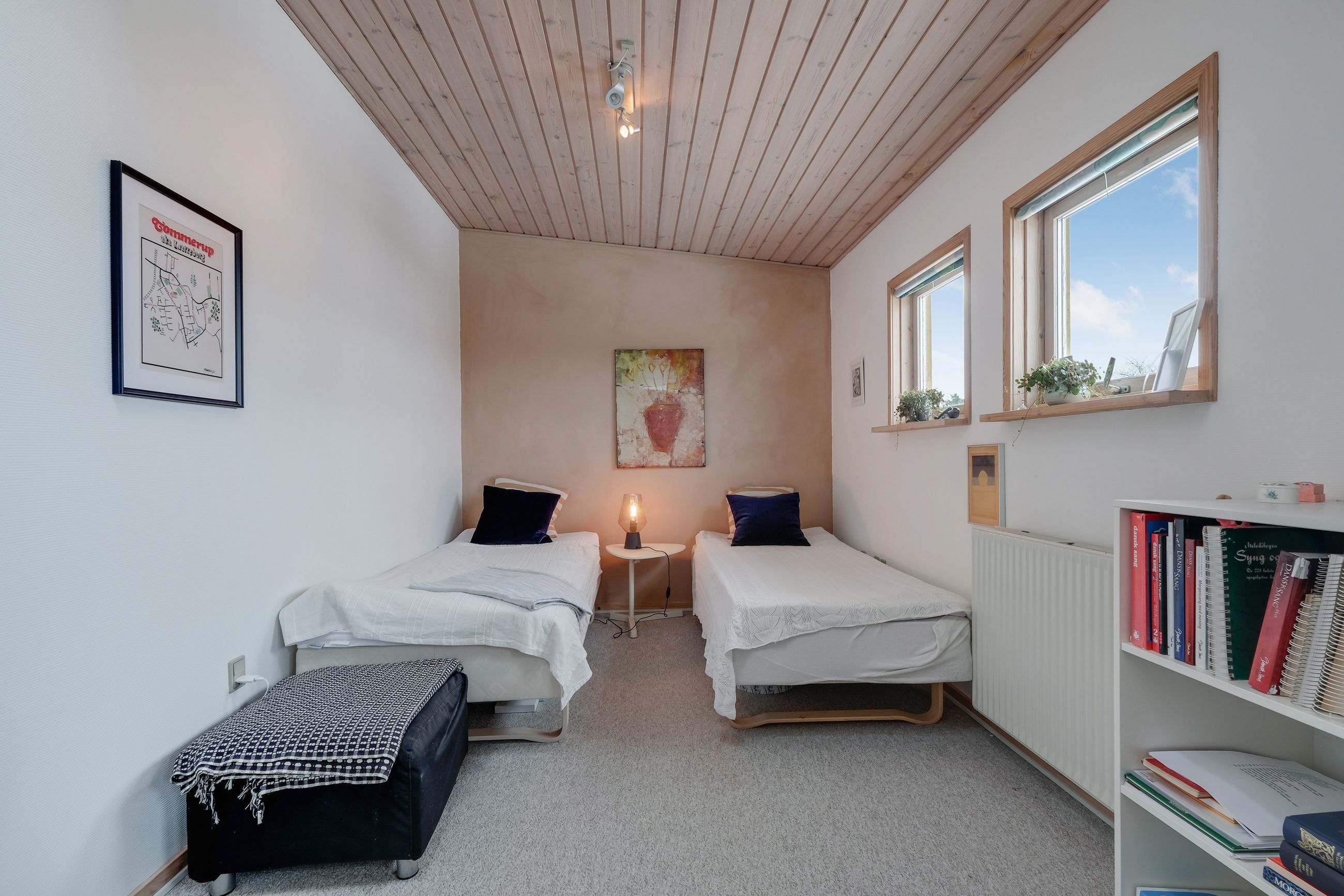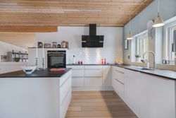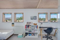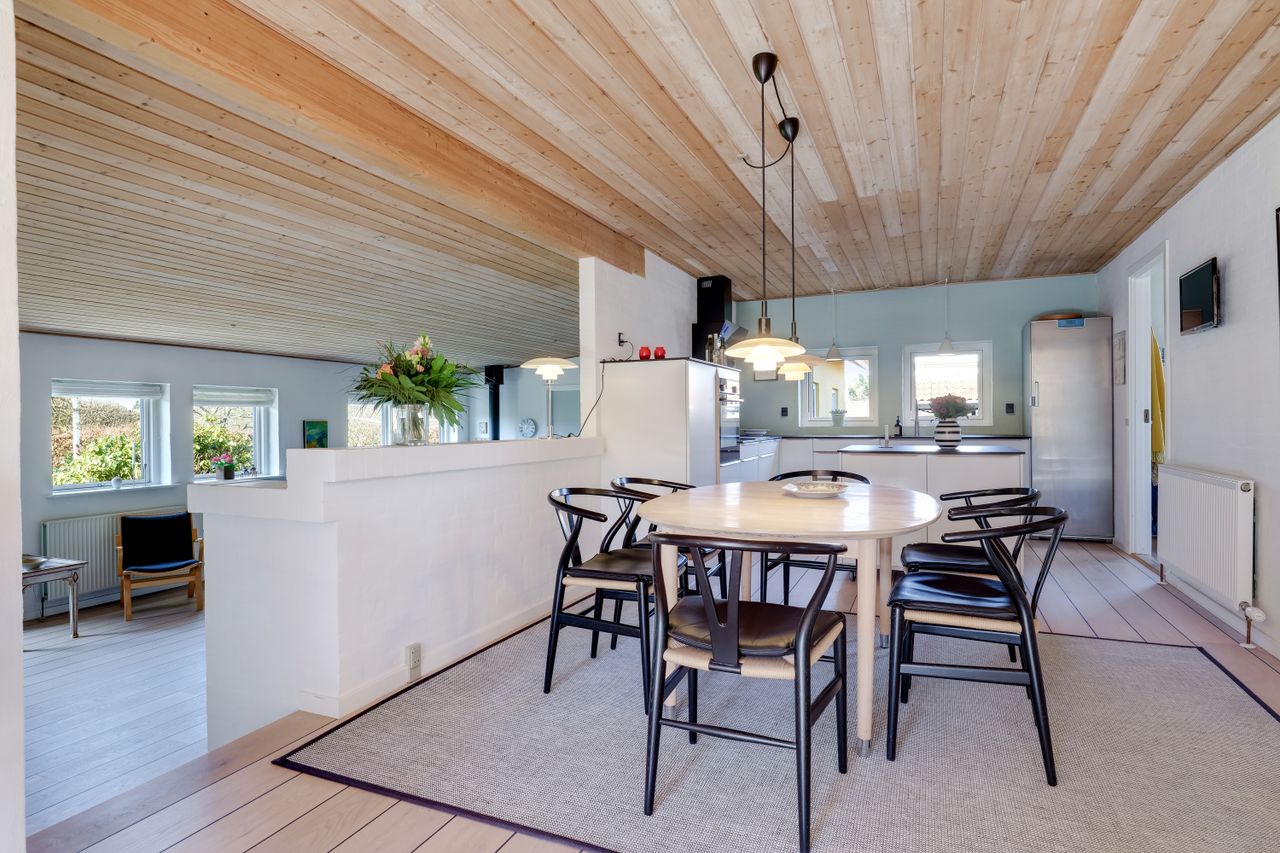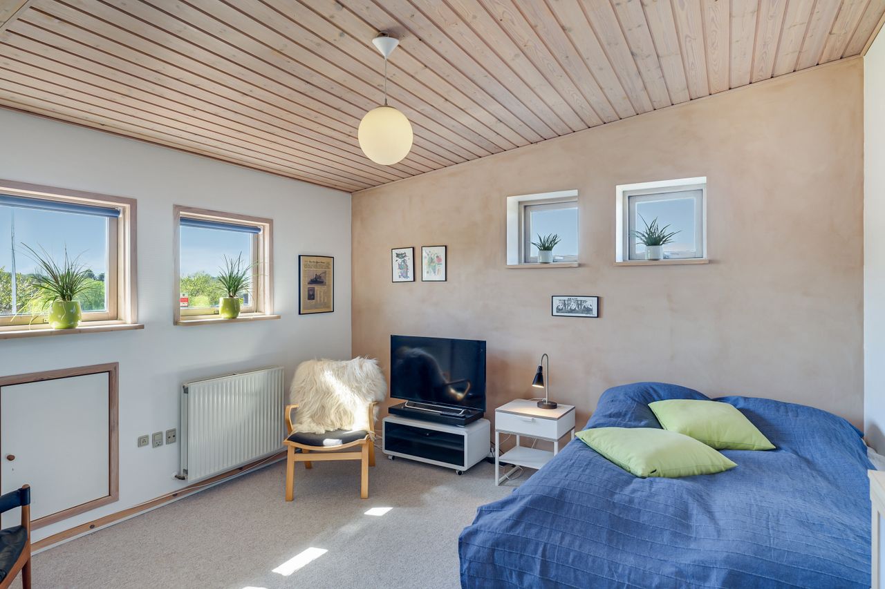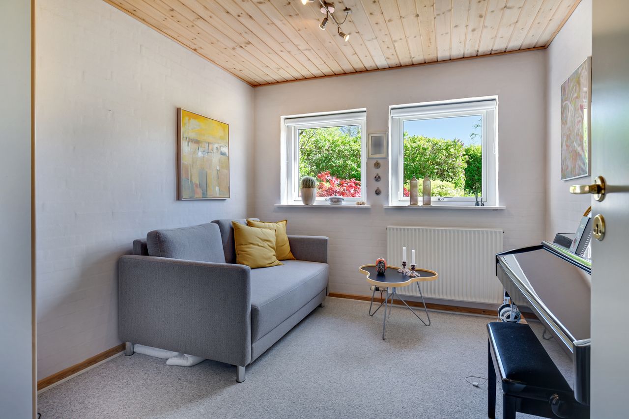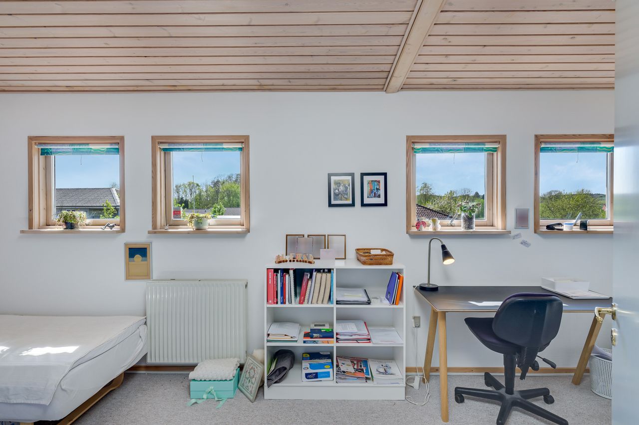 Huset er indrettet med hele fire værelser, to badeværelser, et forældreafsnit og et lyst, åbent opholdsrum, hvor køkken-alrum og stue samler familien på tværs af aktiviteter. Med brændeovn, køkken-ø, god plads til både leg, lektier og hyggestunder samt flere terrasser og en stor have, er rammerne sat for et trygt familieliv både ude og inde.
