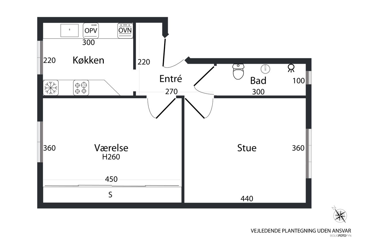 Lejligheden består af en entré, der åbner op til køkken, badeværelse, stue og soveværelse. Derudover medfølger der brugsret til et godt kælderrum med plads til opbevaring og adgang til fællesfaciliteter som cykelkælder, samt vaskerum, hvor bygningens beboere har vaske- og tørrerum inklusiv egen personlig vaskemaskine.