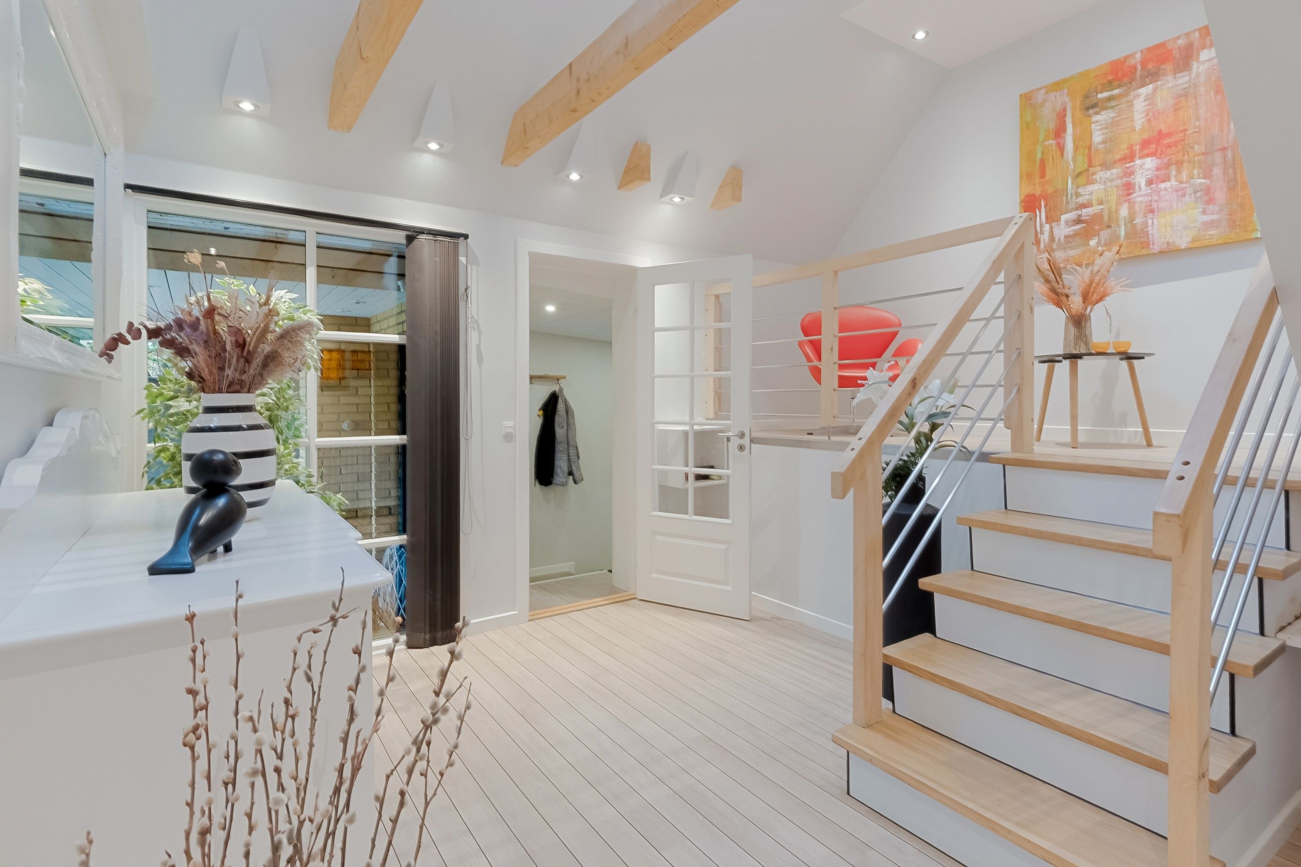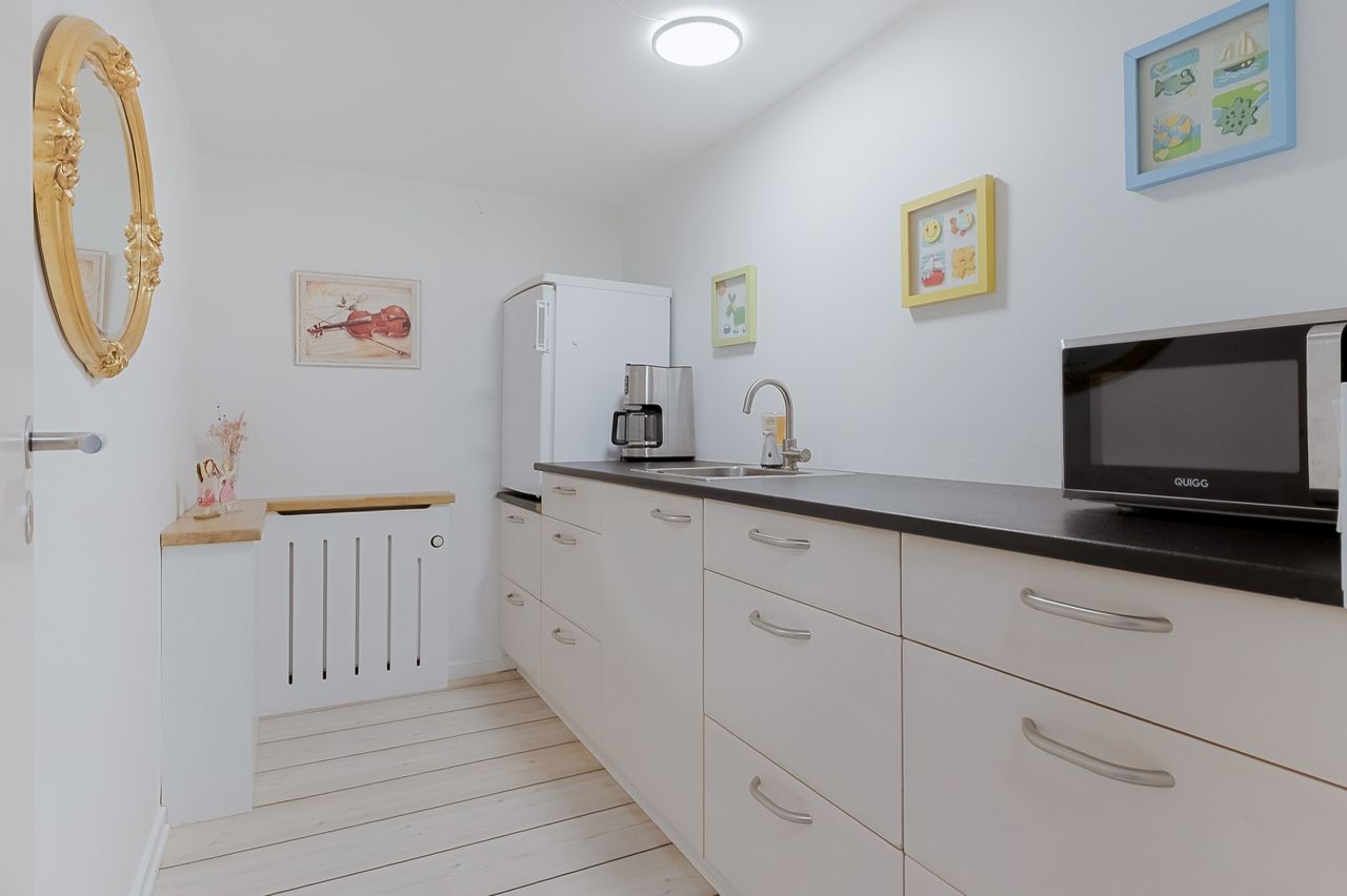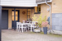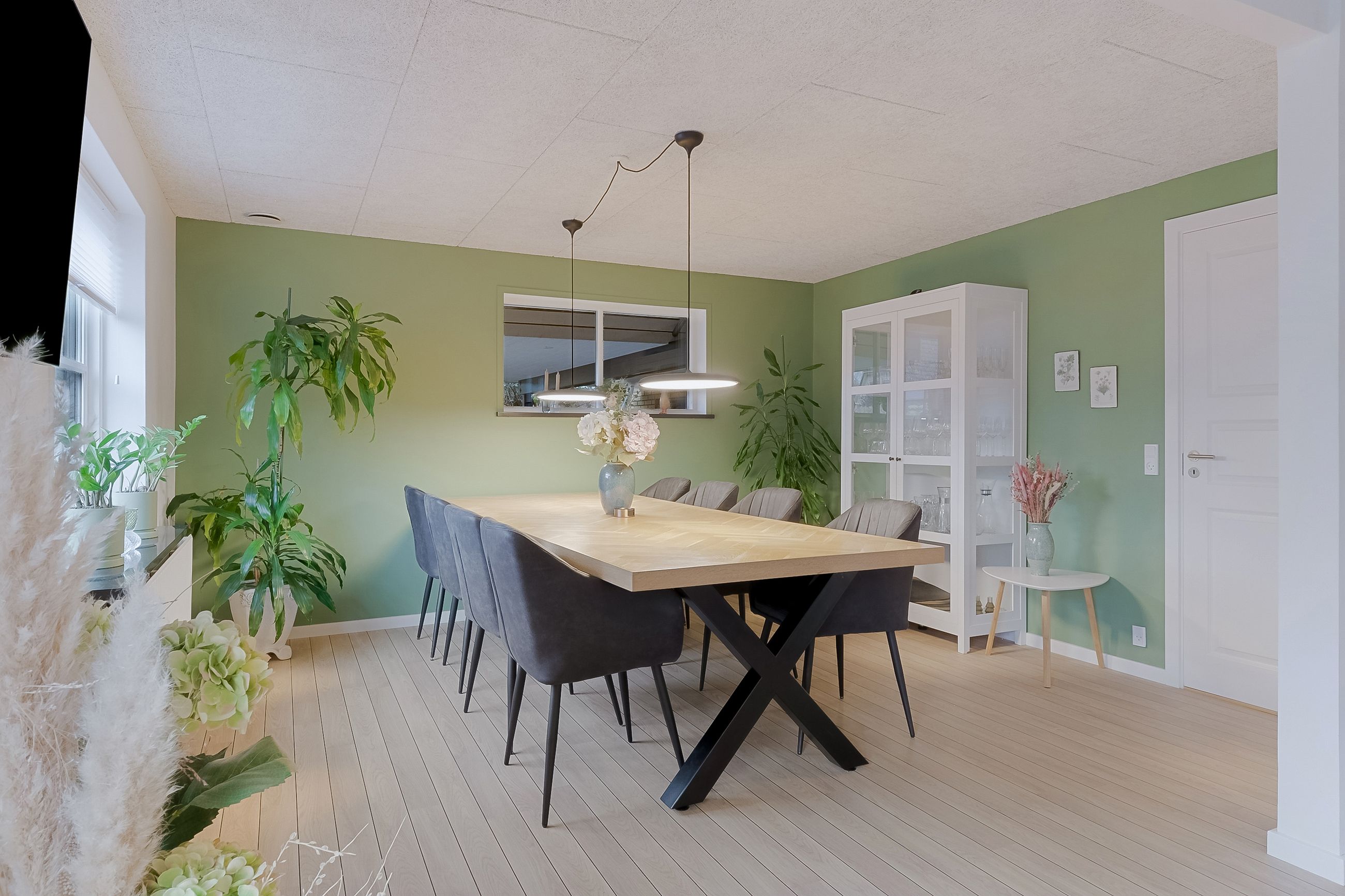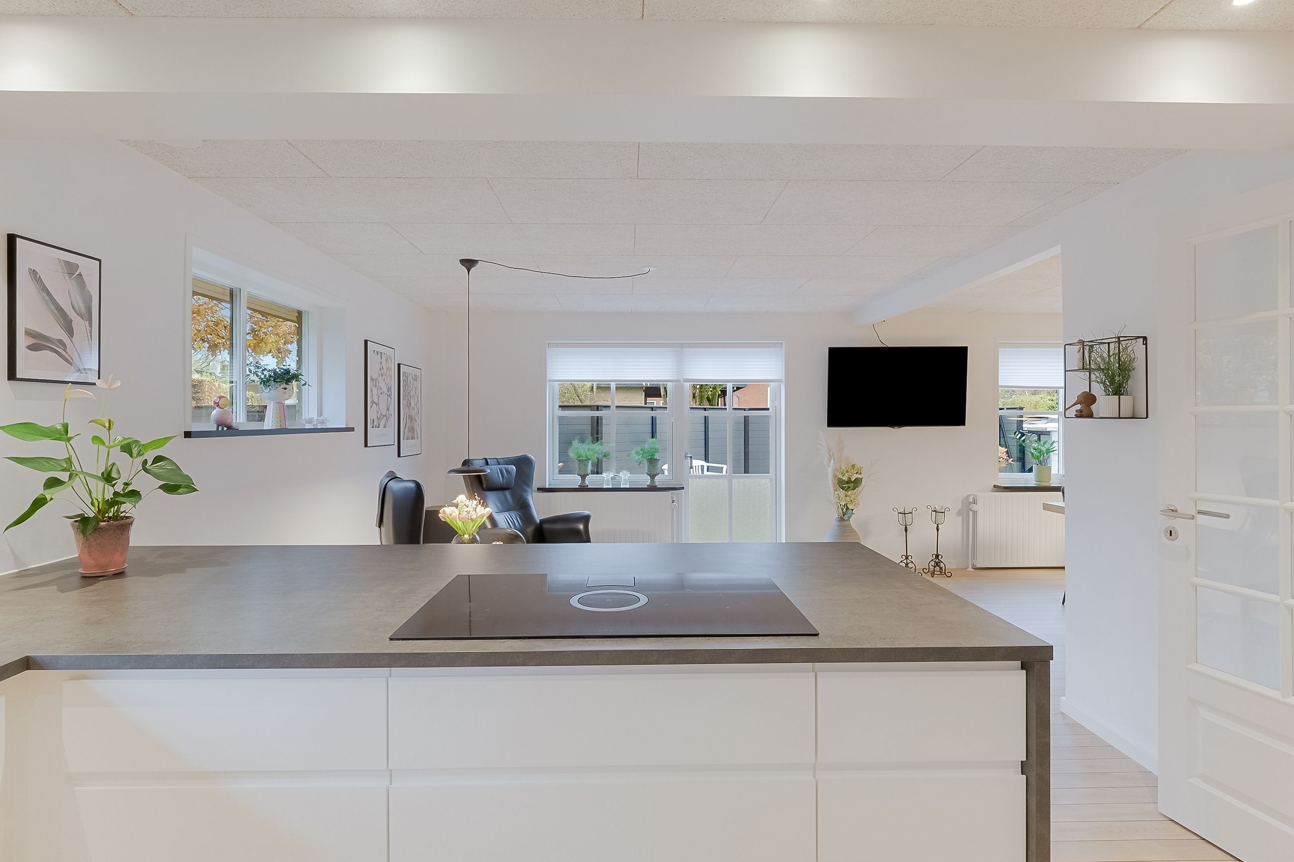 Derudover finder du et stort disponibelt rum med egen udgang til haven – oplagt som gildesal eller aktivitetsrum med poolbord og sofahjørne.