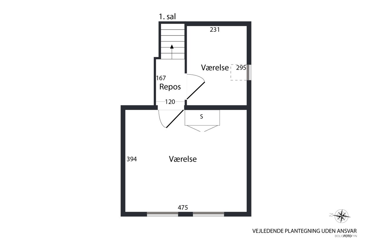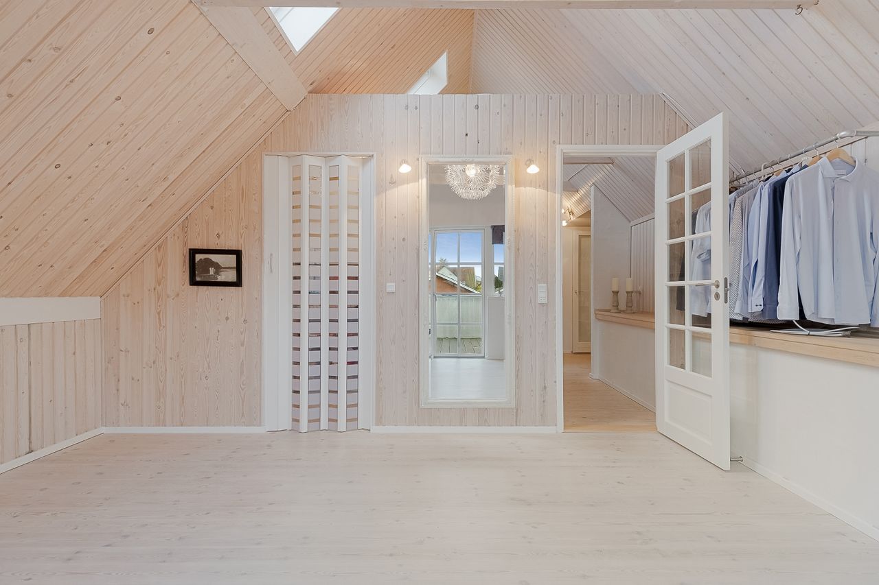 Førstesalen er lys og lækker med loft ført til kip. Her finder du i den ene afdeling to gode disponible rum i boligstandard – det ene med walk-in. Den anden afdeling på førstesalen byder på to værelser, som i dag bruges som legeværelse og gæsteværelse.