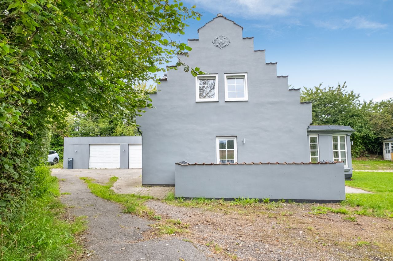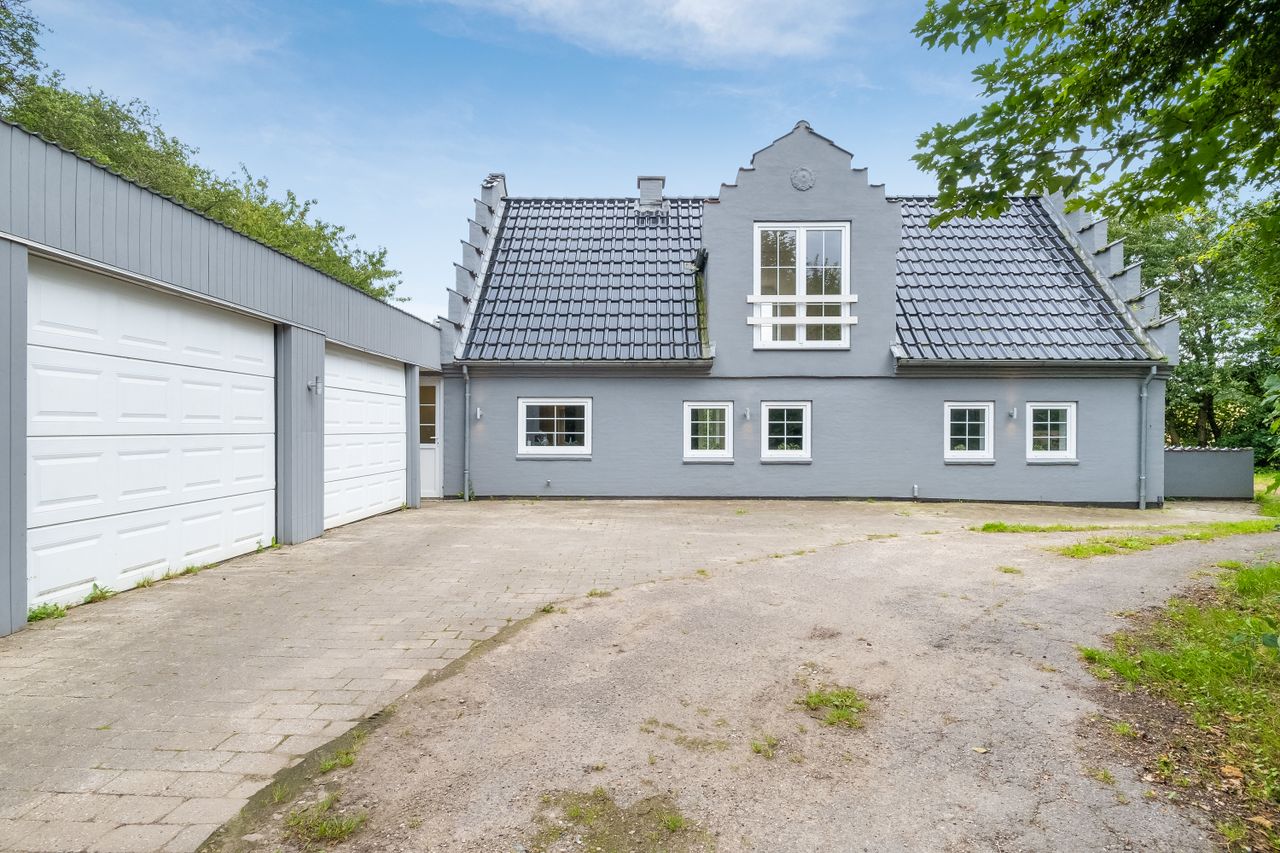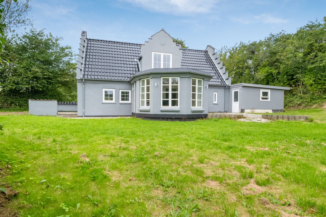 Den grå villa står smukt med charmerende gavltakker. Huset er velholdt og lige til at flytte ind i.