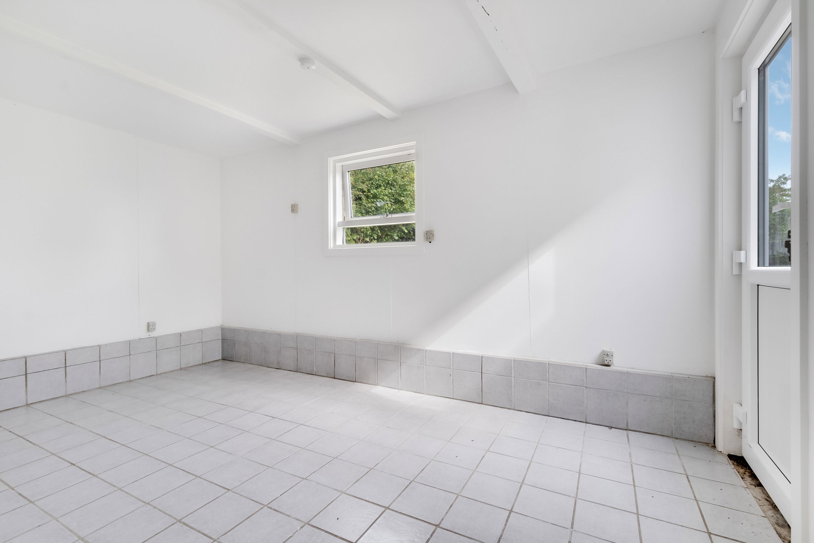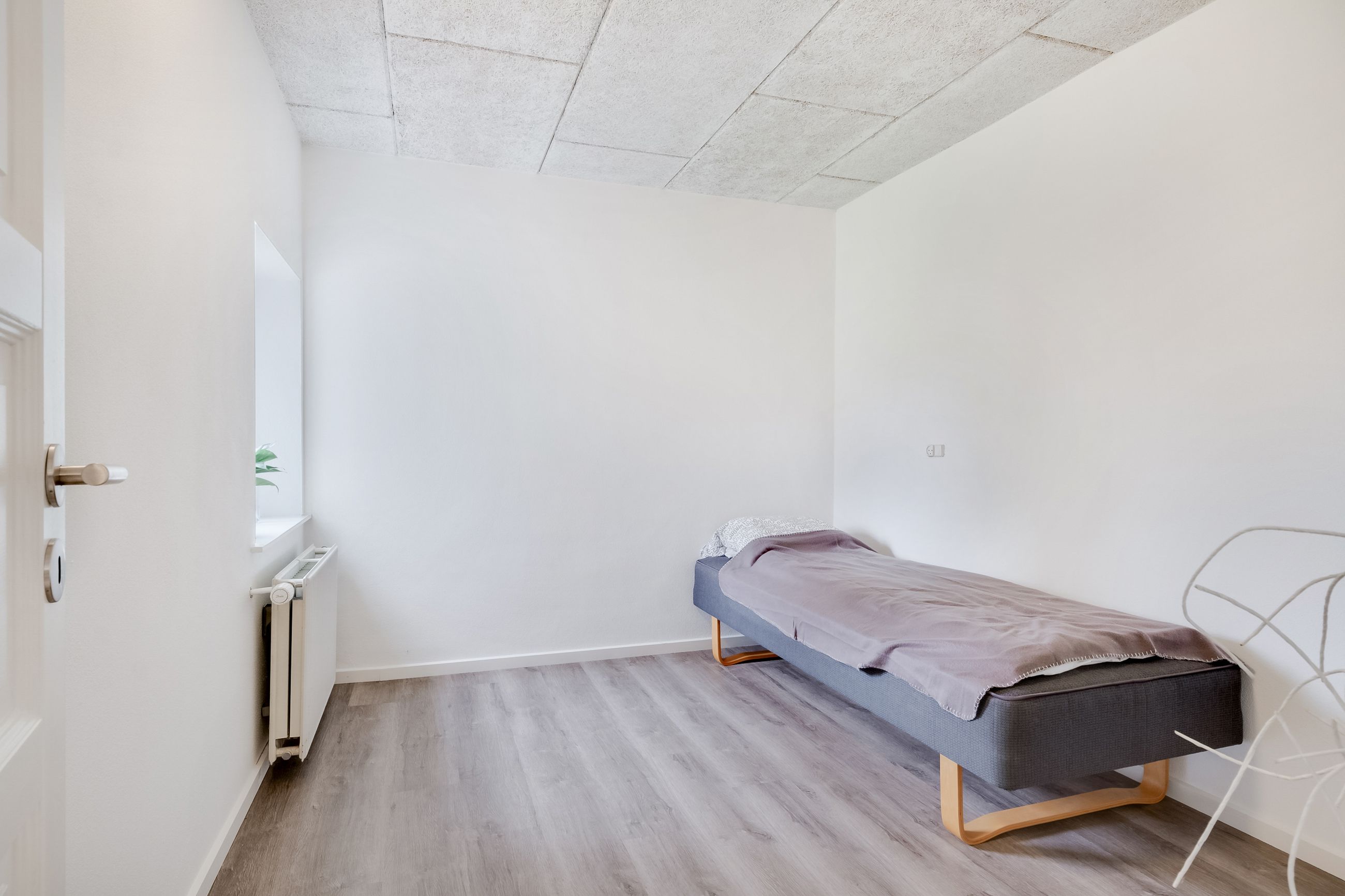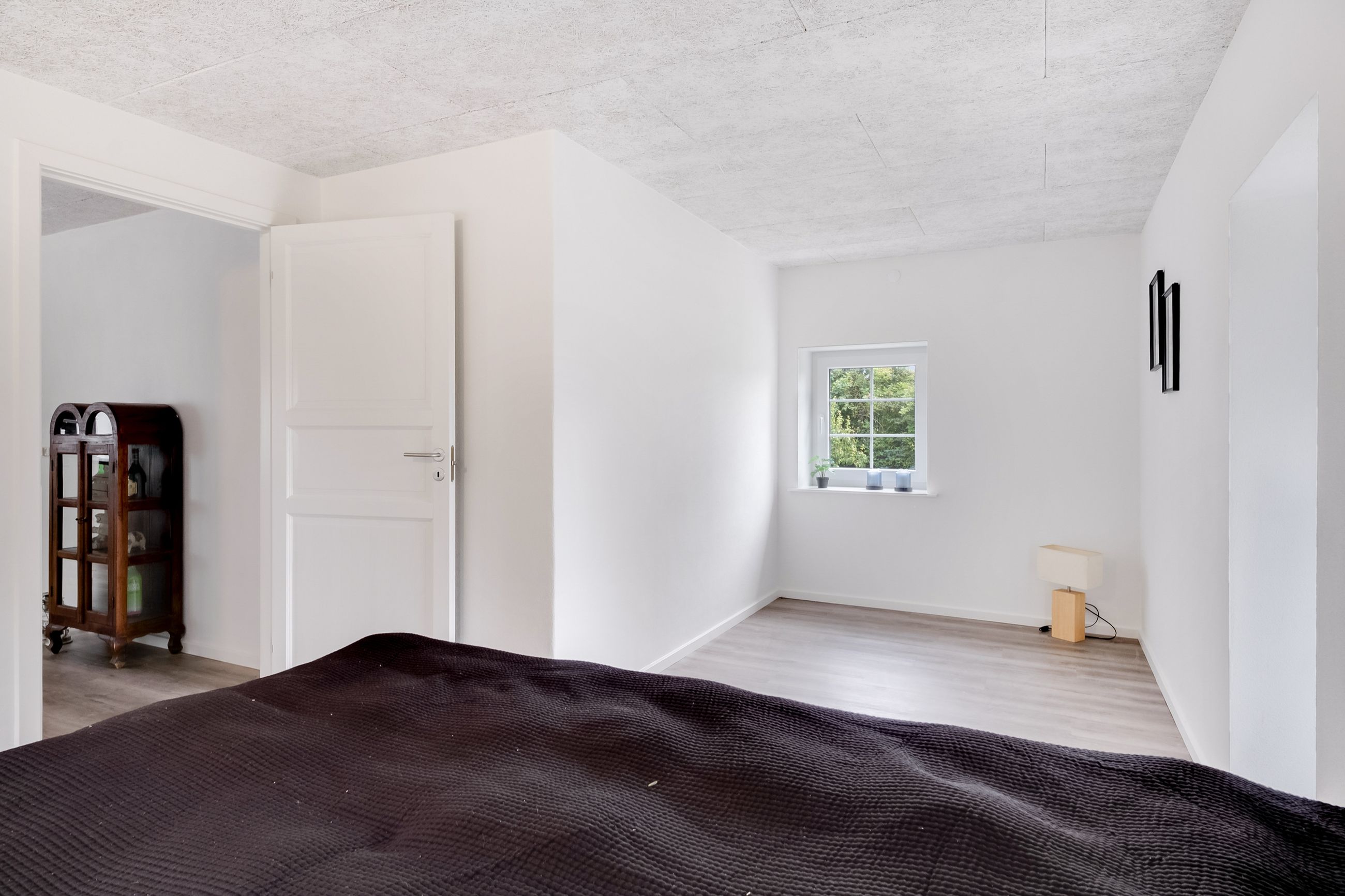 I stueplan finder du også to værelser med samme smukke gulve som i alrummet – det ene af dem har udgang til en skøn terrasse omkranset af en halvmur.