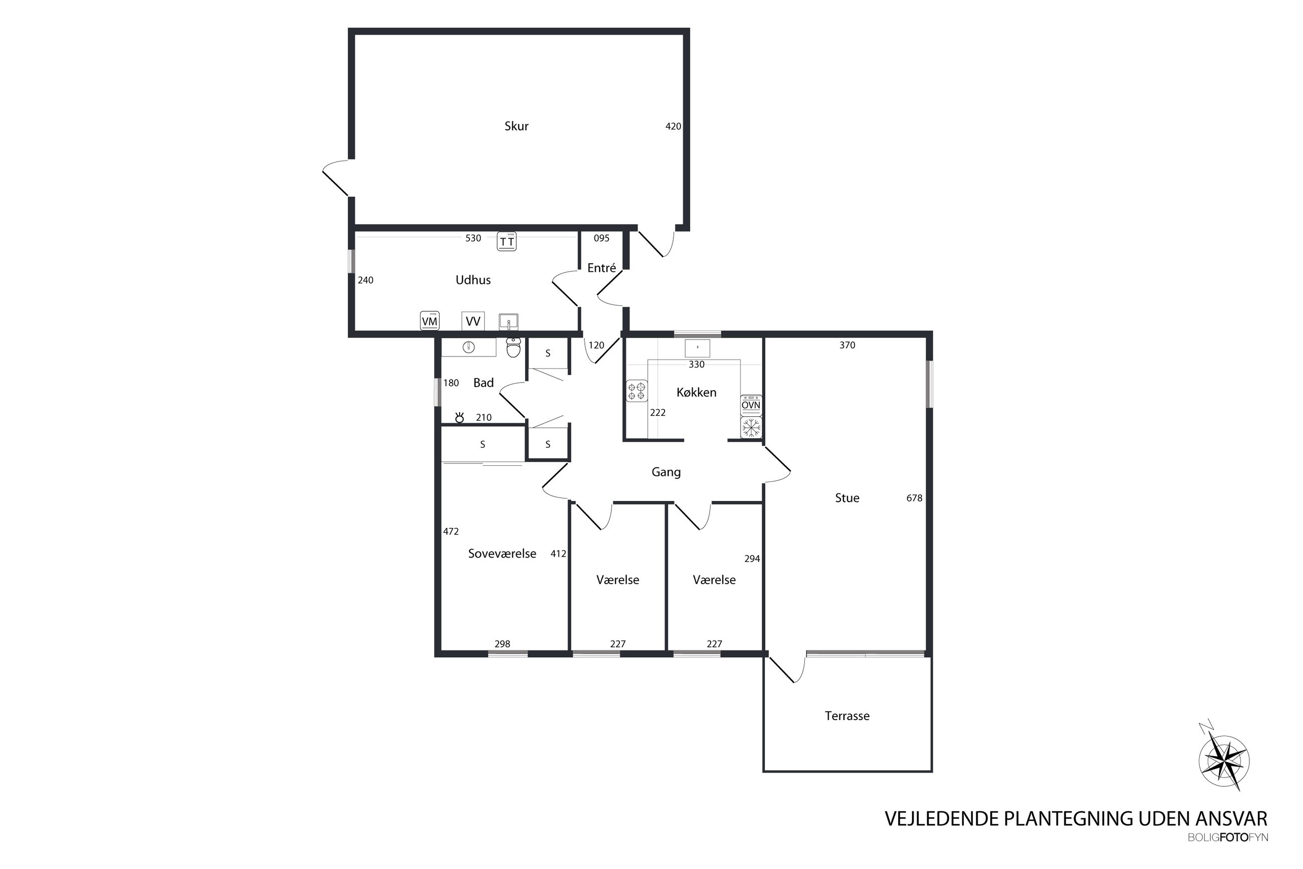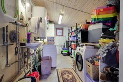 Huset rummer desuden et vaskerum med rigtig god plads til både vasketøj og opbevaring. I forlængelse heraf ligger et skur med værksted.