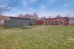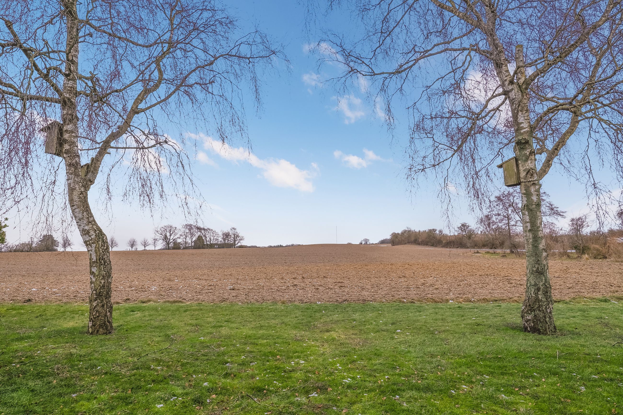 Rundt om huset er der flere dejlige opholdssteder. Haven byder på kirsebærtræer, æbletræ, stort jordbærbed, rabarber og stikkelsbærbuske. De to terrasser er afskærmet for vind og vejr - den ene perfekt til morgensolen, den anden ideel til middag og aftens sidste stråler. Og mens solen er ved at gå ned, og I sidder på terrassen og slapper af, kan det være, I spotter en hare, en fasan eller et dådyr, der løber hen over de omkringliggende marker.
