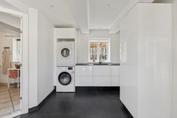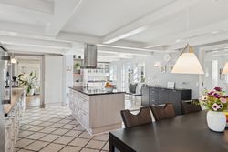 Det samlede beboelsesareal er på 230 kvadratmeter, og i stueplan er der på hver side af de to opholdsrum en afdeling. På den vestlige side er der et badeværelse og et viktualierum, og i den østvendte fløj er der endnu et badeværelse og et stort kontor. Fra sidstnævnte afsnit leder en svungen trappe til førstesalen, hvor man tilgodeses af to værelser og en repos.