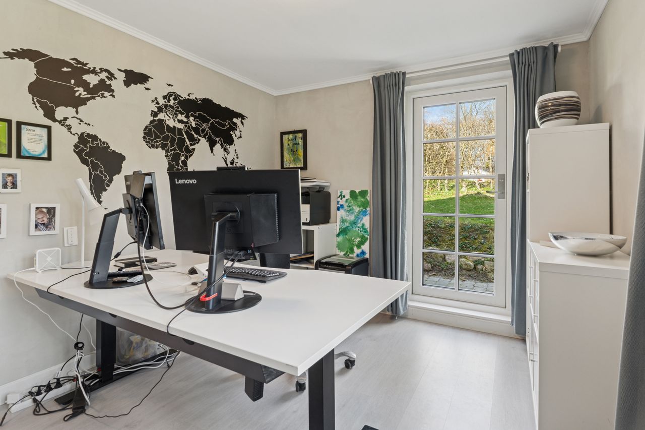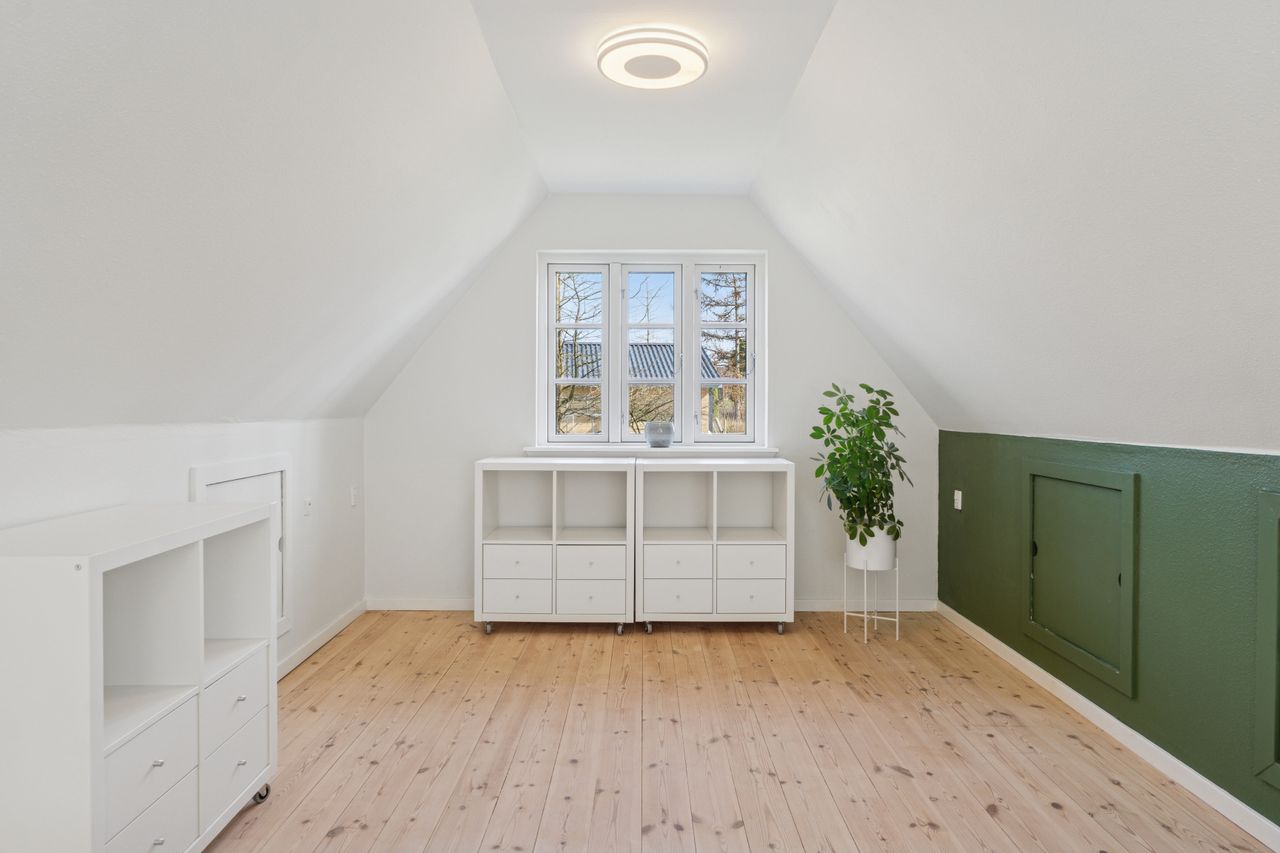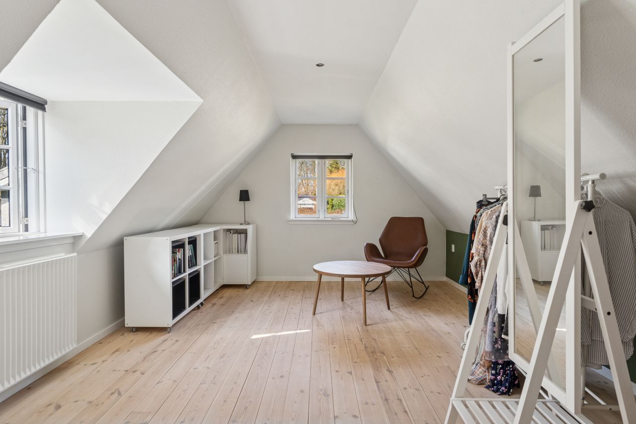 Skoven ligger til den ene side, og til den anden har man alle Vissenbjergs mange tilbud. Beliggenheden er med andre ord en kombination af by og natur, og selve den charmerende ejendom, der toner frem med en solgul facade og masser af stemning, er både overordentligt velholdt og særdeles velindrettet. Stedet er renoveret ad flere omgange siden 1985, og den fine blanding af det oprindelige og det moderne er med til at skabe en helt særlig fornemmelse.