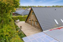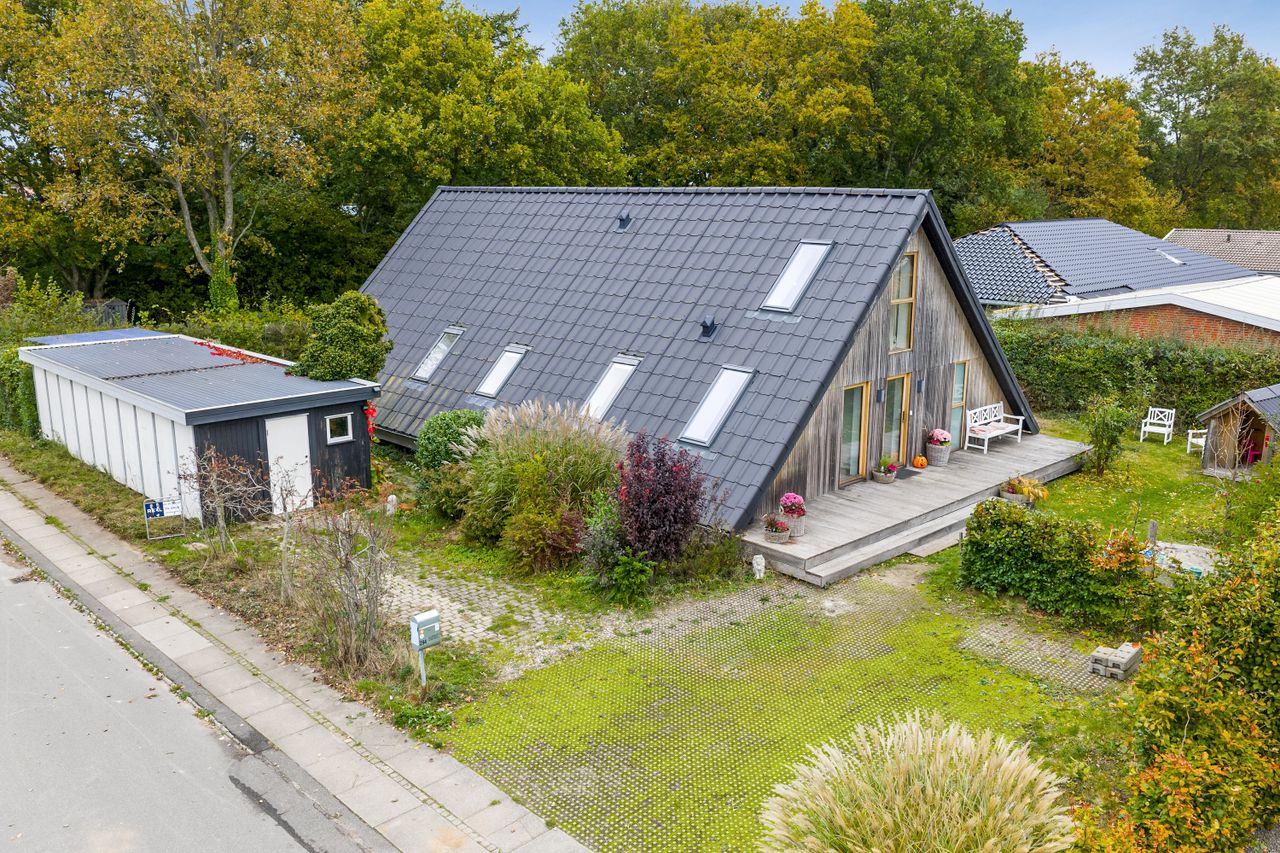 På Klaus Berntsens Vej 294 finder du et helt unikt A-hus - et hjem, der skiller sig ud med karakteristiske arkitektur og hyggelige atmosfære. Helt særligt bor du 130 m fra Højby Friskole, hvilket gør hverdagen både nem og tryg for børnefamilien. Højby er et attraktivt område i den sydlige del af Odense - en bydel, hvor du får både natur, tryghed og gode naboskaber, hvor man passer på hinanden, samtidig med at du er kun 10 min fra Odense C, du har motorvejen, der forbinder dig med resten af landet, samt et væld af handlemuligheder.