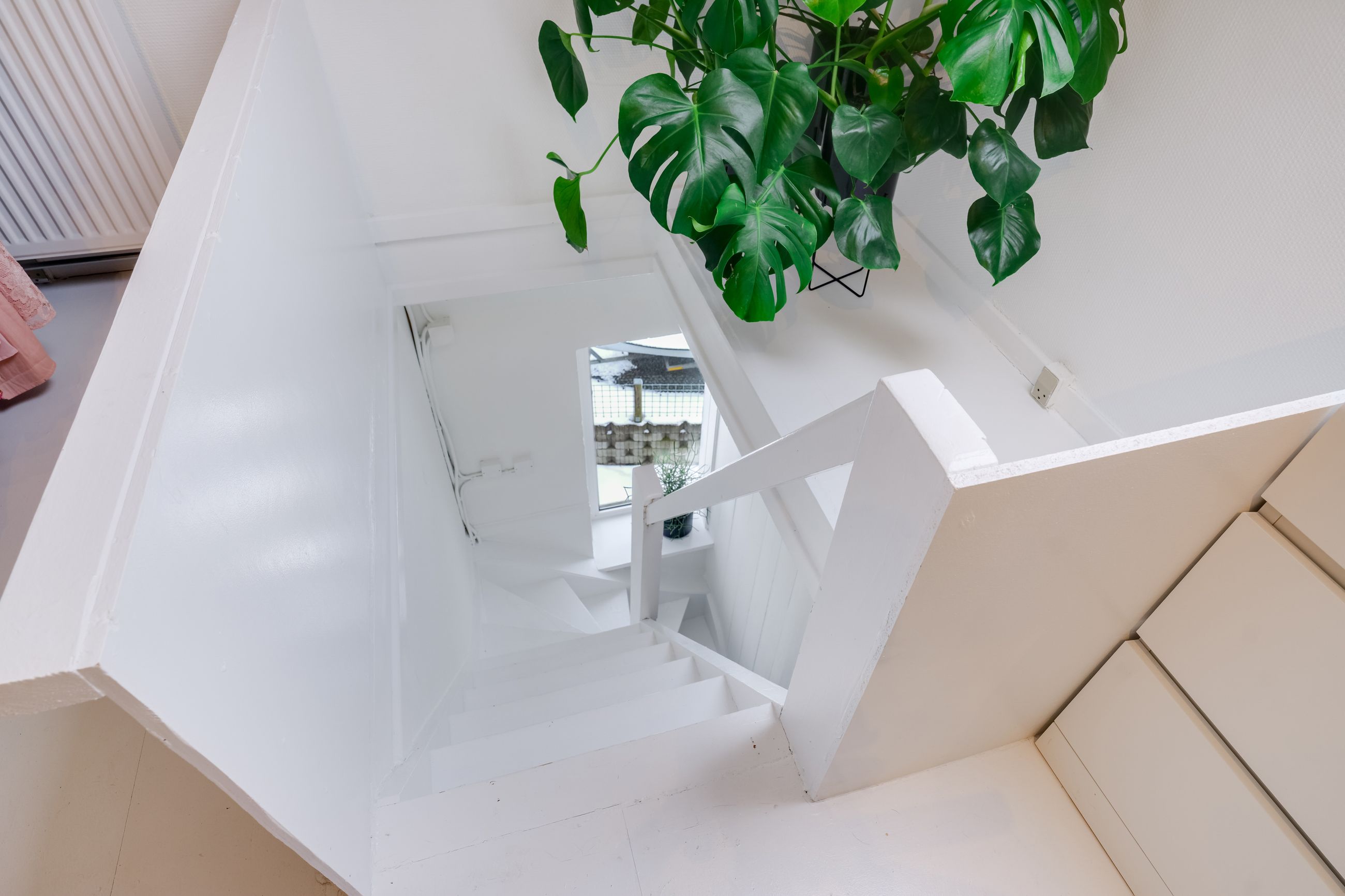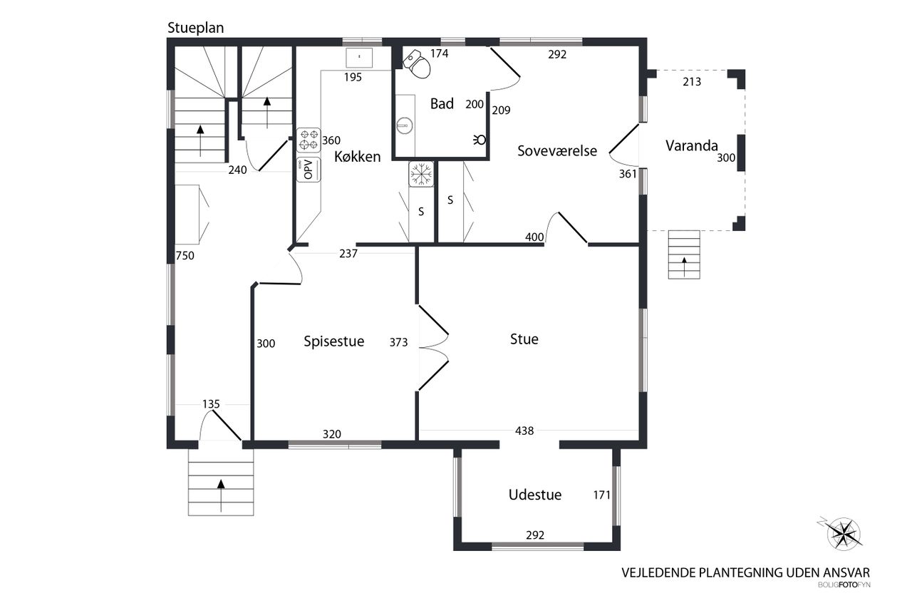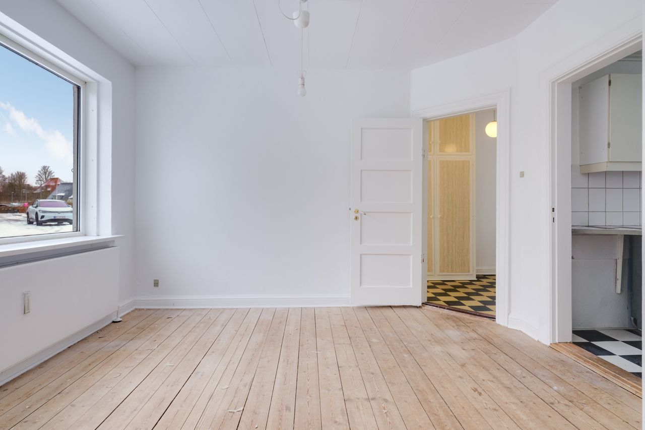 Indenfor bydes du velkommen i en entré med skakternet gulv og blyindfattede klare ruder, der skaber et elegant og klassisk indtryk. I stueplan finder du den ene lejlighed med stue og spisestue en suite samt køkken i forlængelse af spisestuen. Smukke plankegulve giver varme og karakter til rummene. Fra stuen er der adgang til en udestue, der fungerer som et ekstra opholdsrum, samt til soveværelset med udgang til veranda og et badeværelse holdt i hvidt.