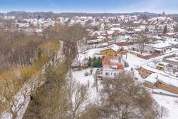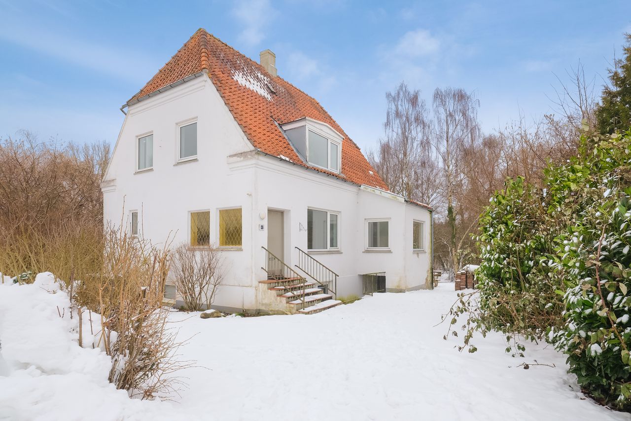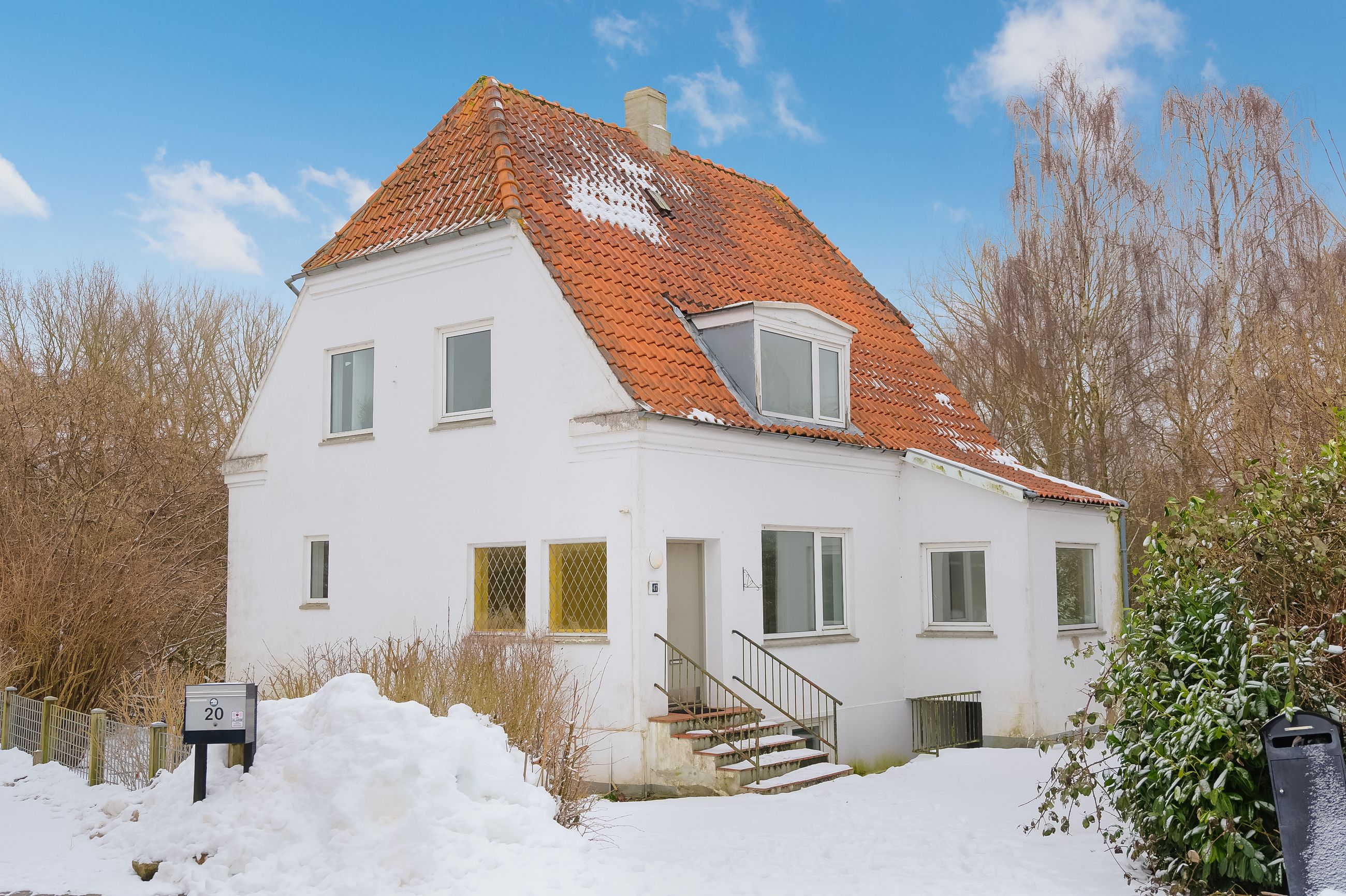 For enden af et lukket vænge i et roligt og børnevenligt kvarter venter denne charmerende murermestervilla på nye ejere. Huset, på 158 m2 og opført i 1932, står smukt med hvid oppudset facade og røde tagsten - et klassisk og elegant udseende, der står elegant i det grønne bagtæppe af høje træer ved Stavis Å.