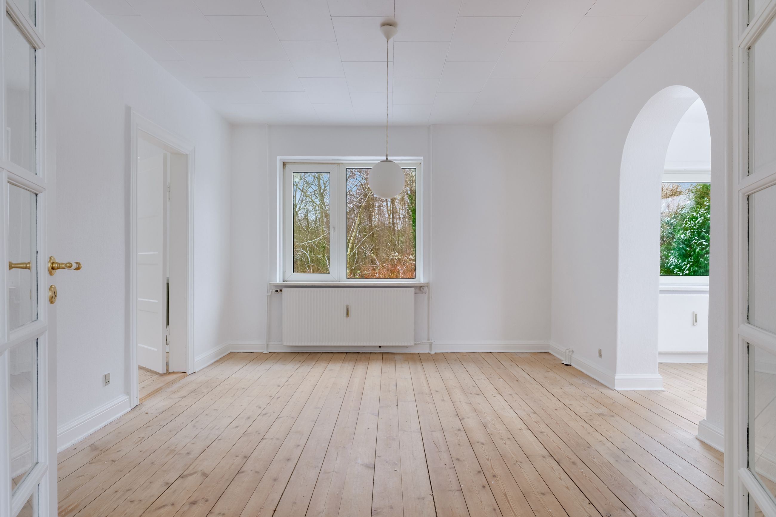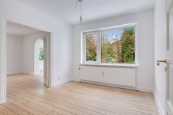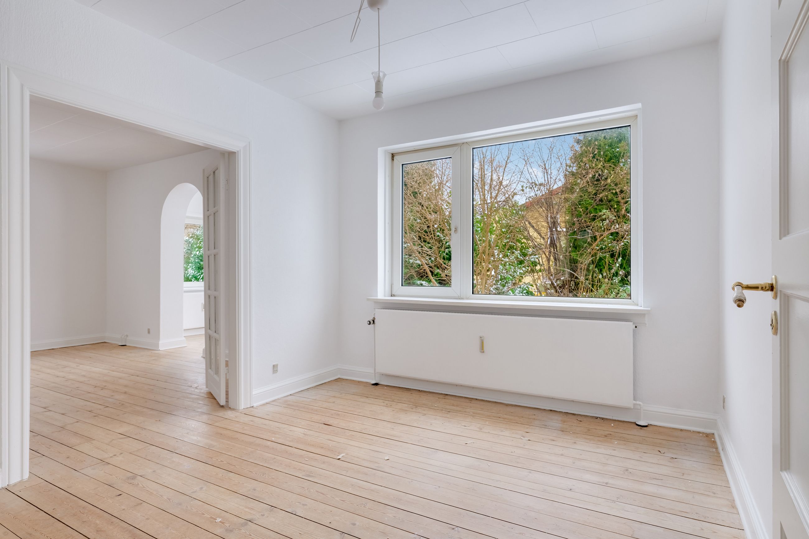 Villaen er i dag opdelt i to lejligheder, hvor den ene trænger til modernisering. Med lidt kærlig hånd kan den forvandles til en vidunderlig bolig. Planløsningen kan bevares som to separate enheder, eller de kan smeltes sammen til et samlet hjem.
