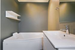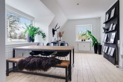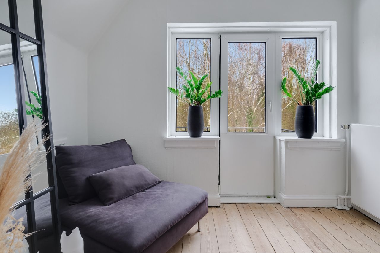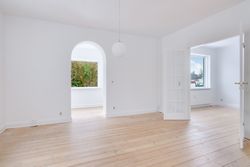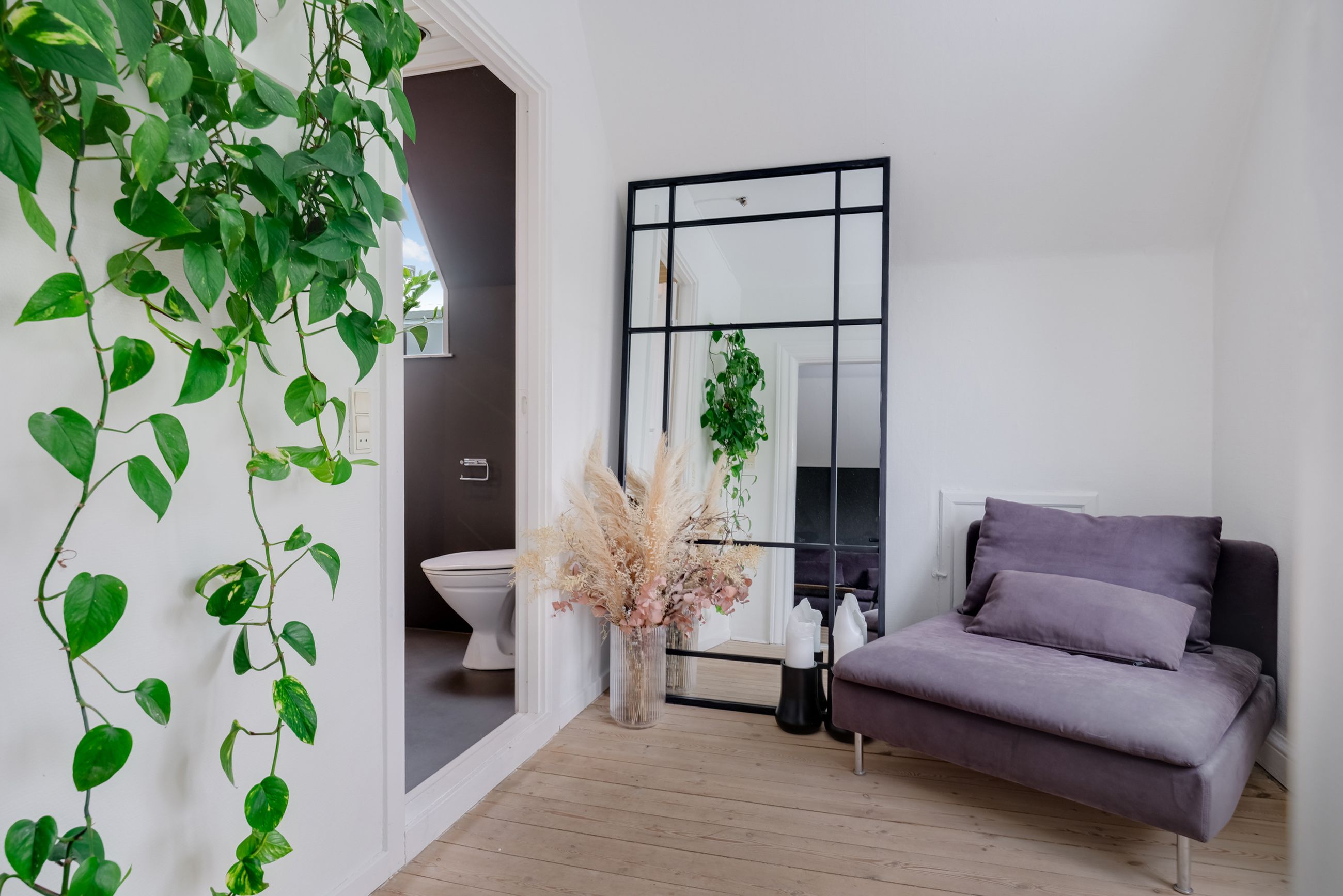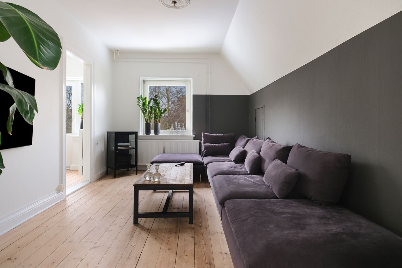 På førstesalen ligger den anden lejlighed med køkken, to stuer en suite, soveværelse med altan og badeværelse. Lejligheden er gennemgribende istandsat i 2025 og står flot og indflytningsklar. Plankegulvene går igen her og skaber en harmonisk sammenhæng mellem etagerne, mens badeværelset imponerer med smukke grønne vægge, stort spabad og moderne vaskemøbel.