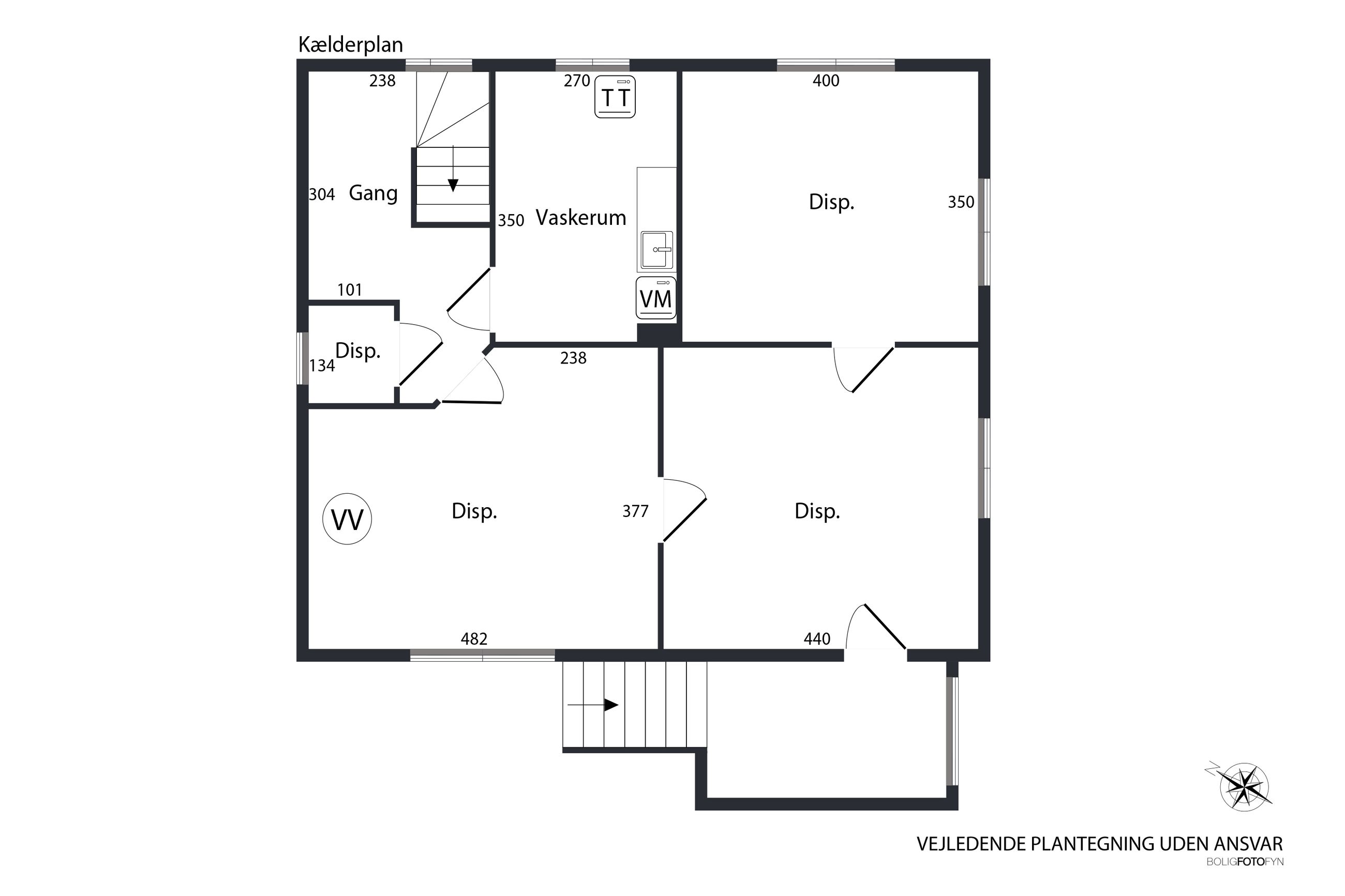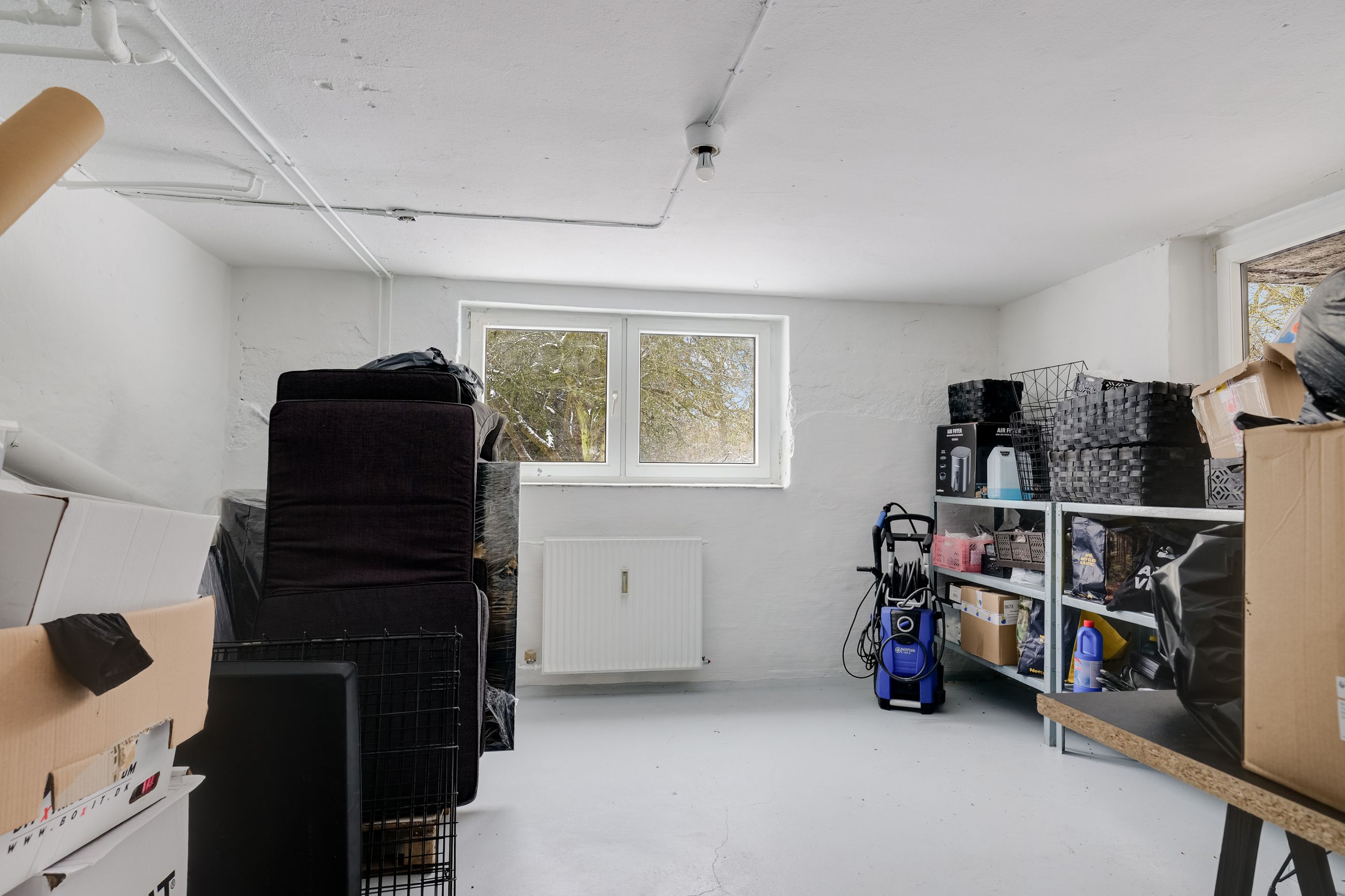 Kælderen byder på tre store disponible rum samt vaskerum med plads til vaskemaskine og tørretumbler. Kælderen rummer mange muligheder for at udfolde hobbyaktiviteter - men kræver en kærlig hånd, hvis den skal bruges til andet end opbevaring. På 2. sal findes yderligere to disponible rum, der er nyligt renoveret med bl.a. skråvinduer, der lader lyset strømme ind. Her kan du indrette alt fra legeværelse og hobbyrum til walk-in-closet eller kontor.