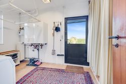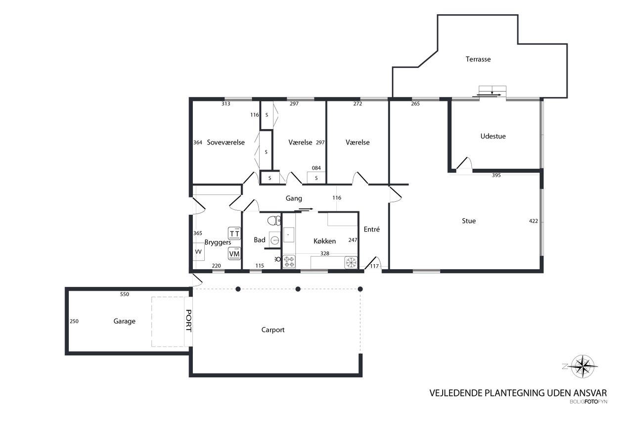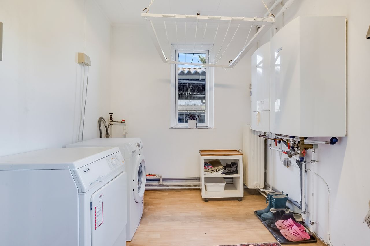 Huset er beriget med et bryggers. Her er der gode muligheder for at etablere en masse opbevaringsplads, ligesom du finder plads til både vaskemaskine og tørretumbler her. Fra bryggerset har du udgang til haven og carporten på venstre hånd.