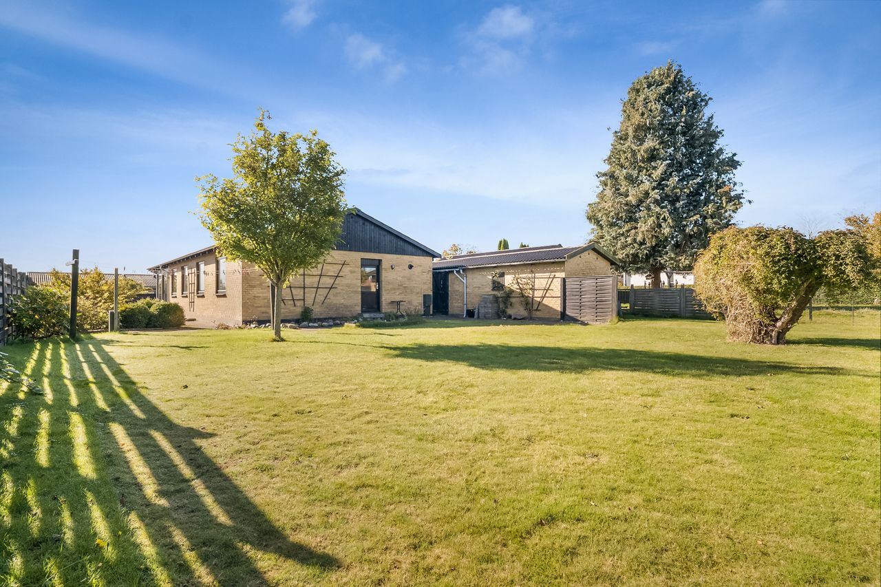 Haven har en overskuelig størrelse med masser af plæne til boldspil og leg for familiens yngste.
