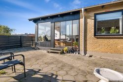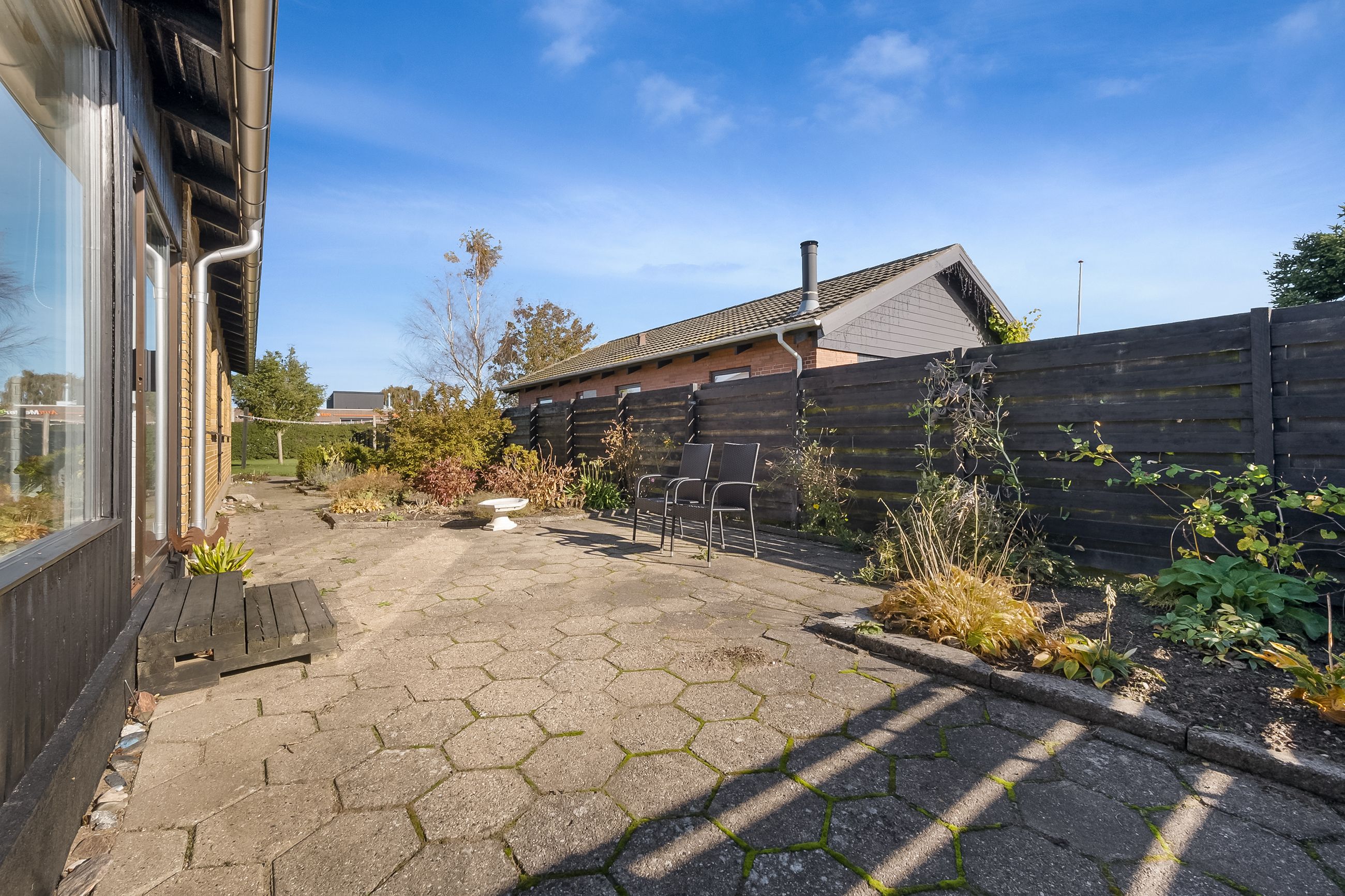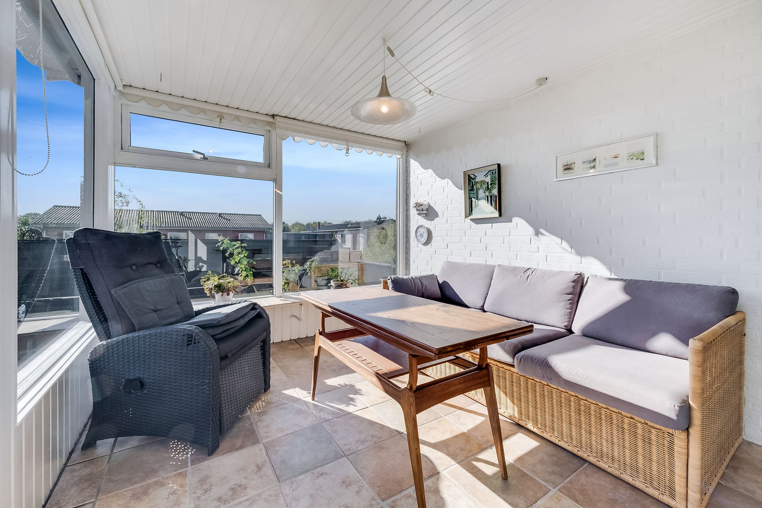 Fra stuen kan du fortsætte ind i udestuen - et skønt rum, hvor du kan nyde en rolig stund i solen efter arbejde og i aftentimerne. Herfra har du udgang til terrassen, som vender ideelt mod solen fra formiddag til aften. Terrassen bliver et samlingssted om sommeren, og danner den perfekte ramme om grillhygge i den gyldne aftensol eller et dejligt koldt glas vin med venner.