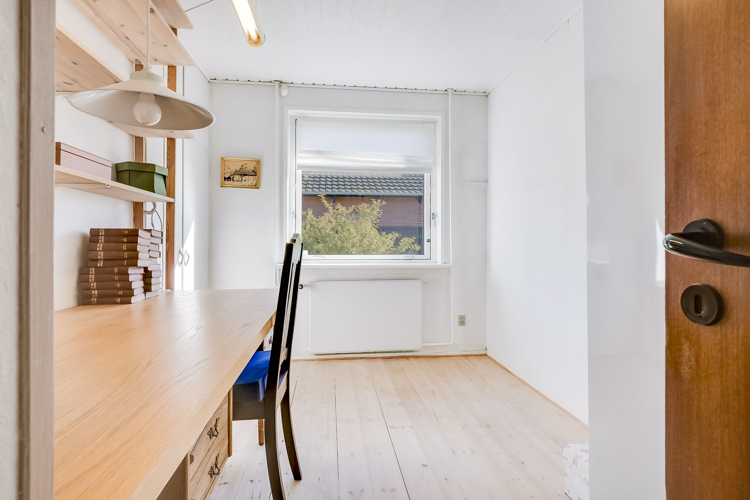 Soveværelset byder på god rummelighed og masser af indbygget skabsplads. De resterende to værelser har ligeledes en fin størrelse og et godt naturligt lysindfald, der gør dem velegnede til både kontor og børneværelse.
