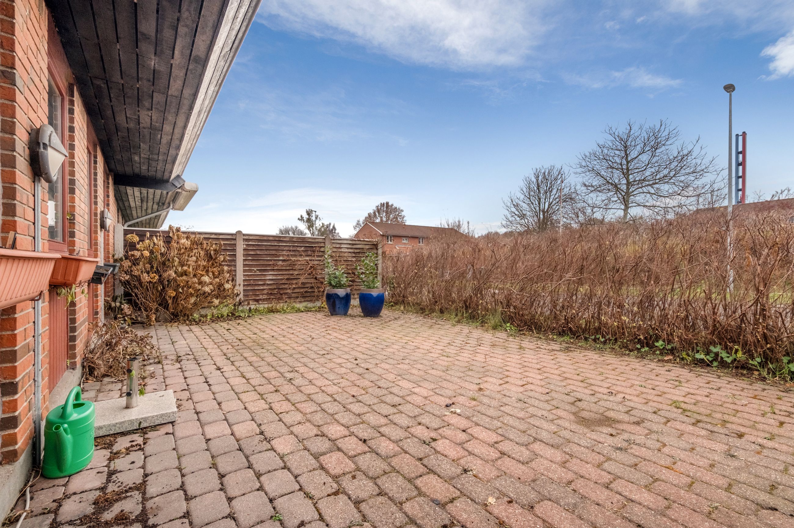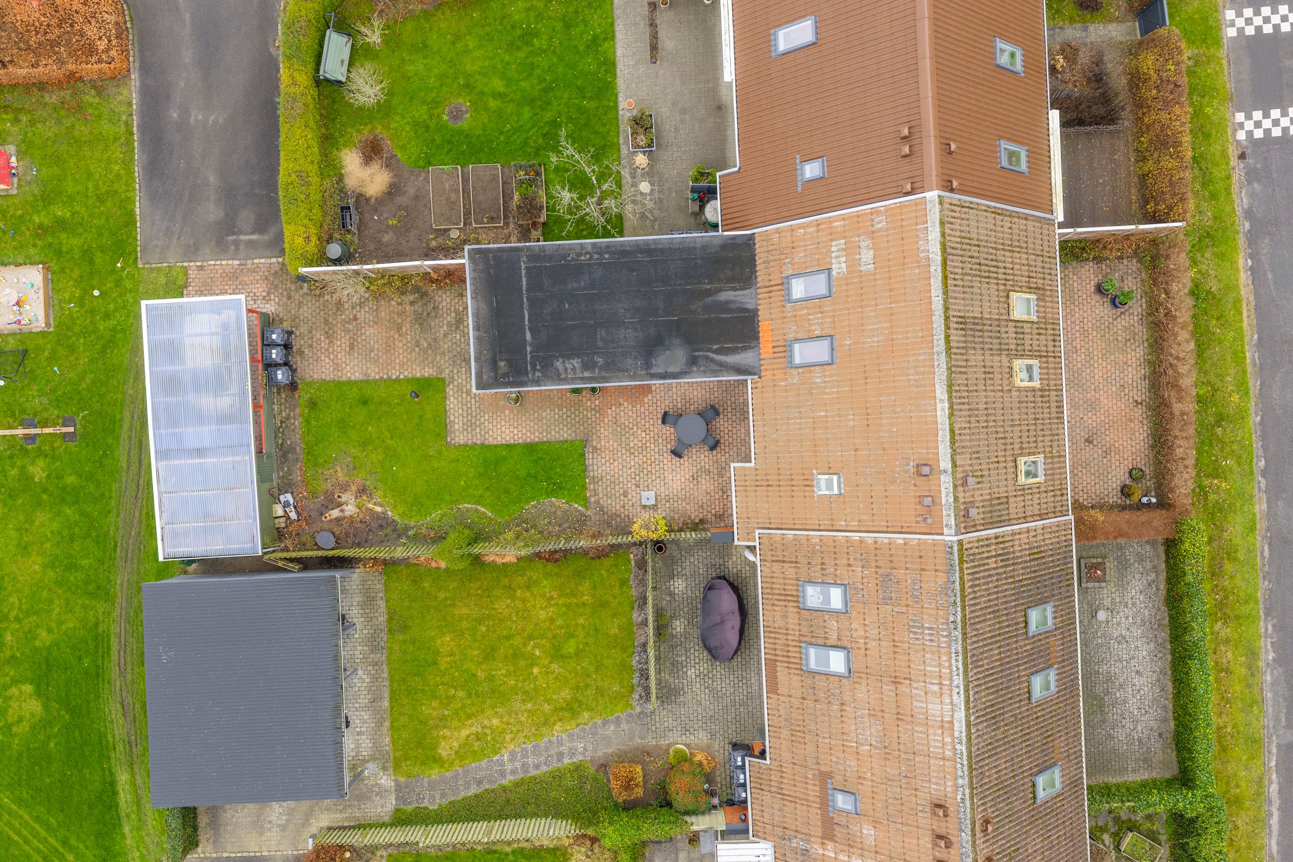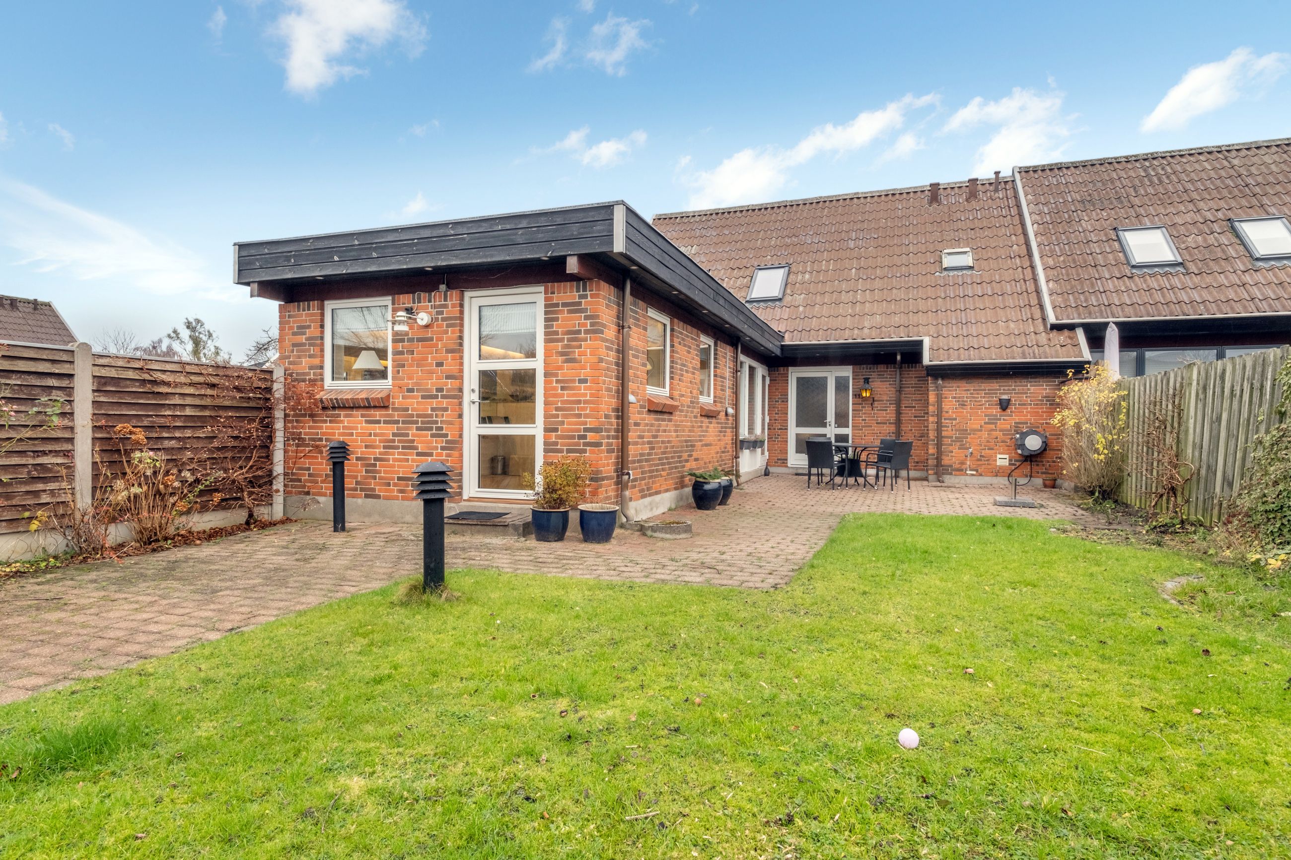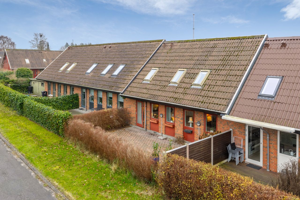 Det grønne fællesområde med legeplads og boldbane skaber den perfekte ramme for en tryg barndom, hvor vængets børn kan lege frit og løbe fra hus til hus.