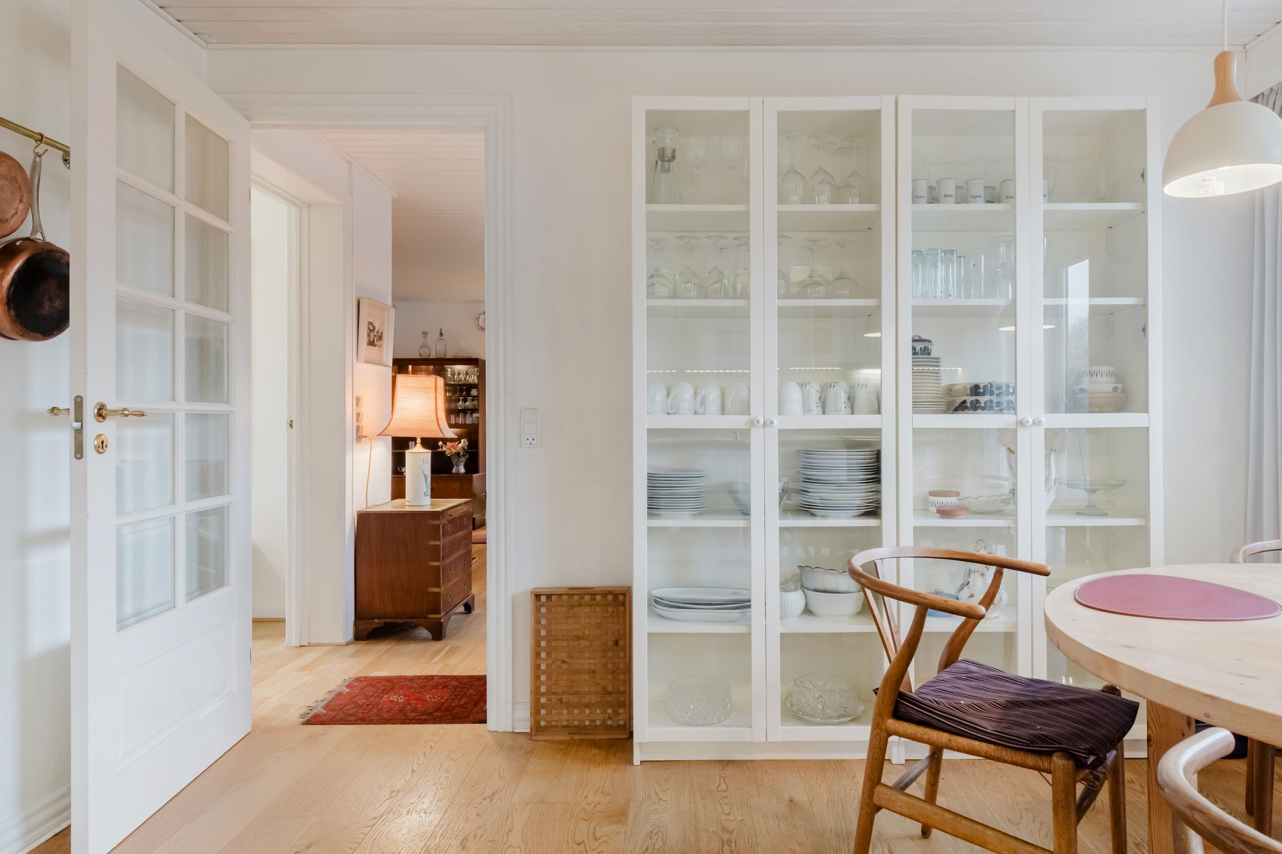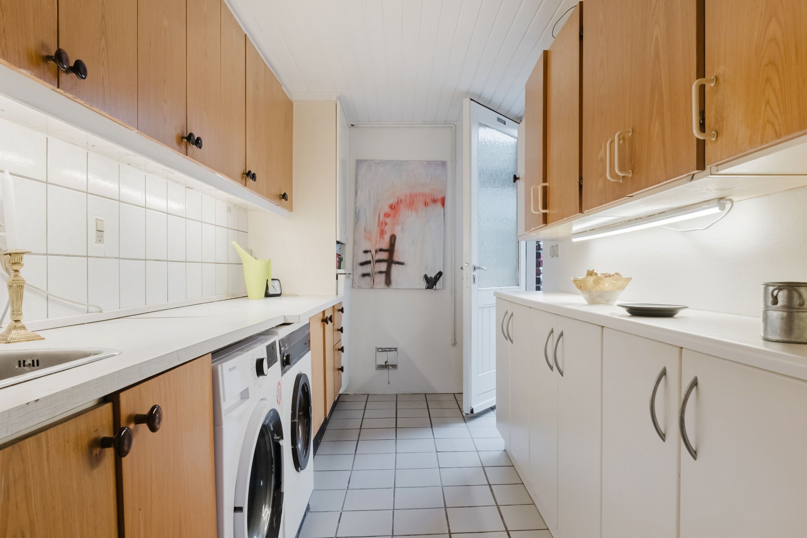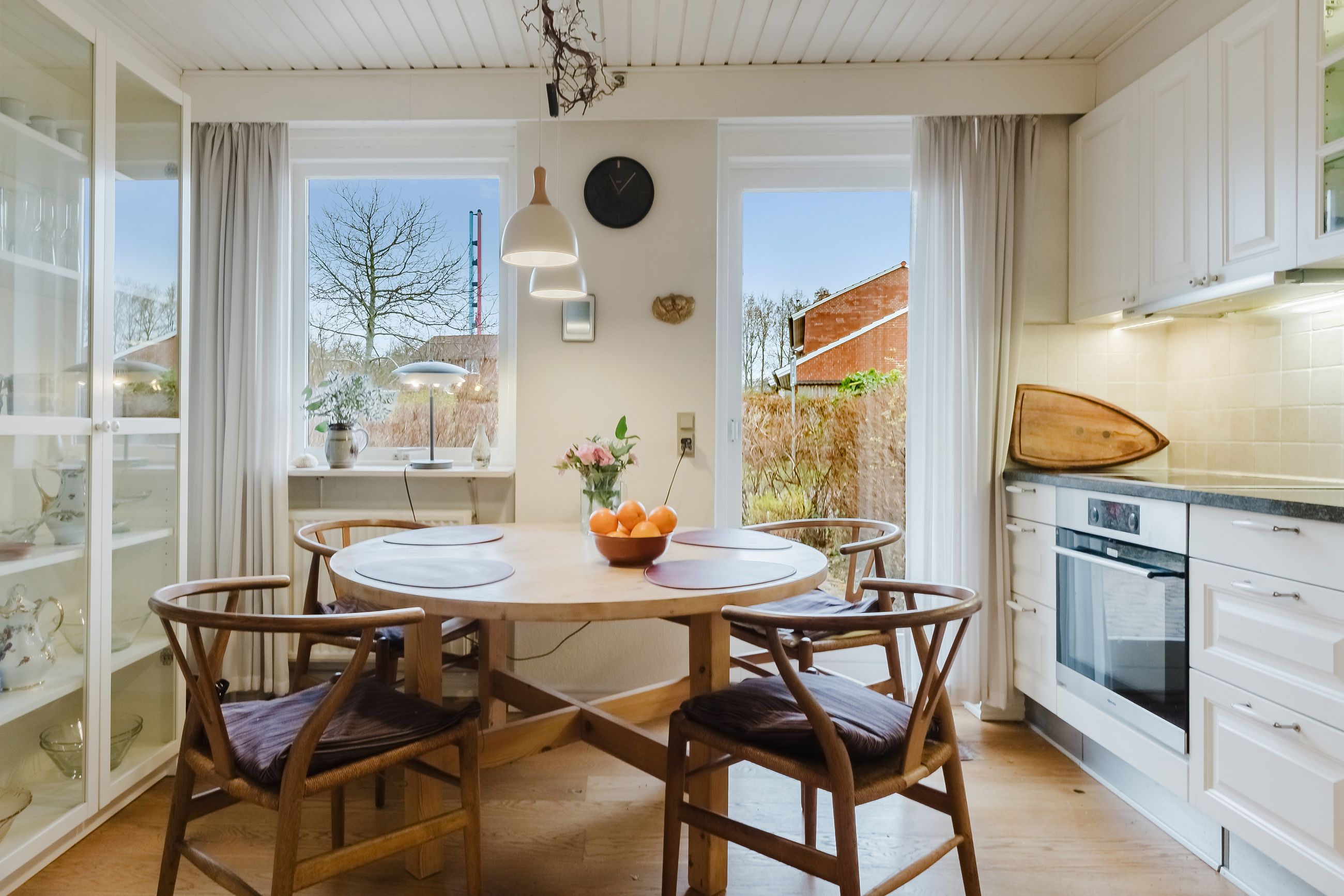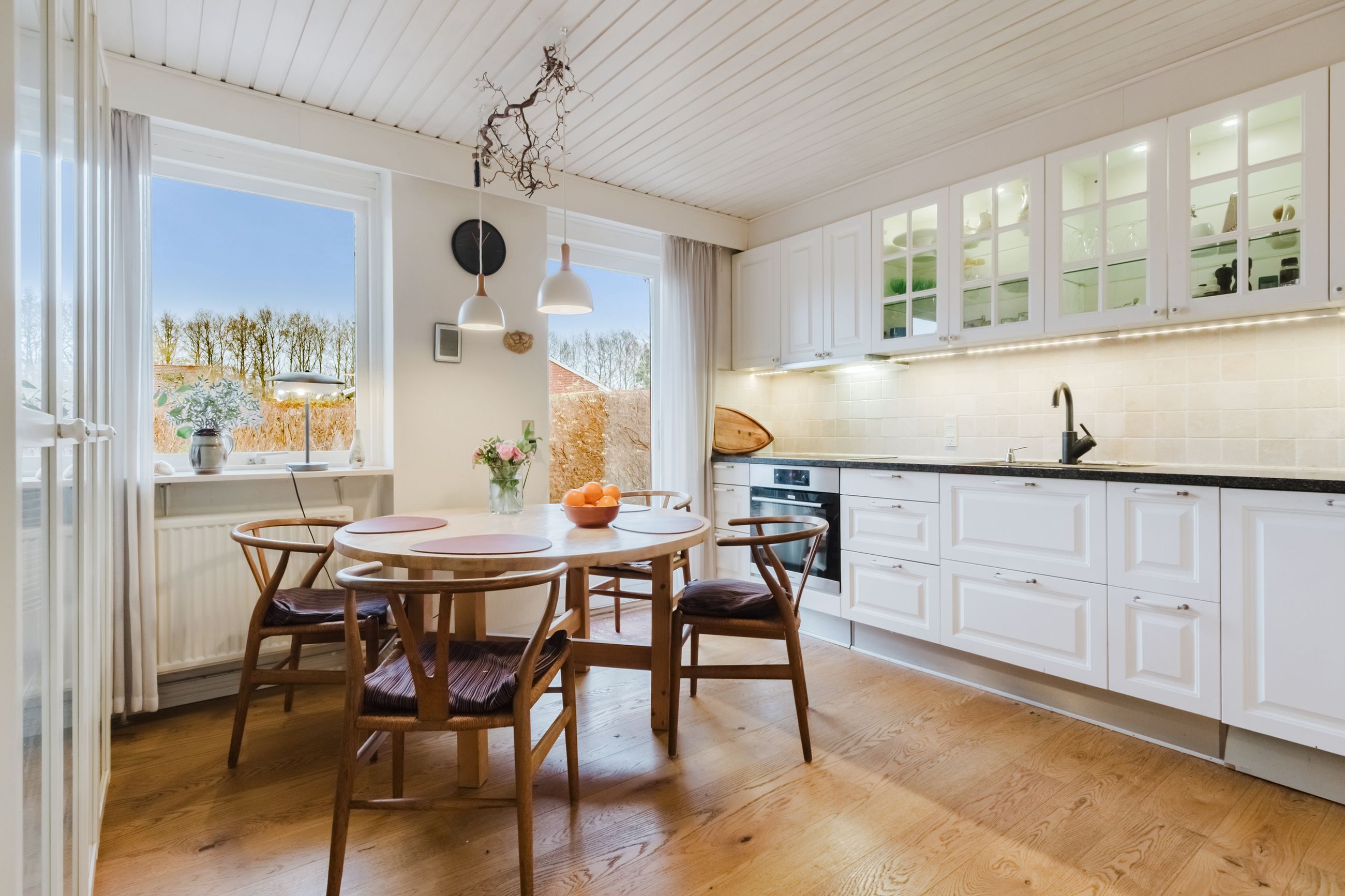 Fra bryggerset træder du ind i køkkenet som er lyst og indbydende. Der er indrettet med hvide køkkenelementer og et smukt trægulv, der skaber en varm og hjemlig følelse. Her kan man nyde hverdagen og etablere spisepladser, så den gode samtale og nærværet kan fortsætte under madlavningen.