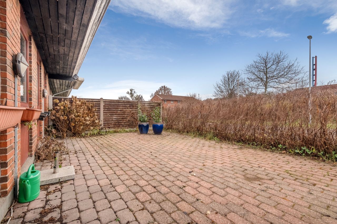 Haven er hyggelig og overskuelig at holde. På terrassen har du solen det meste af dagen, og det skaber derfor også den perfekte ramme for rolige stunder i løbet af sommeren. Her kan man nyde roen med en kop kaffe, eller invitere familie og venner på grillhygge.