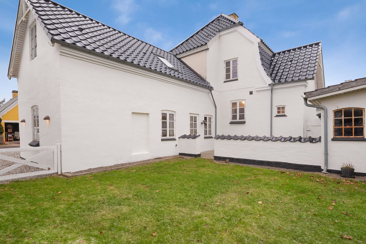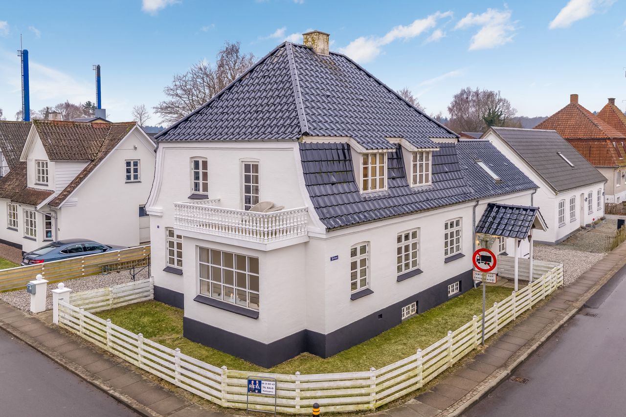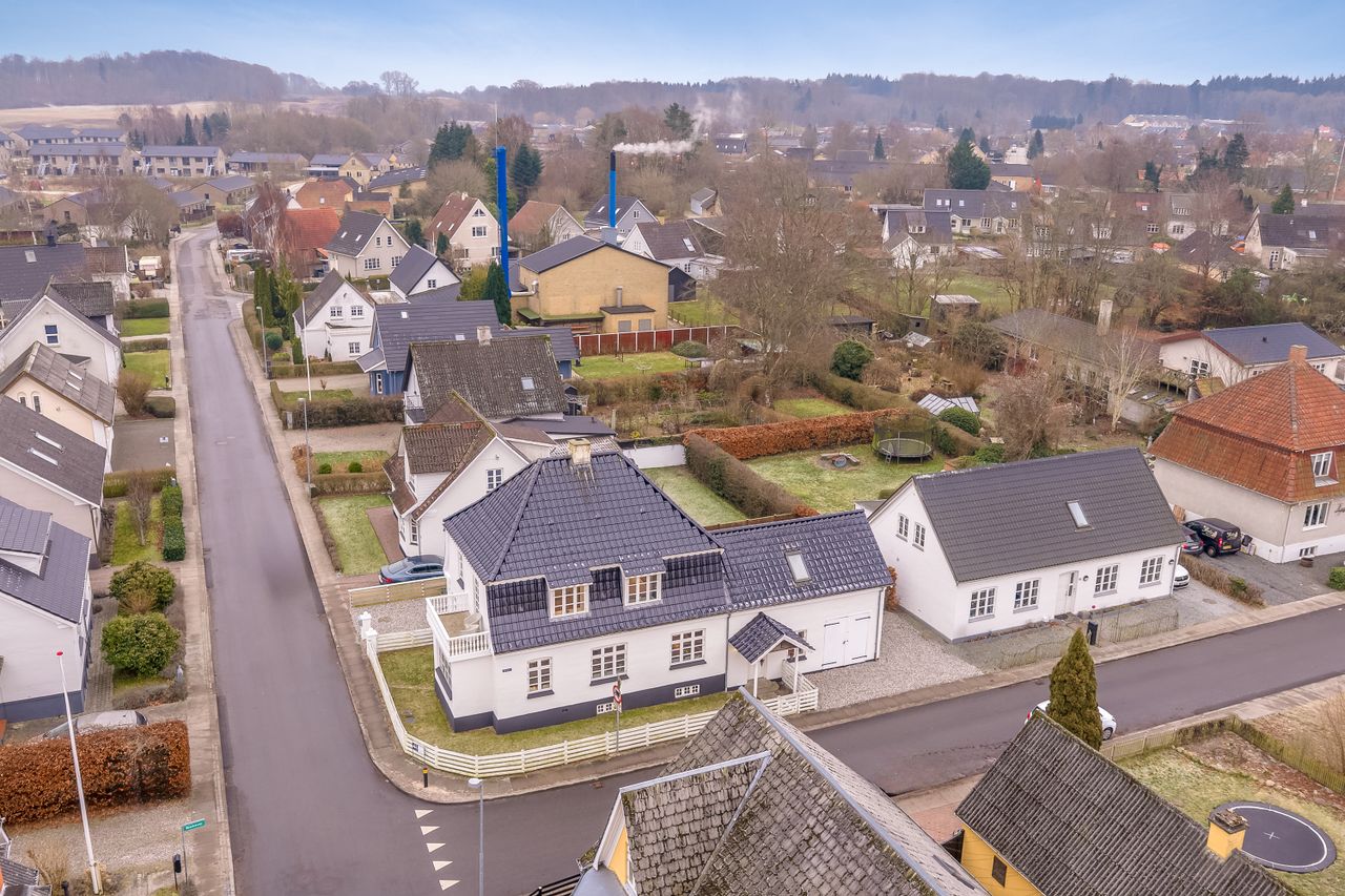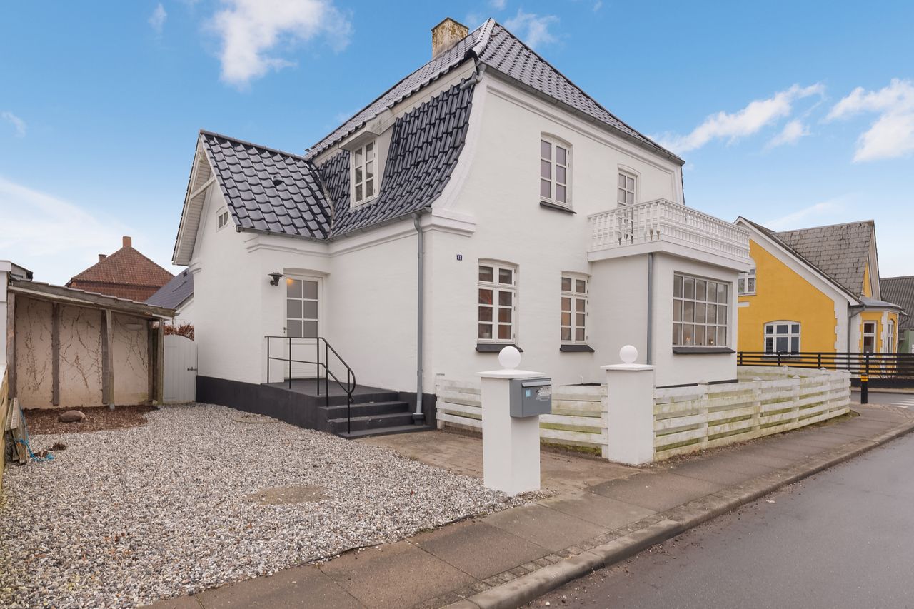 Centralt i Tommerup Stationsby finder du denne flotte villa fra 1929 med en nyrenoveret hvid facade og sortglaserede tegl. Villaen på 149 kvm er i tre plan og byder på gode rammer for familielivet med opholdsrum i stueplan og tre værelser på førstesalen. Her bor du tæt på hverdagens nødvendigheder som skole, børneinstitutioner, indkøb og fritidsaktiviteter. Samtidig er der kun 15 minutters kørsel til Odense bygrænse, og fra Tommerup Station kan toget bringe dig til Odense centrum på blot otte minutter. Derudover er du tæt på Høgsholtskoven, hvor naturen indbyder til gåture og tid med familien.