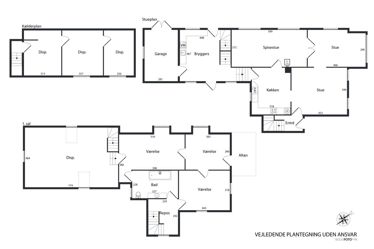 Derudover er der en kælder med 3 disponible rum som eventuelt kan bruges til ekstra opbevaring.